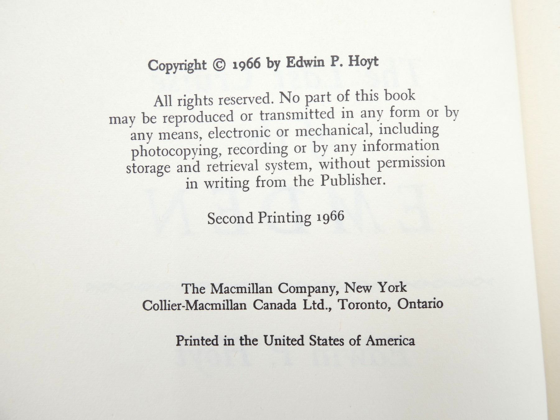 (1) BY EDWIN P. HOYT, HARD COVER WITH DUST COVER, 2ND PRINTING 1966. SEE PHOTOS.