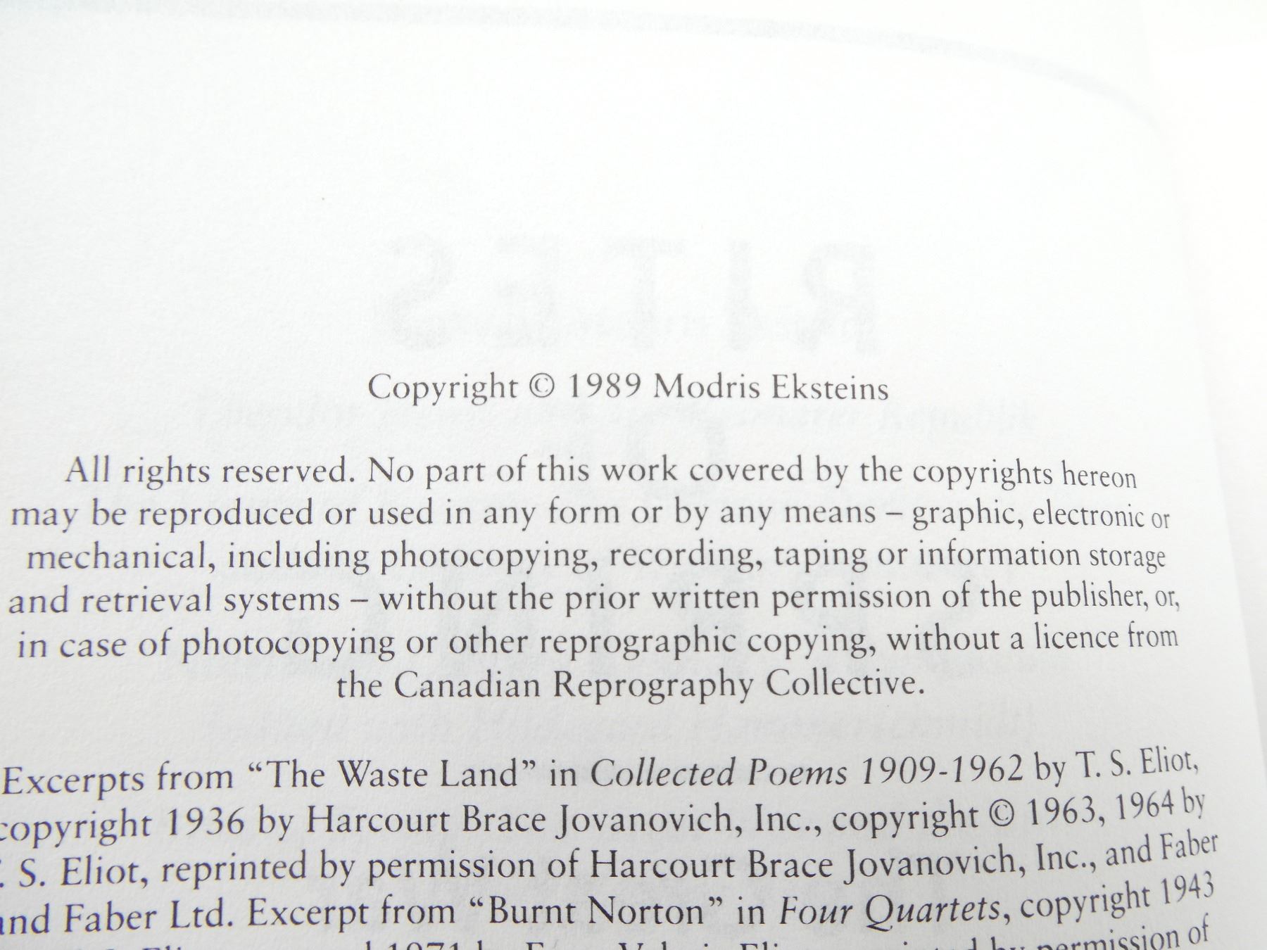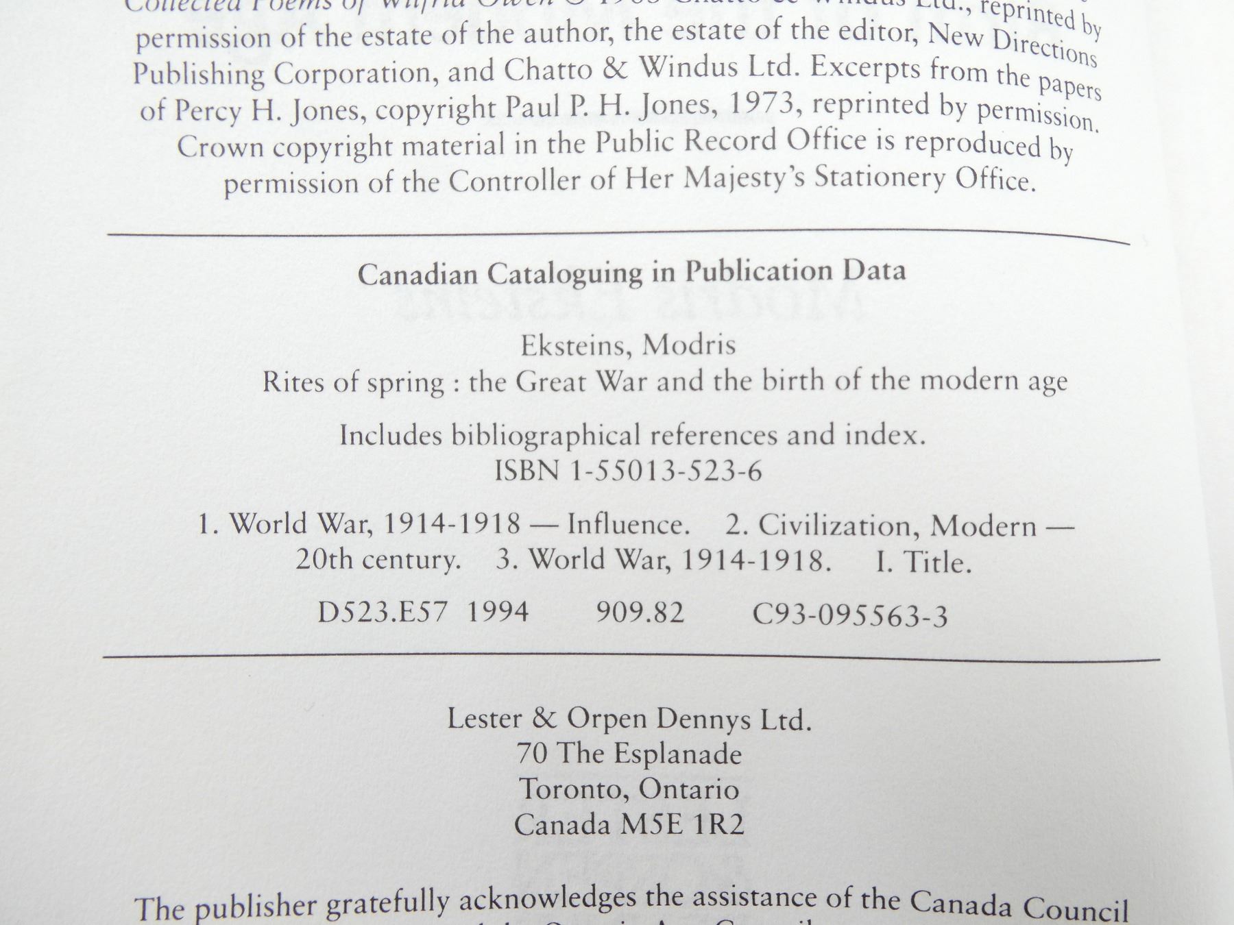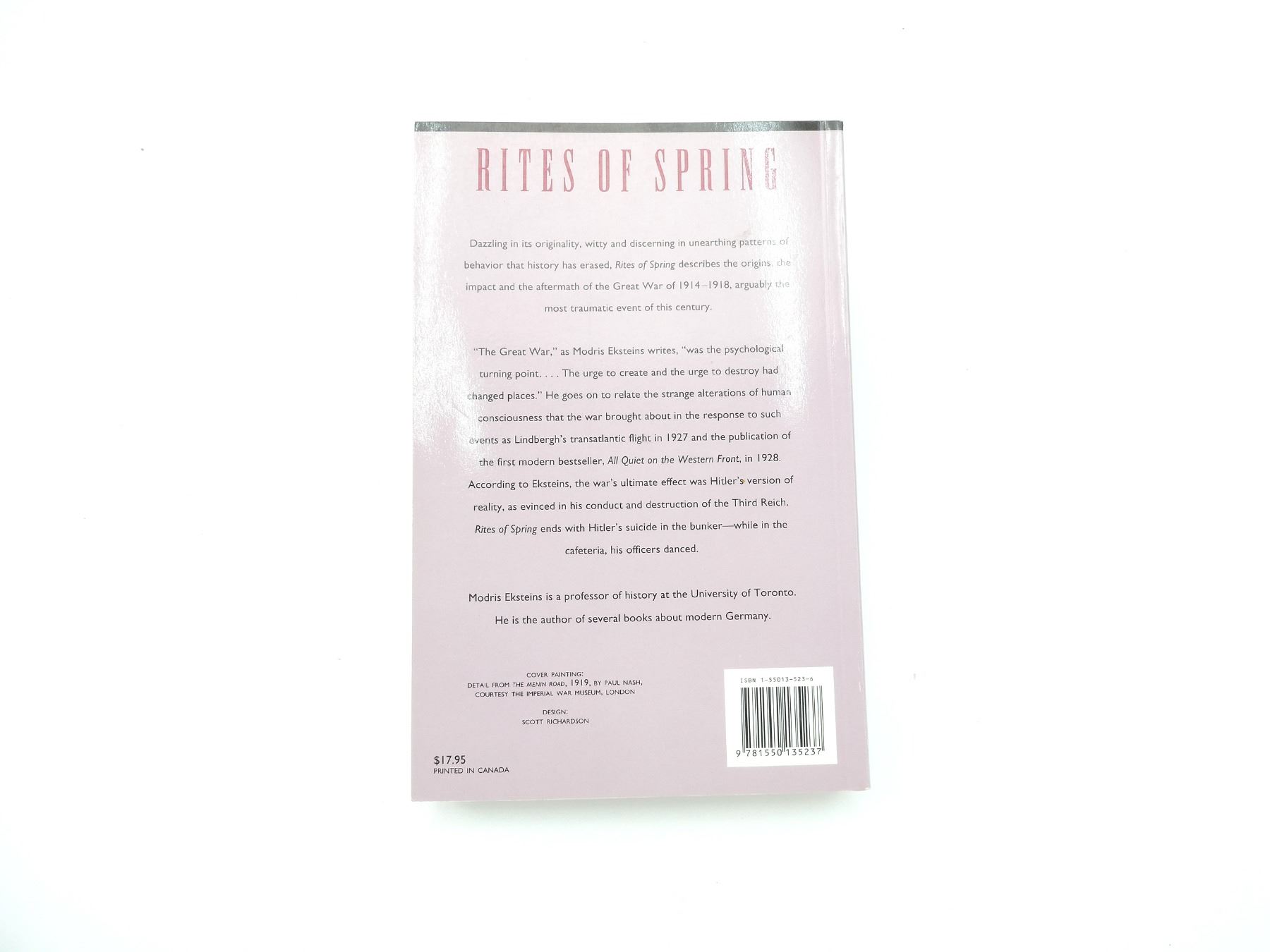 (1) "THE GREAT WAR AND THE BIRTH OF THE MODERN AGE" BOOK BY MODRIS EKSTEINS, SOFT COVER, ISBN: 1-55013-523-6. SEE PHOTOS.