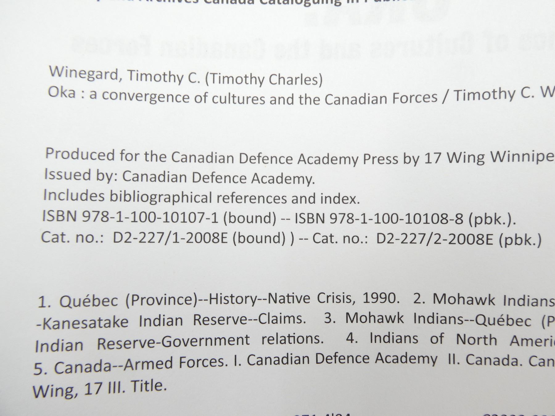 "OKA: A CONVERGENCE OF CULTURES AND THE CANADIAN FORCES" BOOK