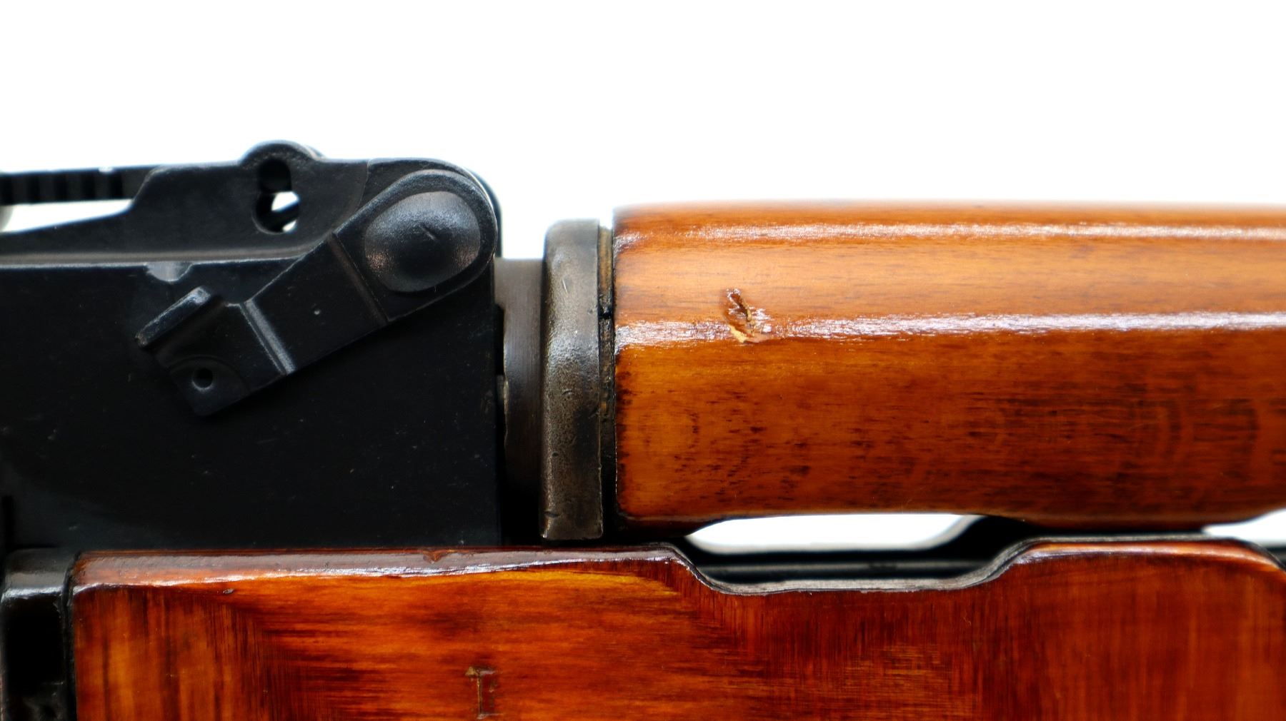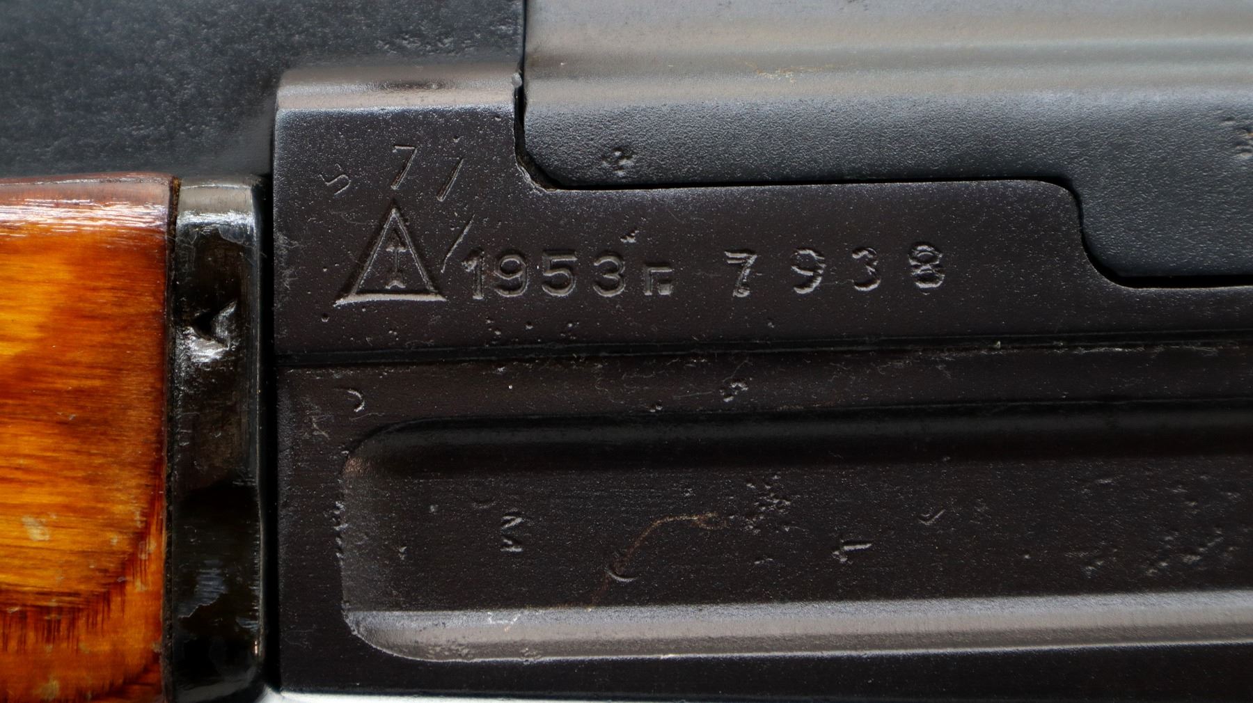 Main Description: Canadian 12-3 Prohibited, PAL with 12-3 Class Required. This item may be called in for a technical inspection, which will delay the transfer. If you don’t have this class of license and would like this item deactivated, it can be done for an additional fee of $250.00. Manufactured by Izhevsk 1953. Post front sight with hood and ramp, adjustable u notched rear sight, black painted metal finish with pitting underneath. Four piece full military wood stocks, ventilated handguards, pistol grip, smooth steel butt plate with trap, missing rear swivel holes are present, has the front sling swivel, cleaning rod and bayonet lug. Has threaded muzzle with cap.
