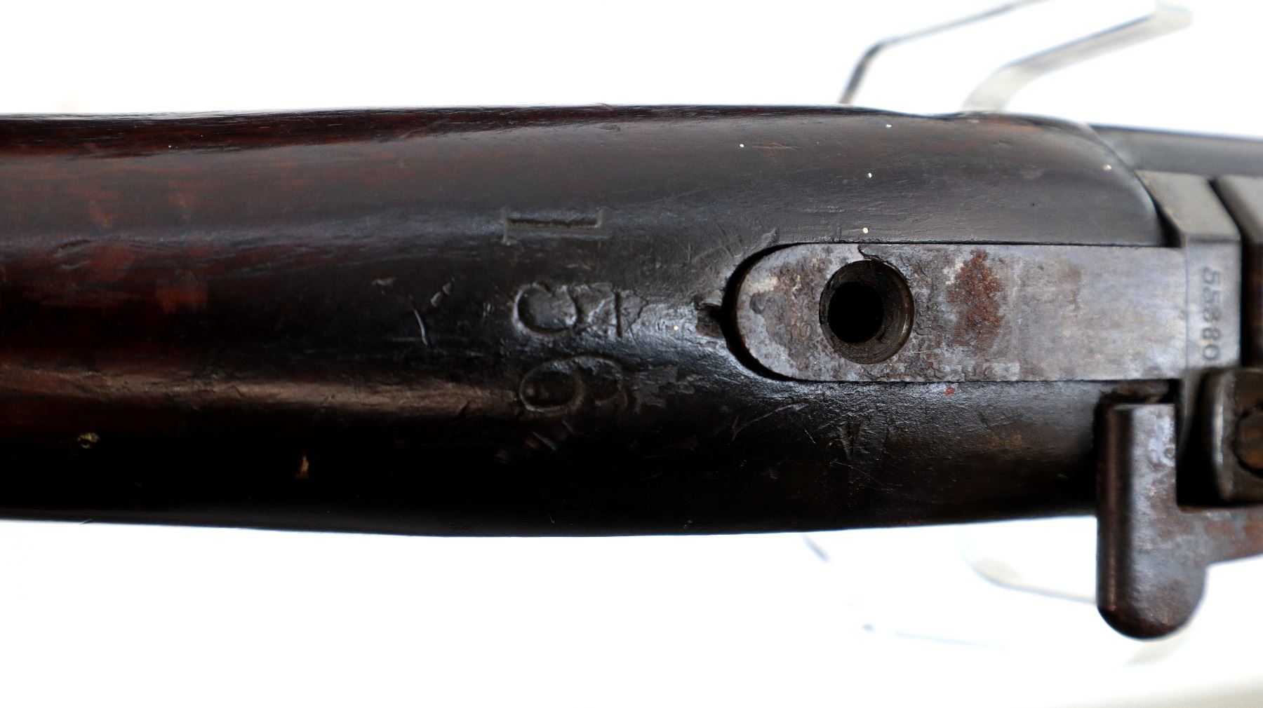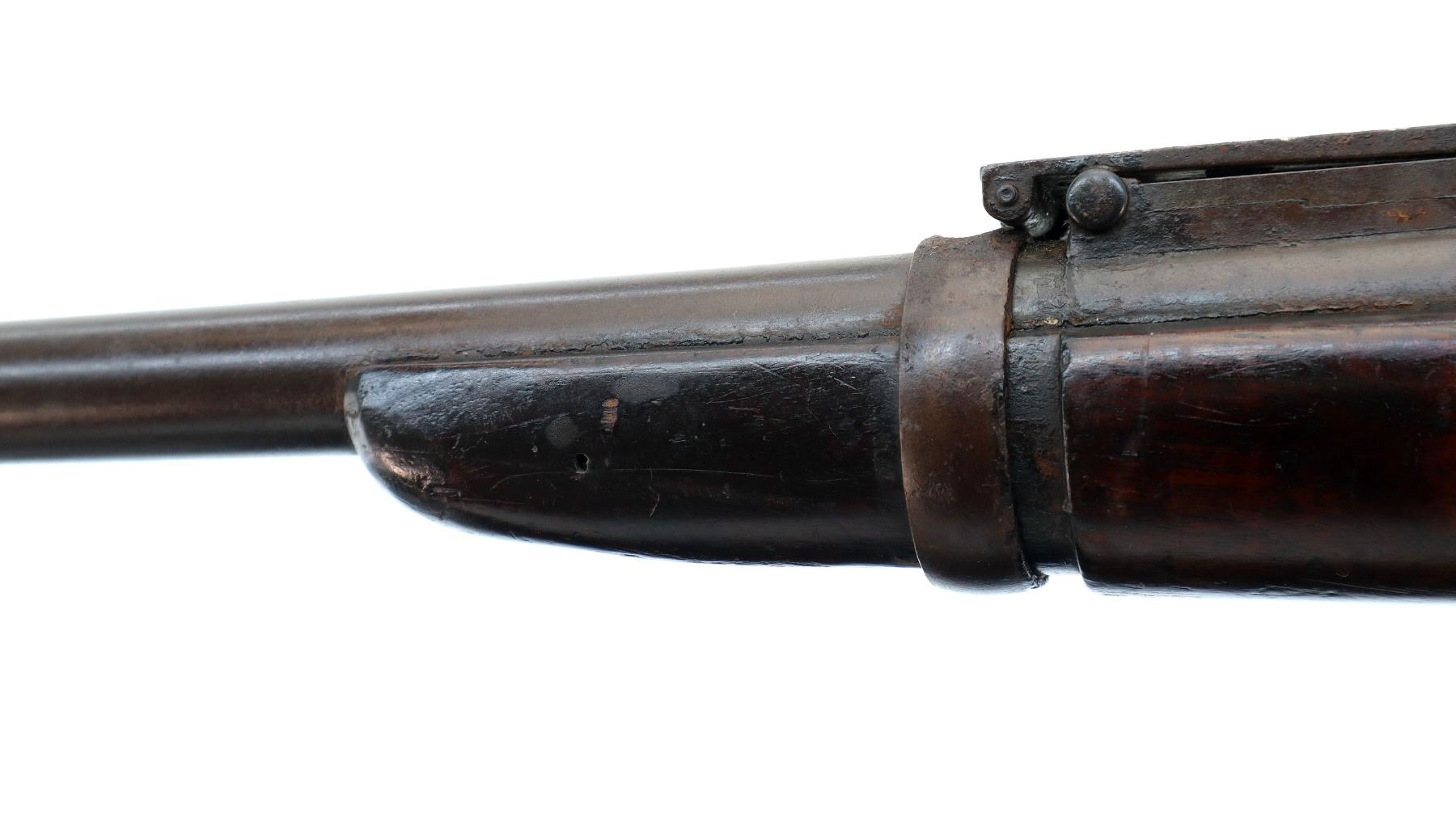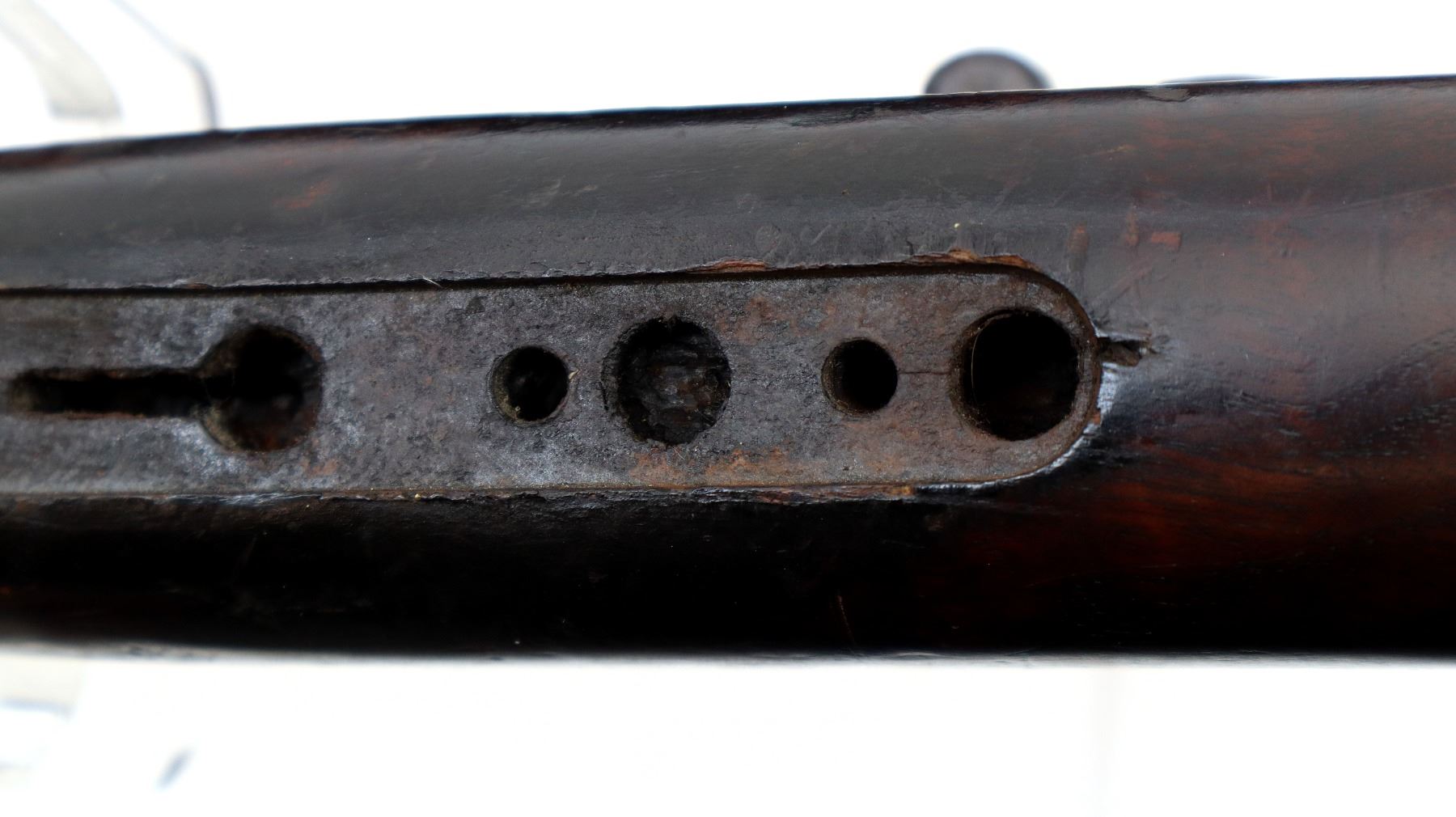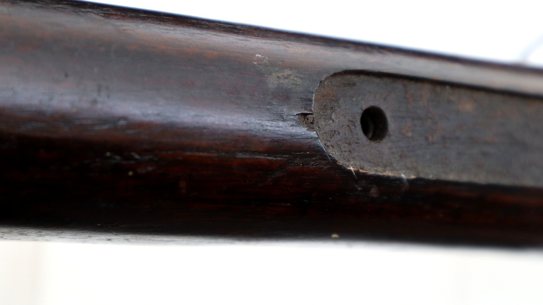 Wear: Metal finish turning brown with pitting, rust, scratches, handling marks and wear. Stocks show marks, scratches and wear.