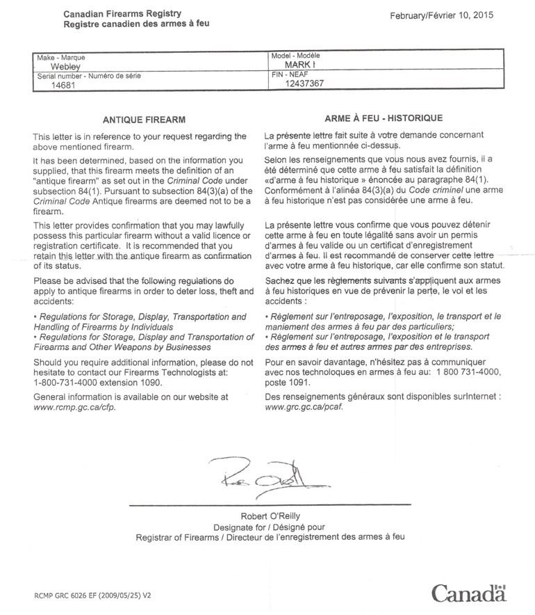 Class: Canadian Antique, No PAL Required