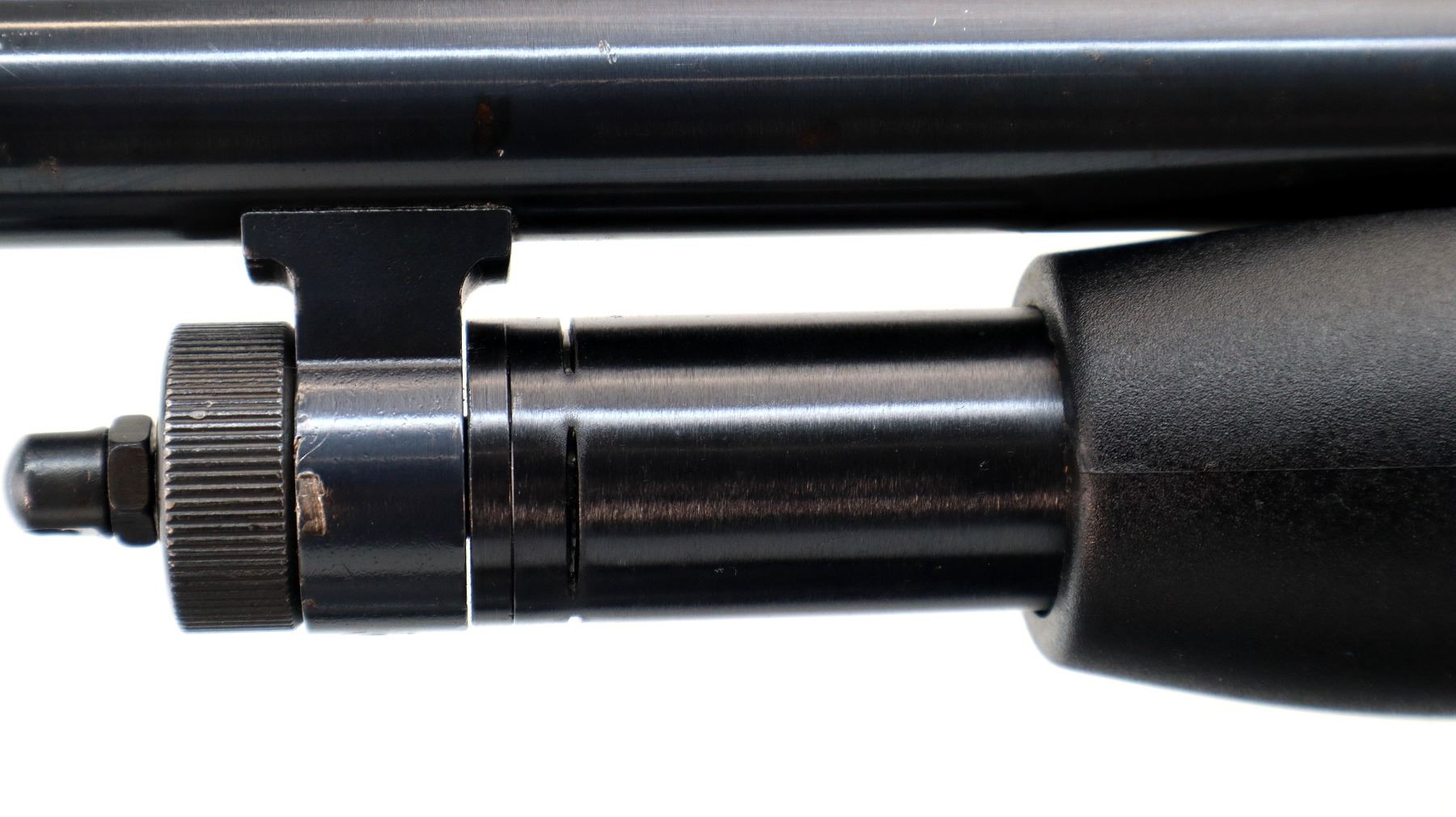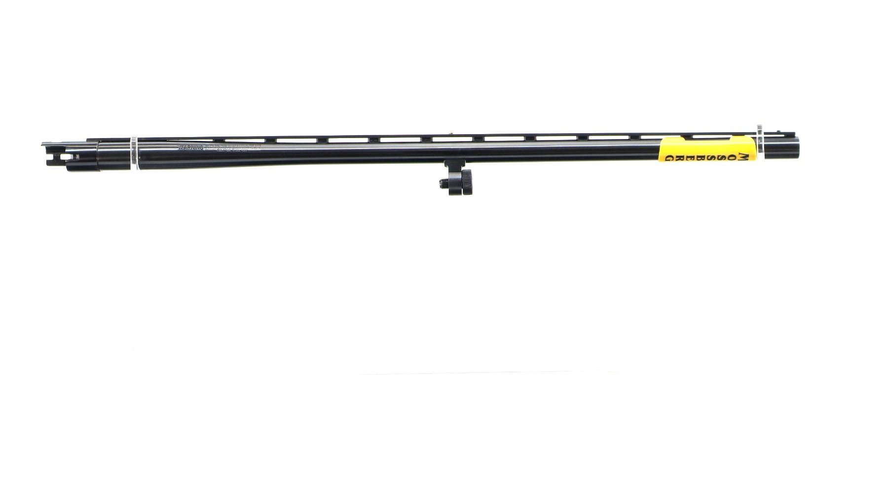 Main Description: Blade front sight with ramp, adjustable folding u notched rear sight, blued round barrel, black alloy receiver. Two piece black synthetic stocks, grooved forearm, checkered pistol grip, black vented rubber recoil pad, swivel studs, retains factory sticker on left side of stock. Spare Barrel: 12 G X 3", 28", Excellent Bore, Removable Mod Choke, White front and brass mid rib beads, blued finish, vent rib, retains factory tag.
