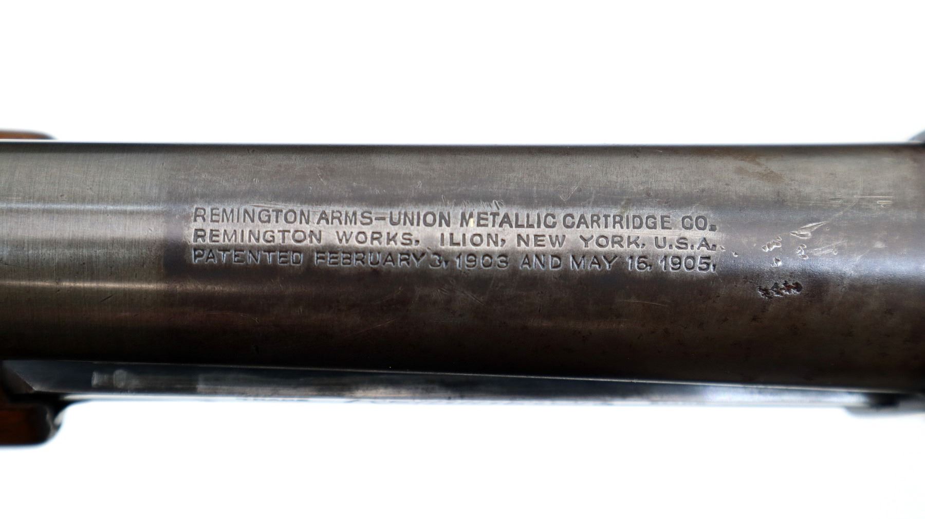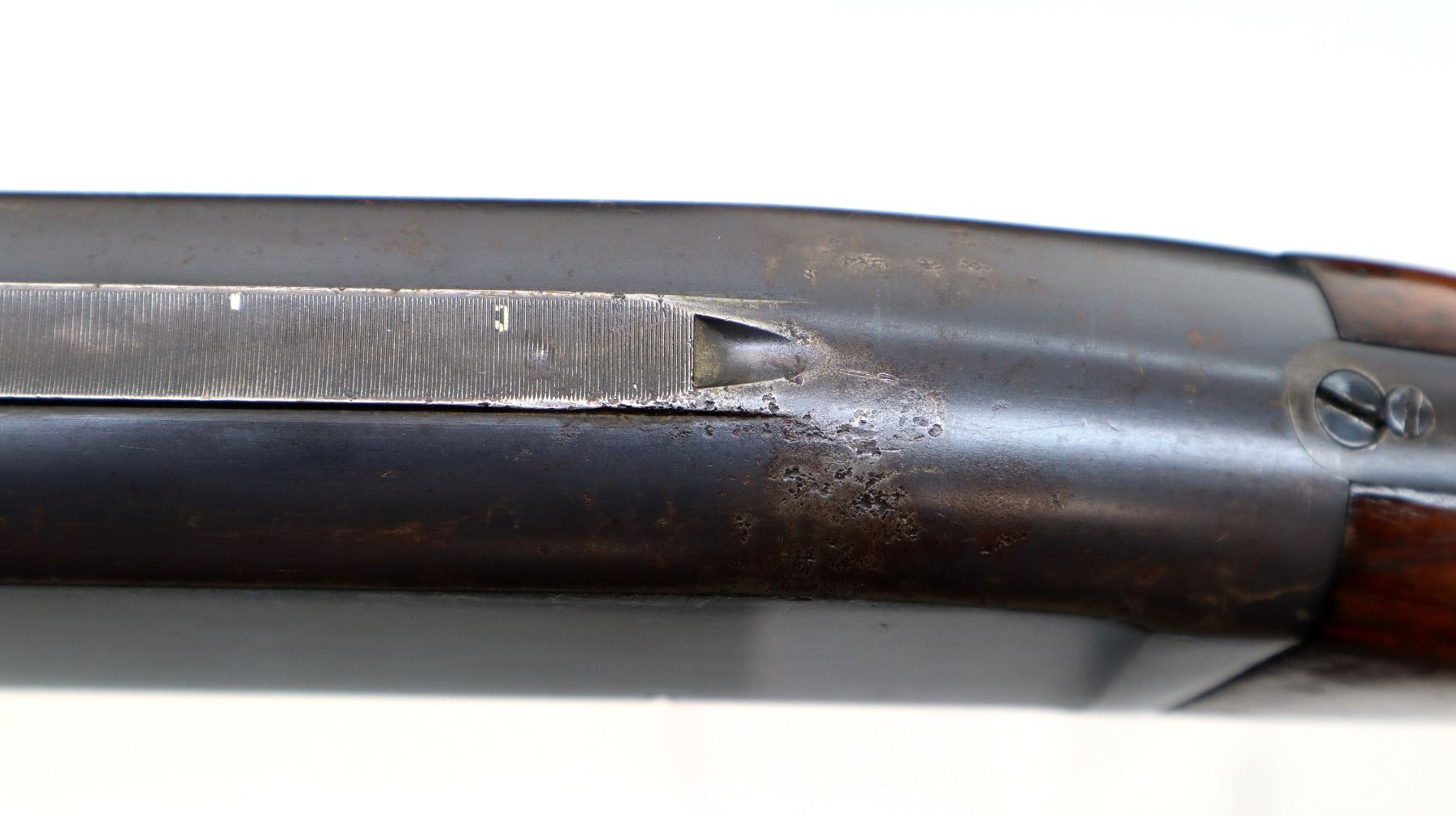 Wear: Metal finish shows some pitting, light rust speckles, scratches, handling marks and wear. Stocks show some marks, scratches and wear.