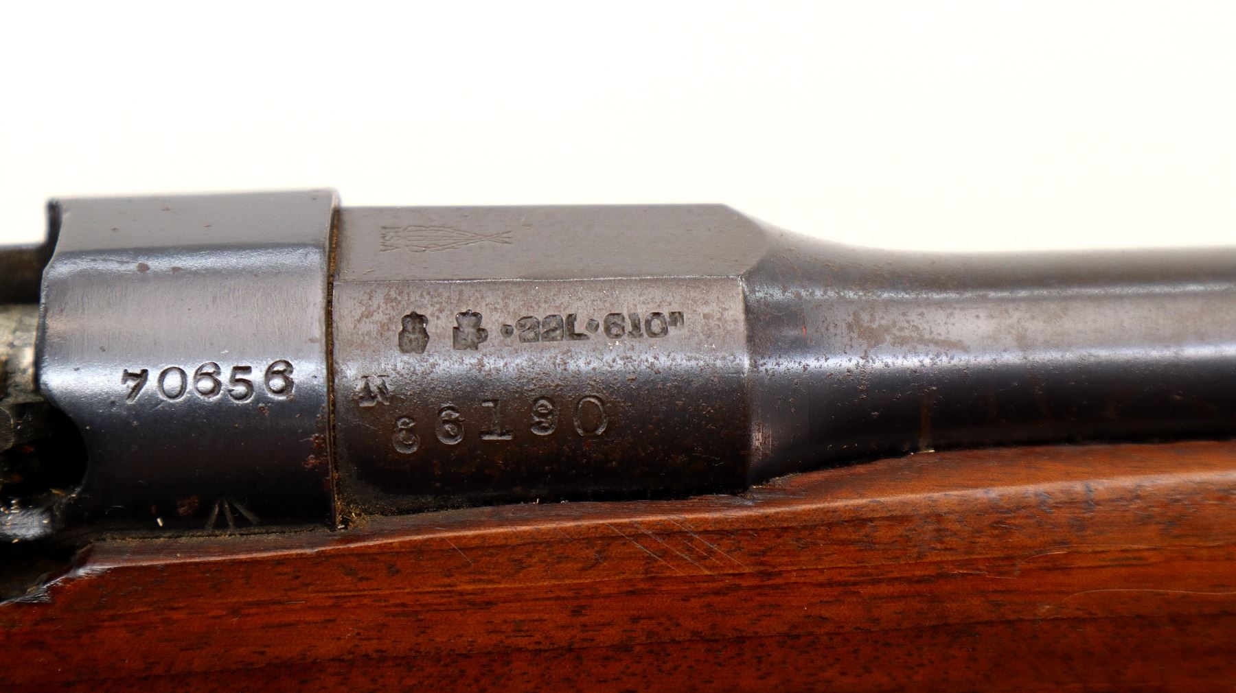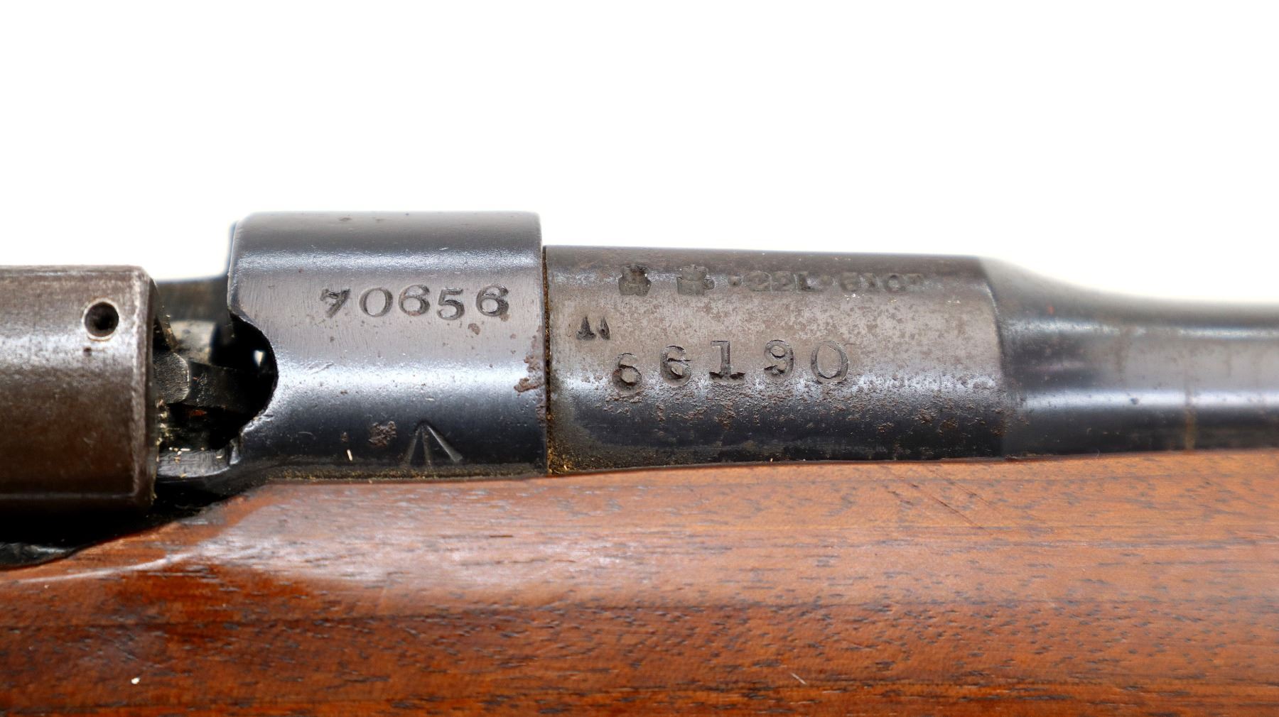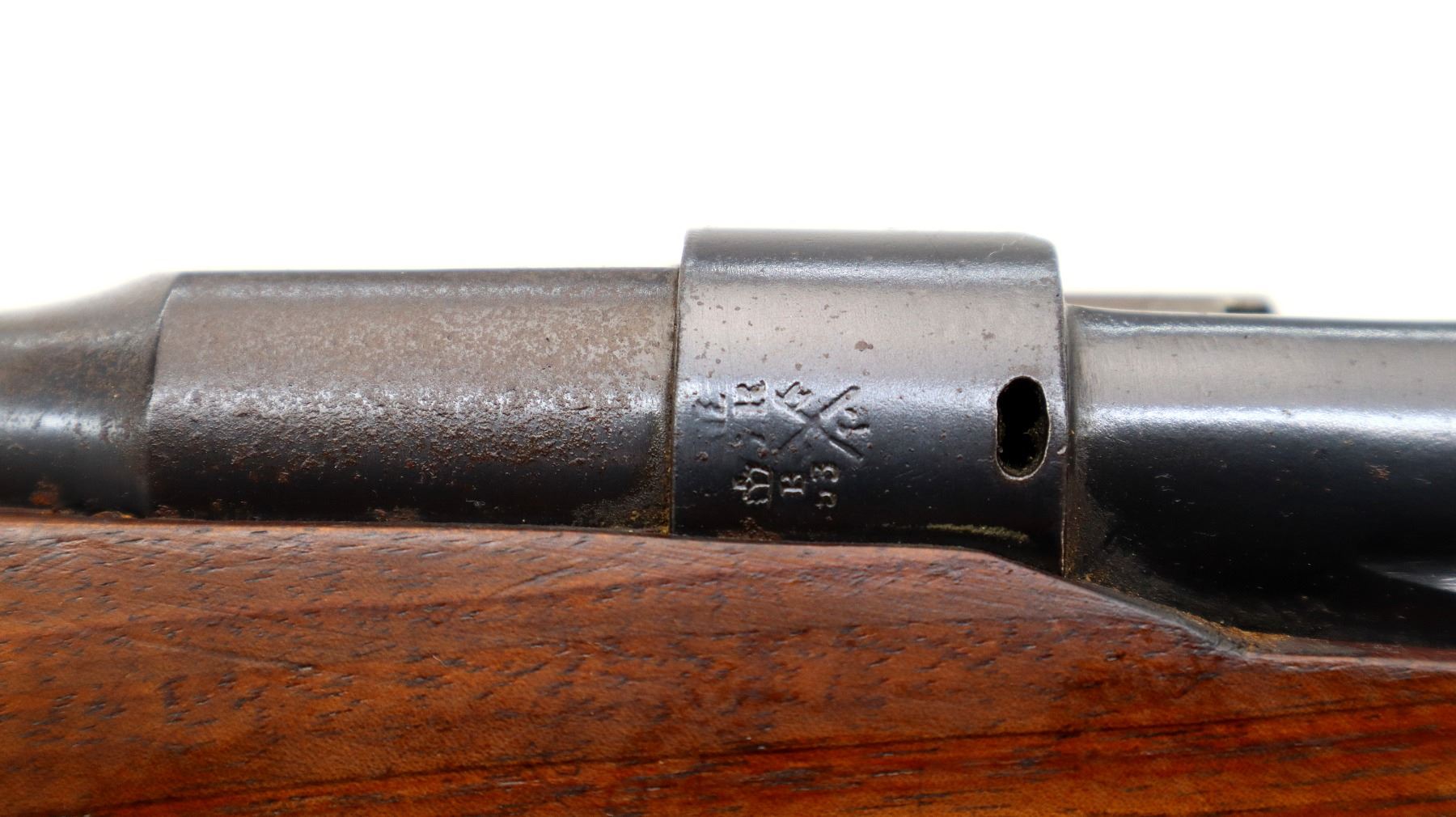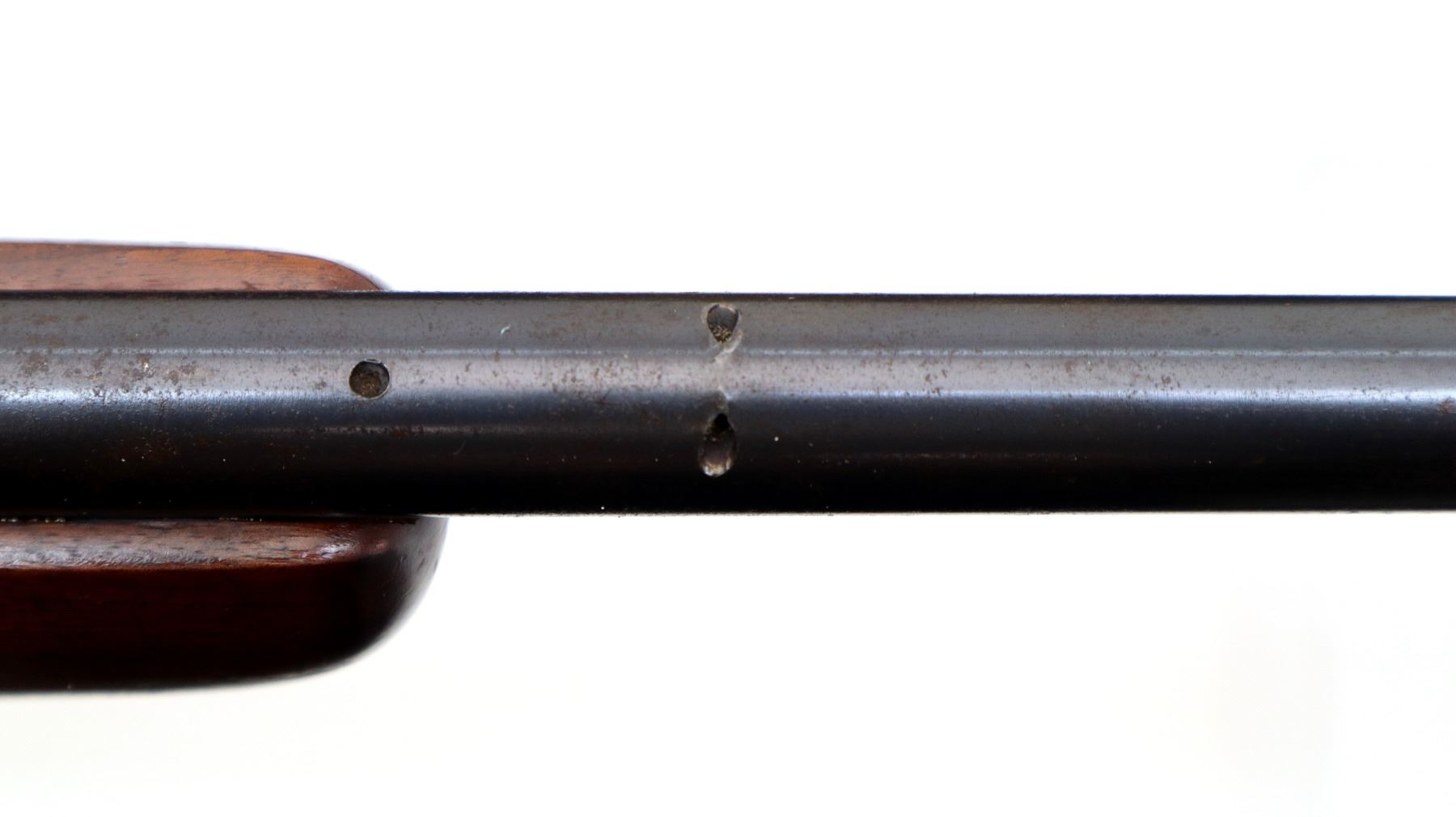 Wear: Metal finish shows some light rust speckles, scratches, handling marks and wear. Stocks show some marks, scratches and wear.