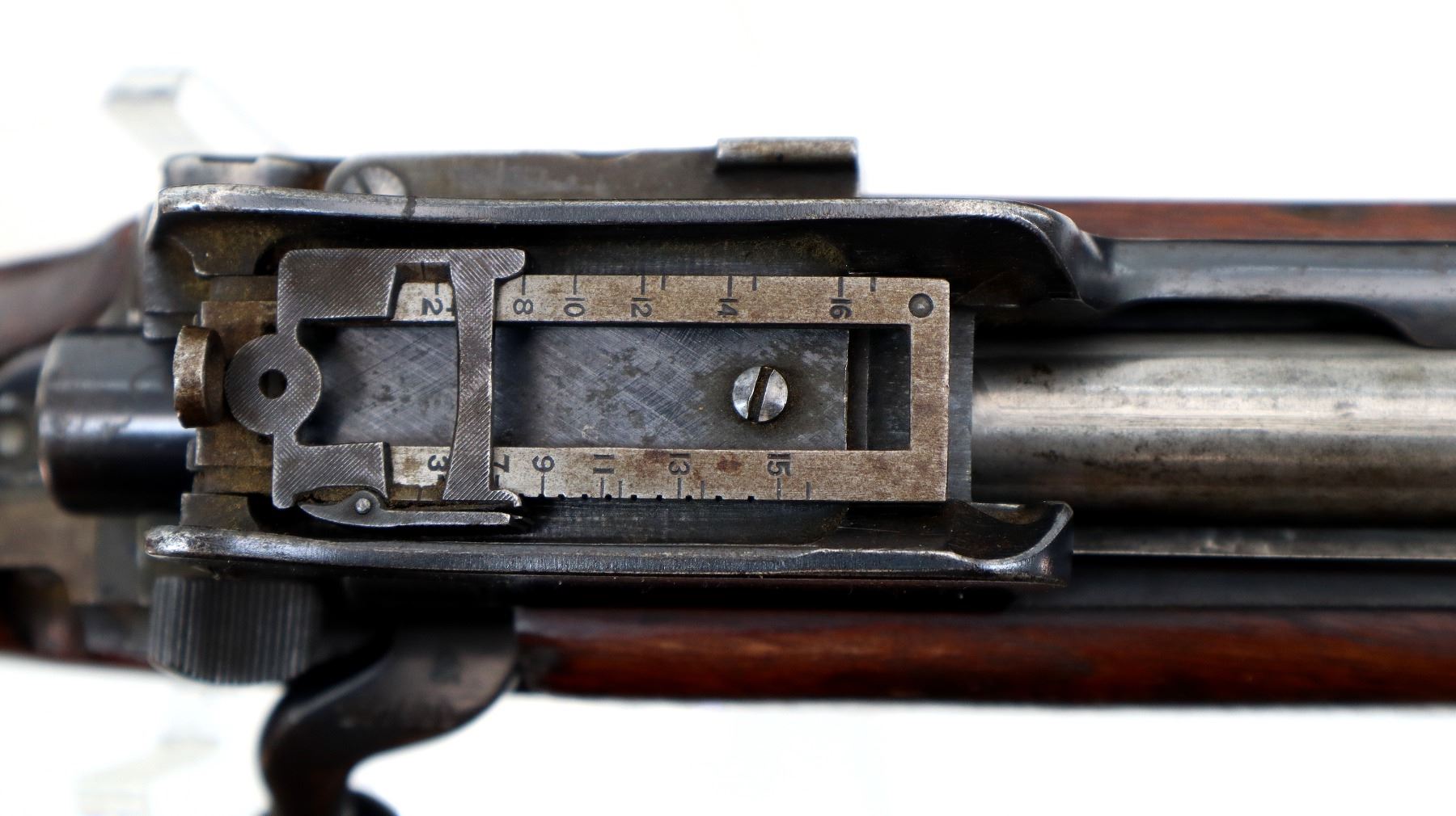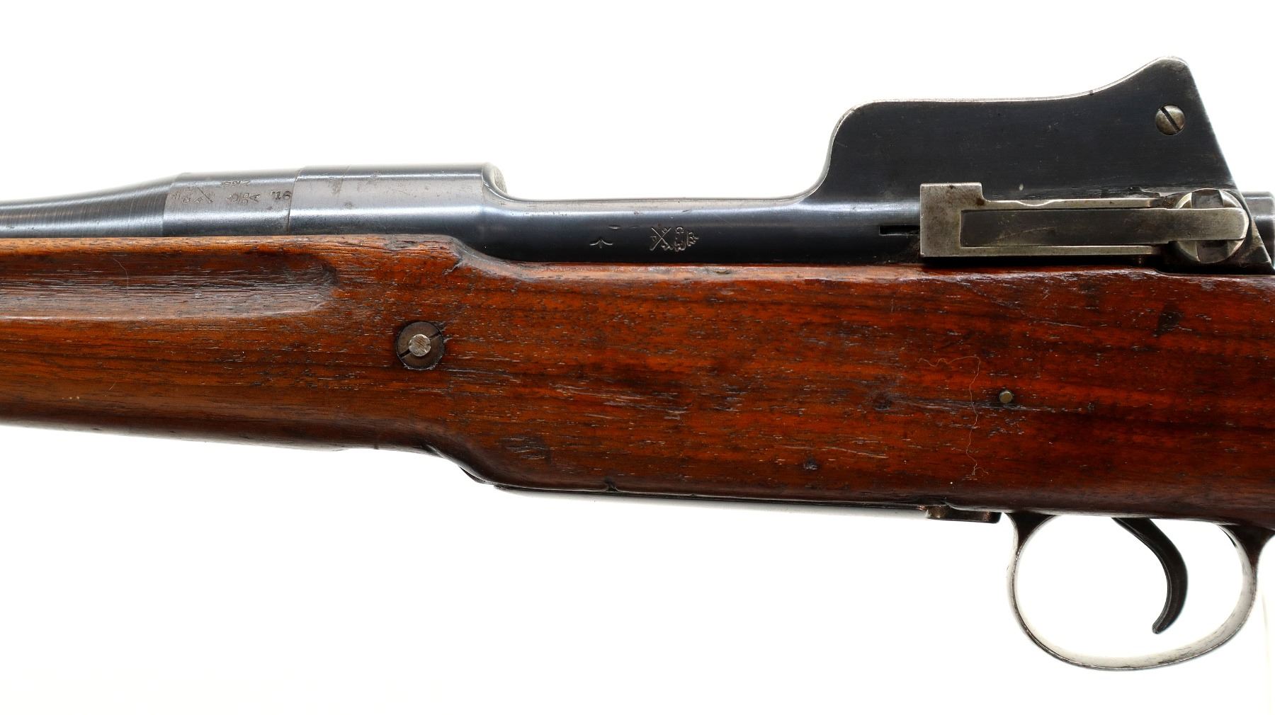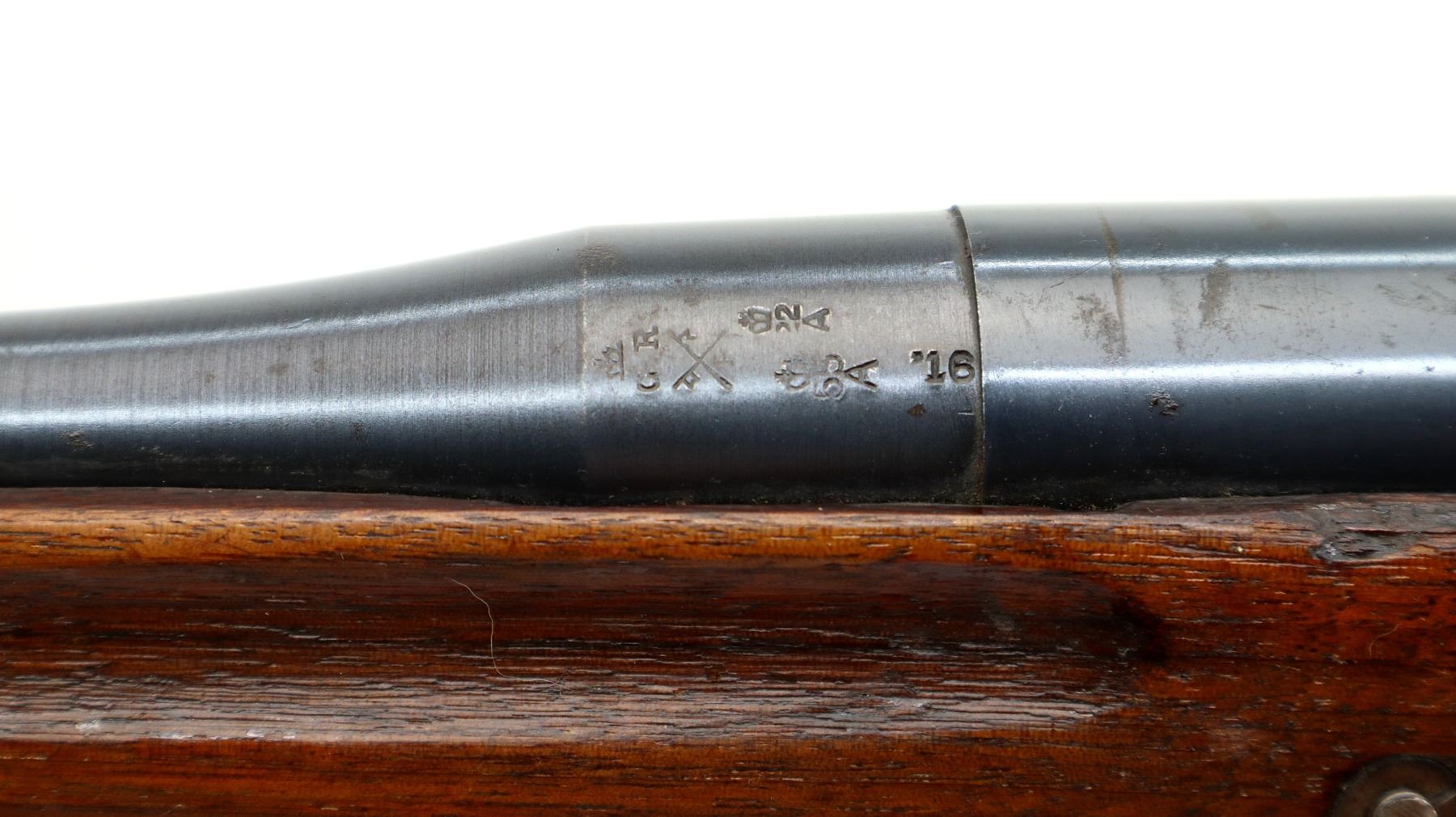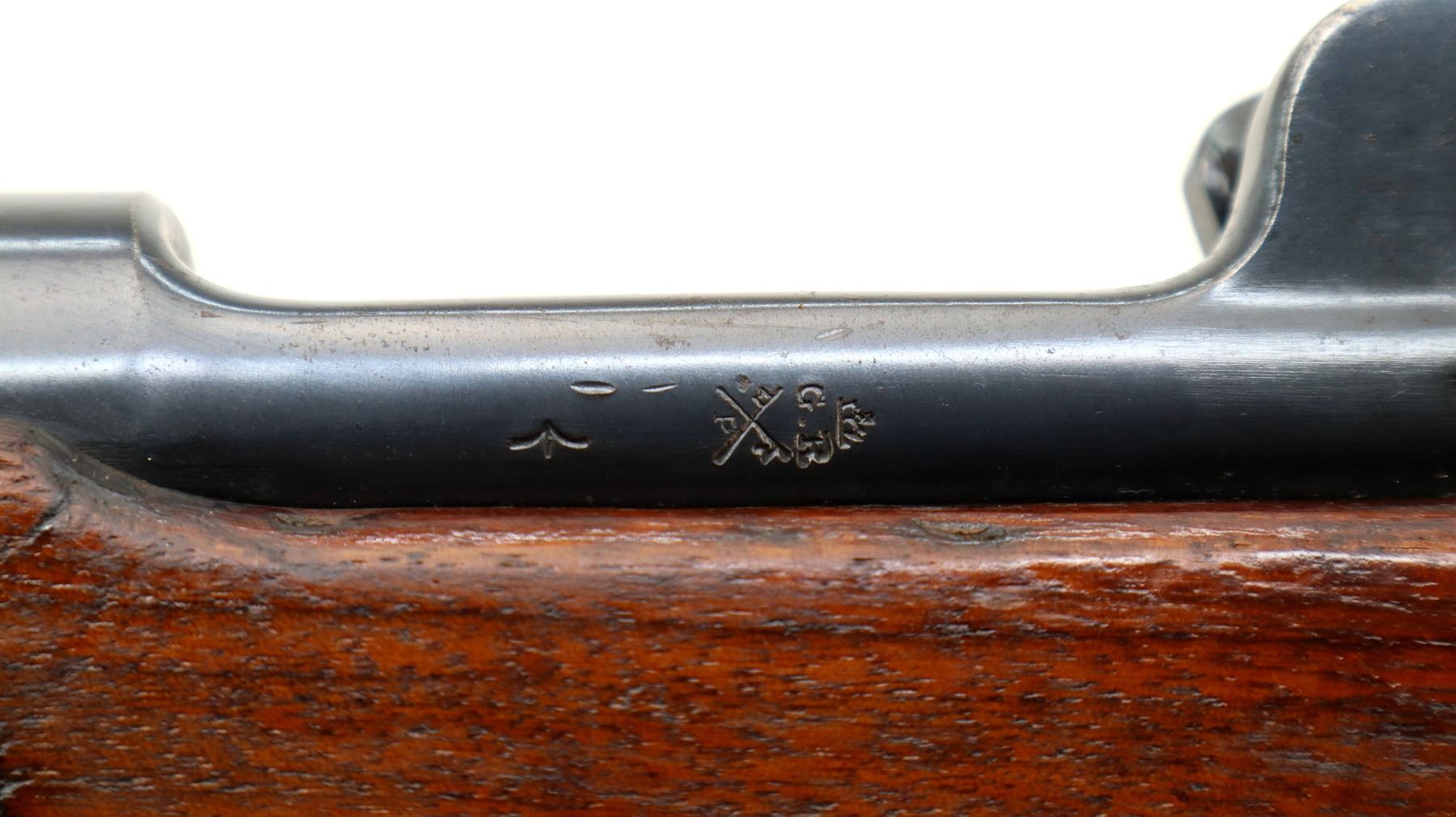 Wear: Metal finish shows some light rust speckles, scratches, handling marks and wear. Stock shows some marks, scratches and wear.
