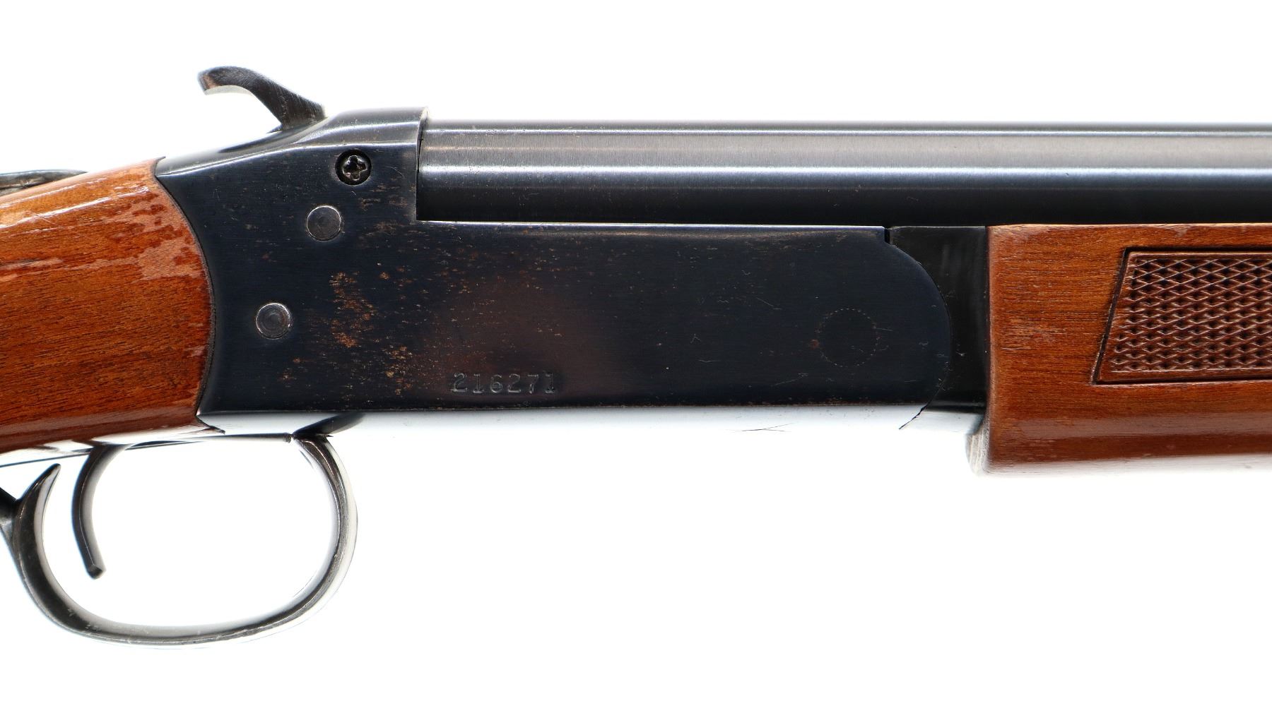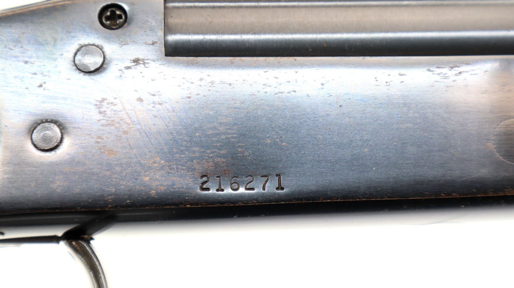 Wear: Metal finish shows a few light rust speckles, scratches, handling marks and wear. Stocks show some marks, scratches and wear.