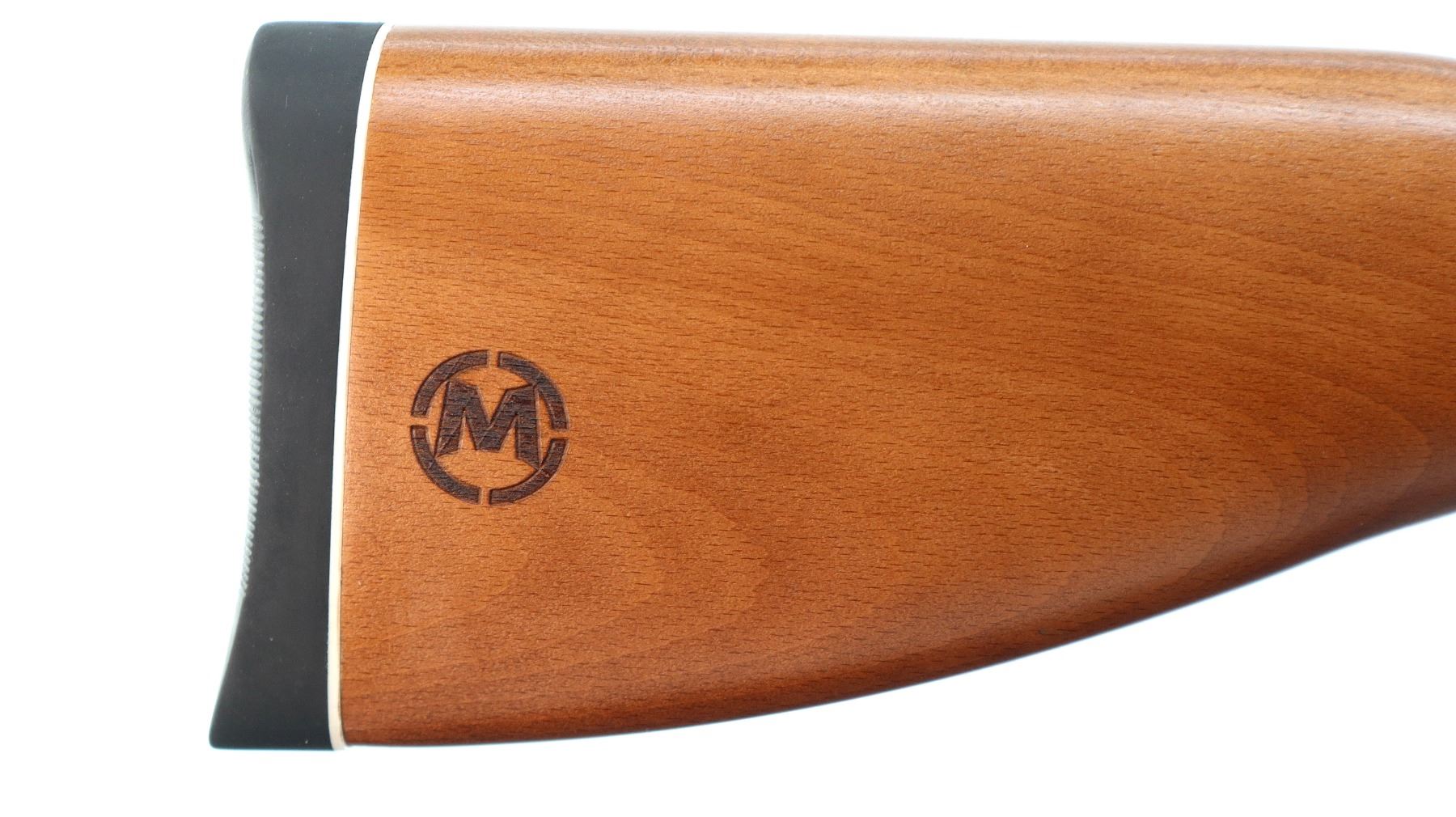 Main Description: Red fiber optic blade front sight with ramp, adjustable u notched red fiber optic rear sight, satin blued barrel and outer magtube, grooved black alloy receiver, large checkered bolt handle. One piece wood stock, pistol grip, grooved black polymer butt plate.