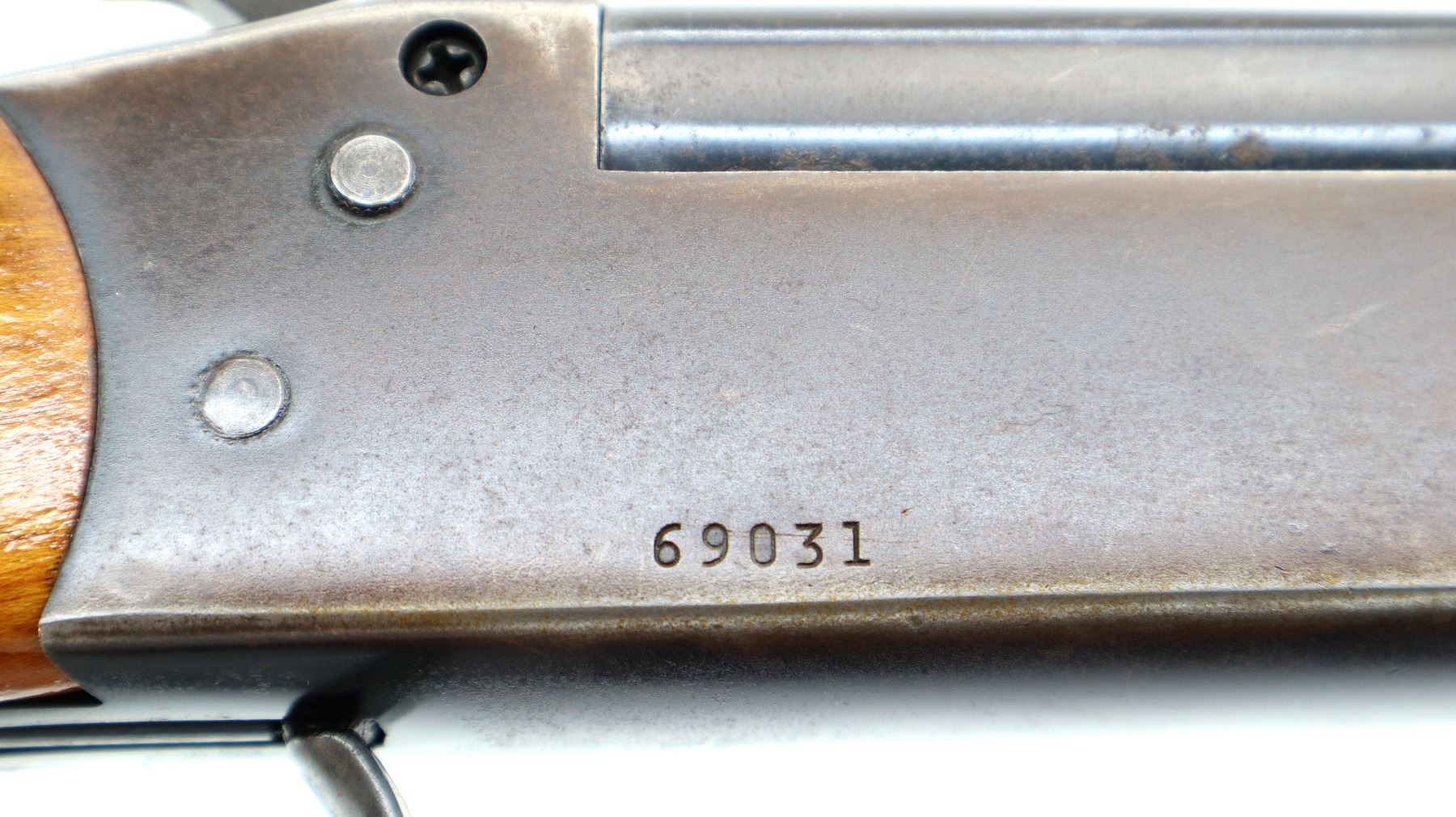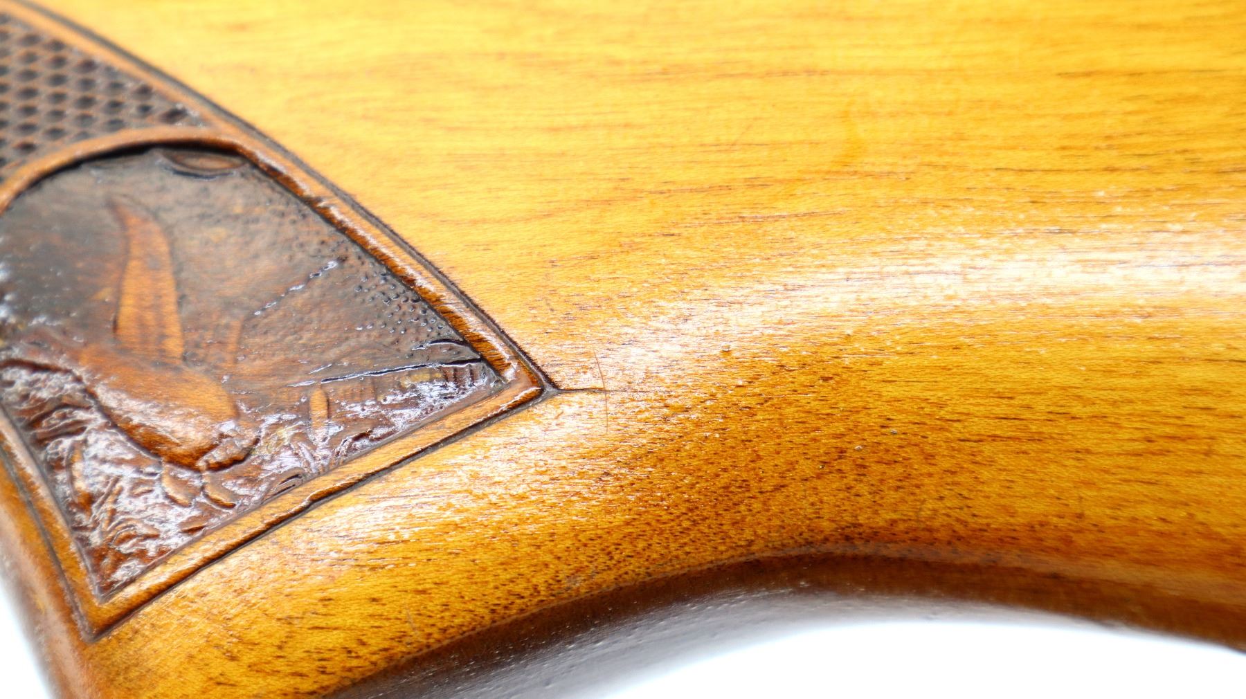 Wear: Metal finish shows a few light rust speckles, scratches, handling marks and wear. Stocks show some marks, scratches and wear.