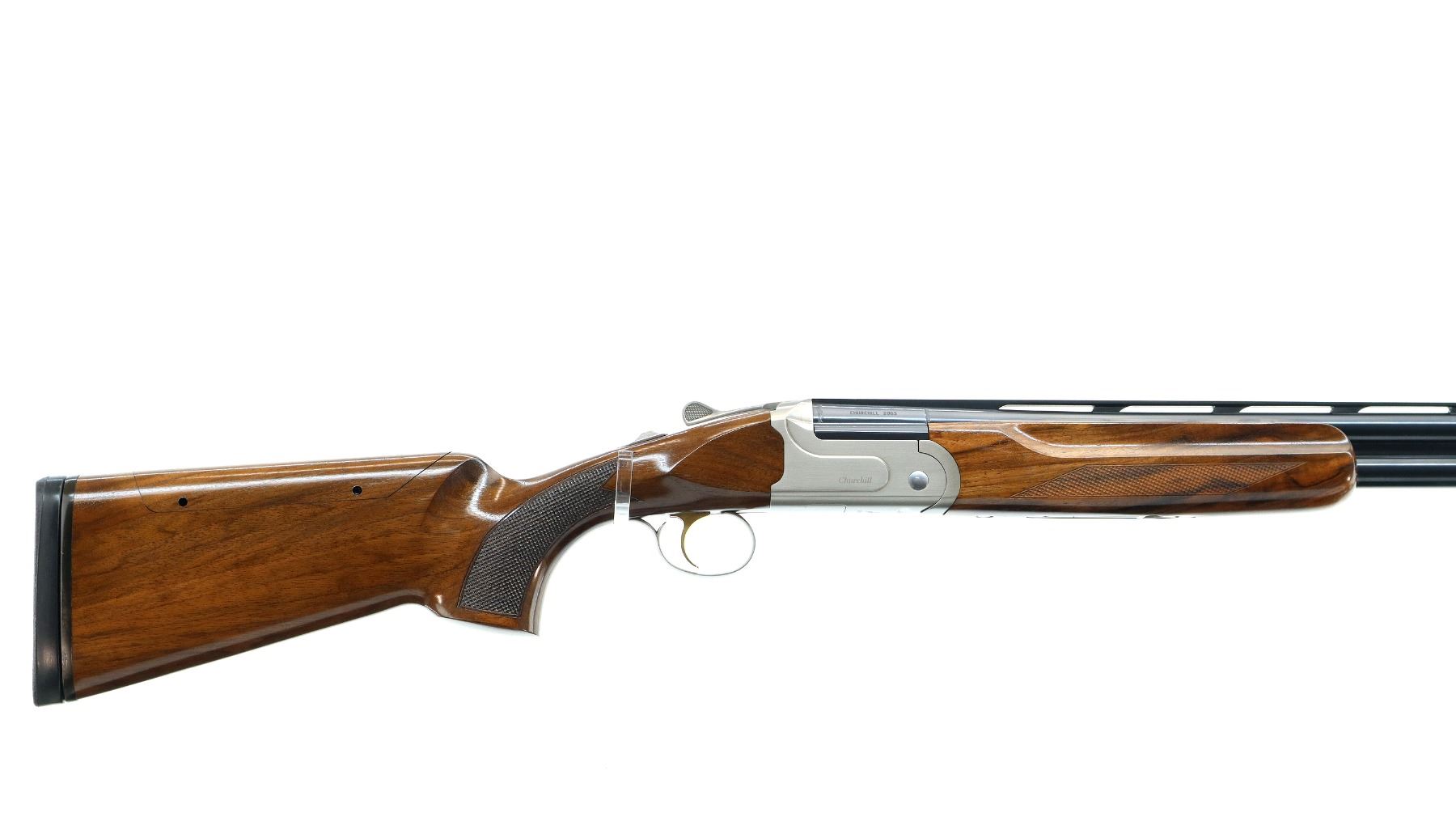 Main Description: Red Fiber optic front and brass mid rib beads, blued vent rib barrels, silver receiver, manual selective safety, ejectors, single gold inertia trigger. Two piece wood stocks, finger grooved checkered forearm and pistol grip with right hand palm swells, adjustable comb, black rubber recoil pad. Accessories include: Spare Cylinder, Mod and Full Chokes with Wrench and Case