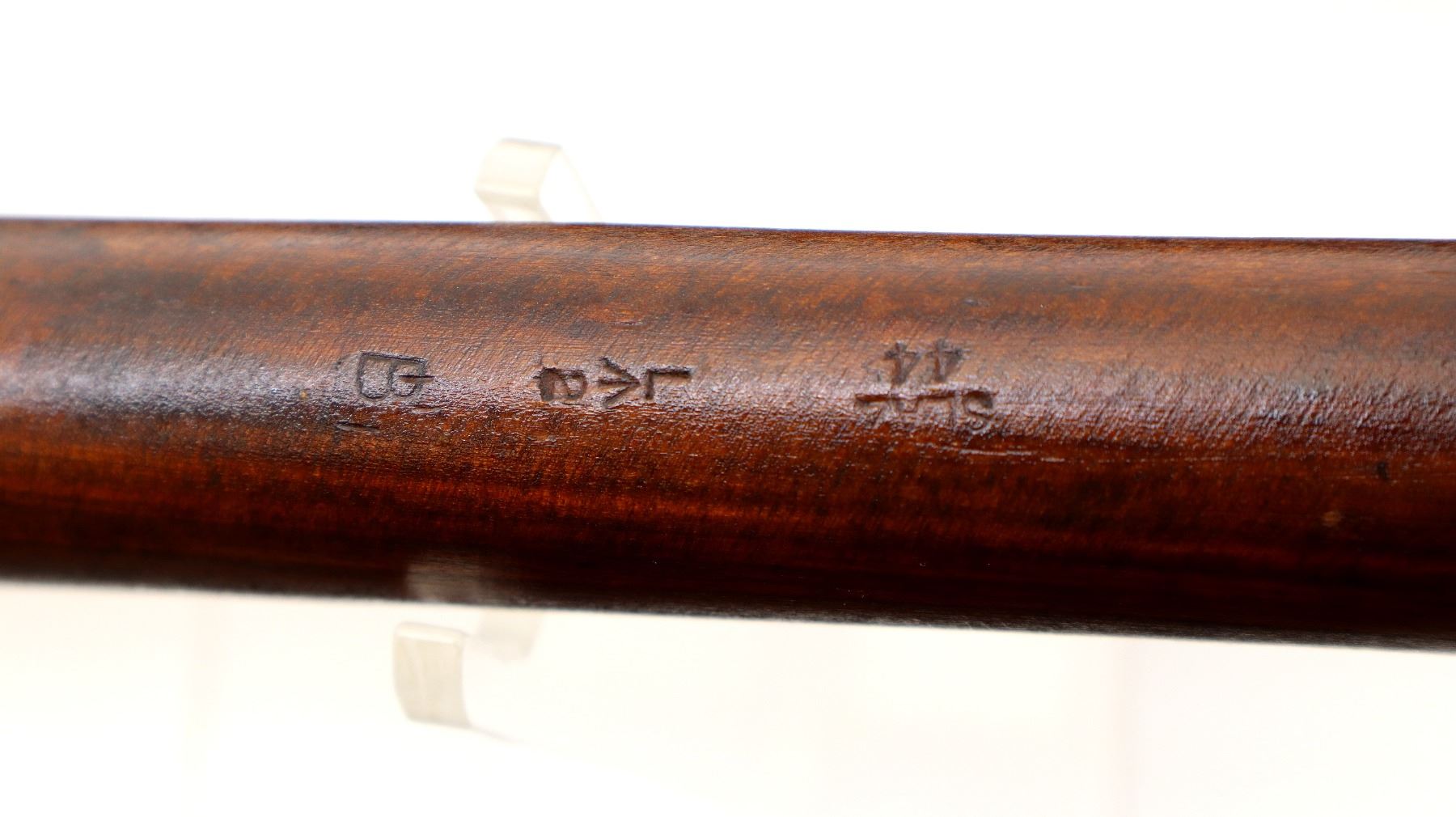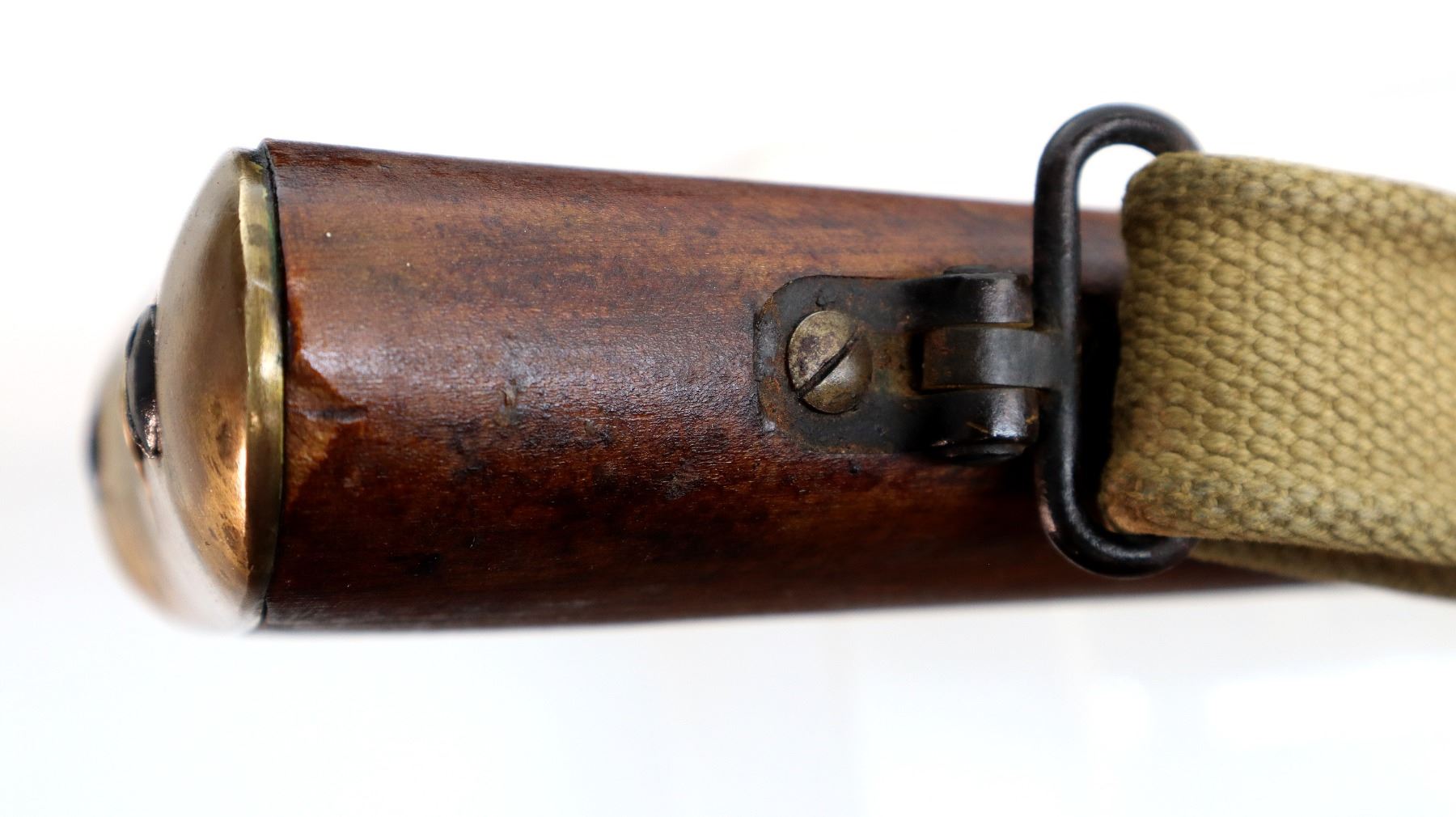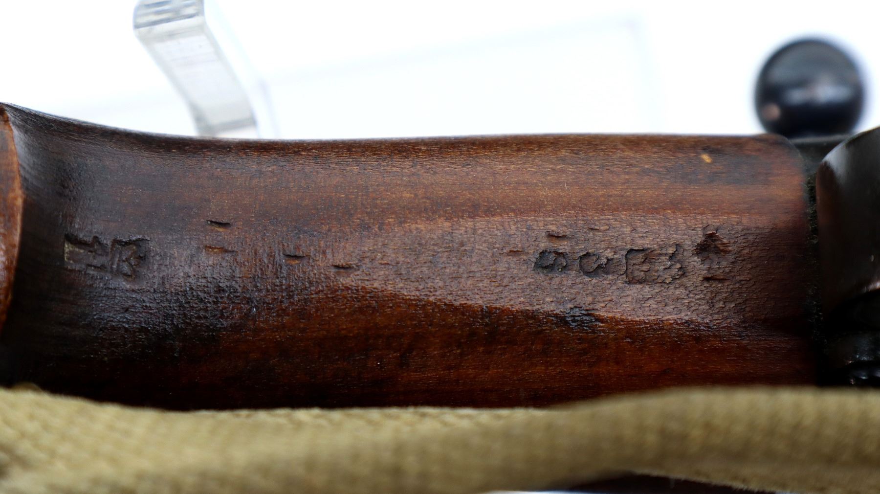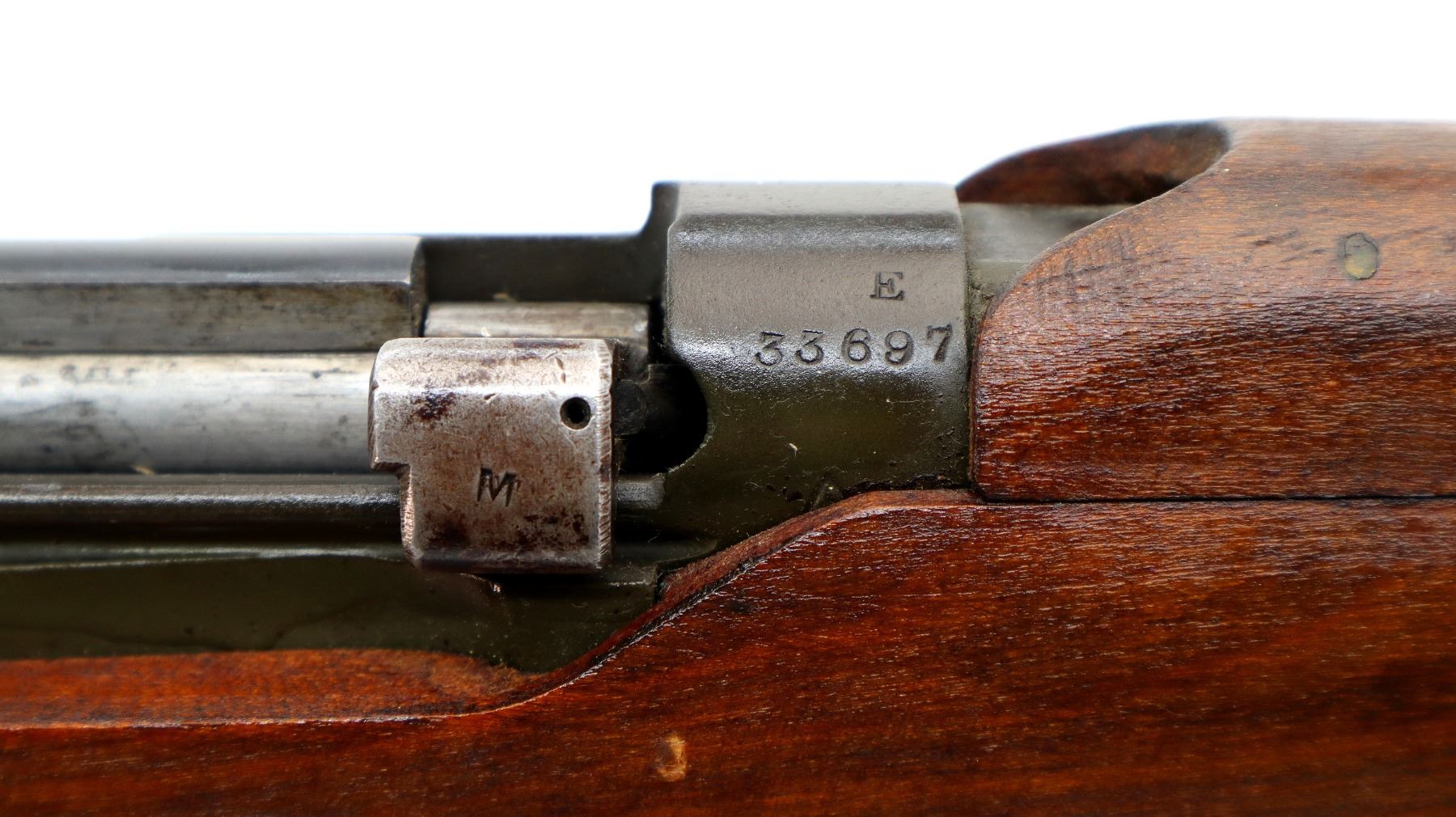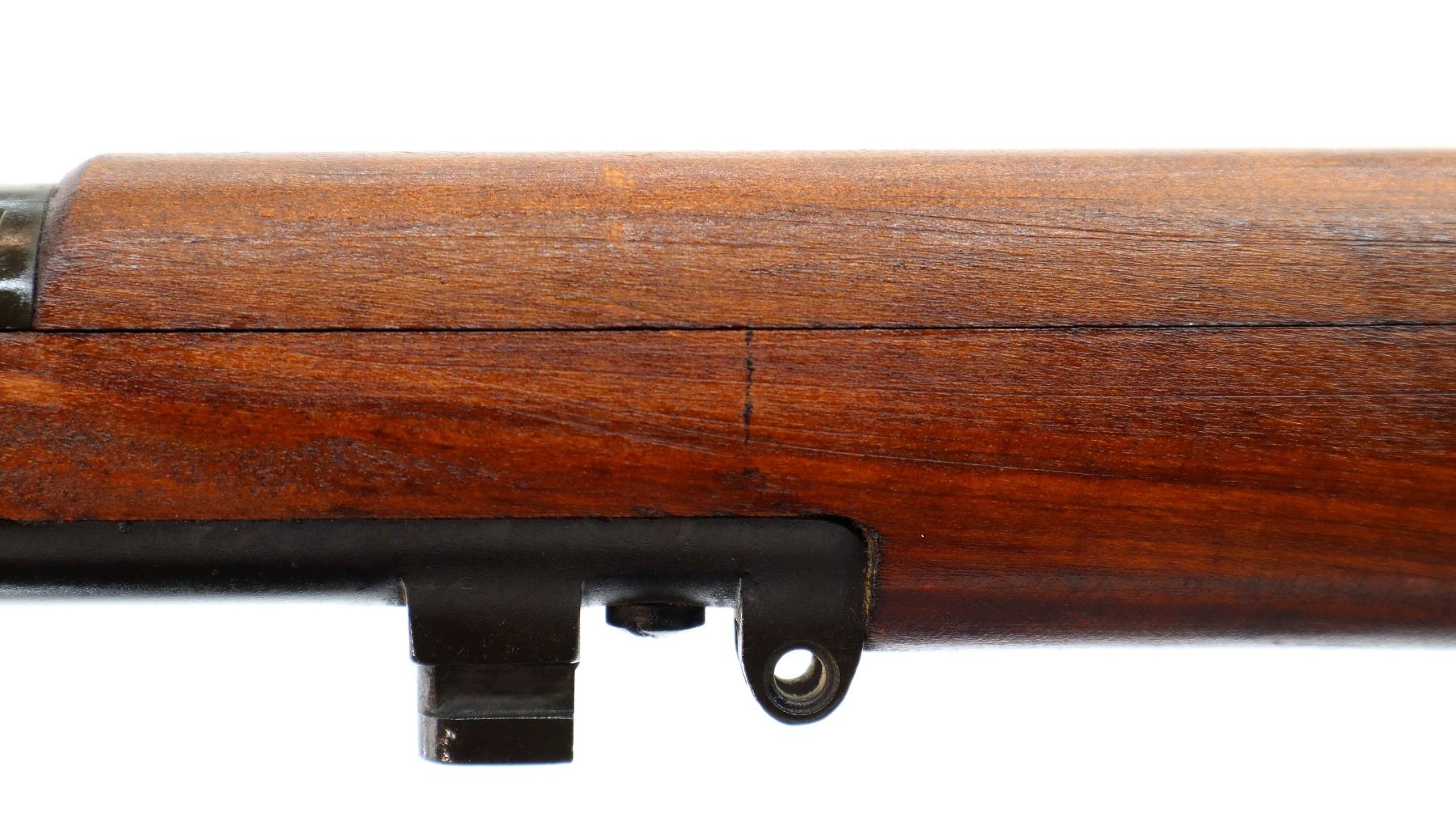 Main Description: Manufactured by BSA Co 1917, bolt mismatched, nose cap and forearm not numbered. Blade front sight with ears and ramp, adjustable u notched rear sight with ears, Parkerized metal finish. Four piece full military wood stocks, pistol grip, smooth brass butt plate with trap, Australian MA 11/44 markings on right side of butt, sling swivels with P37 canvas web sling, forearm has Australian proof marks, bayonet lug.