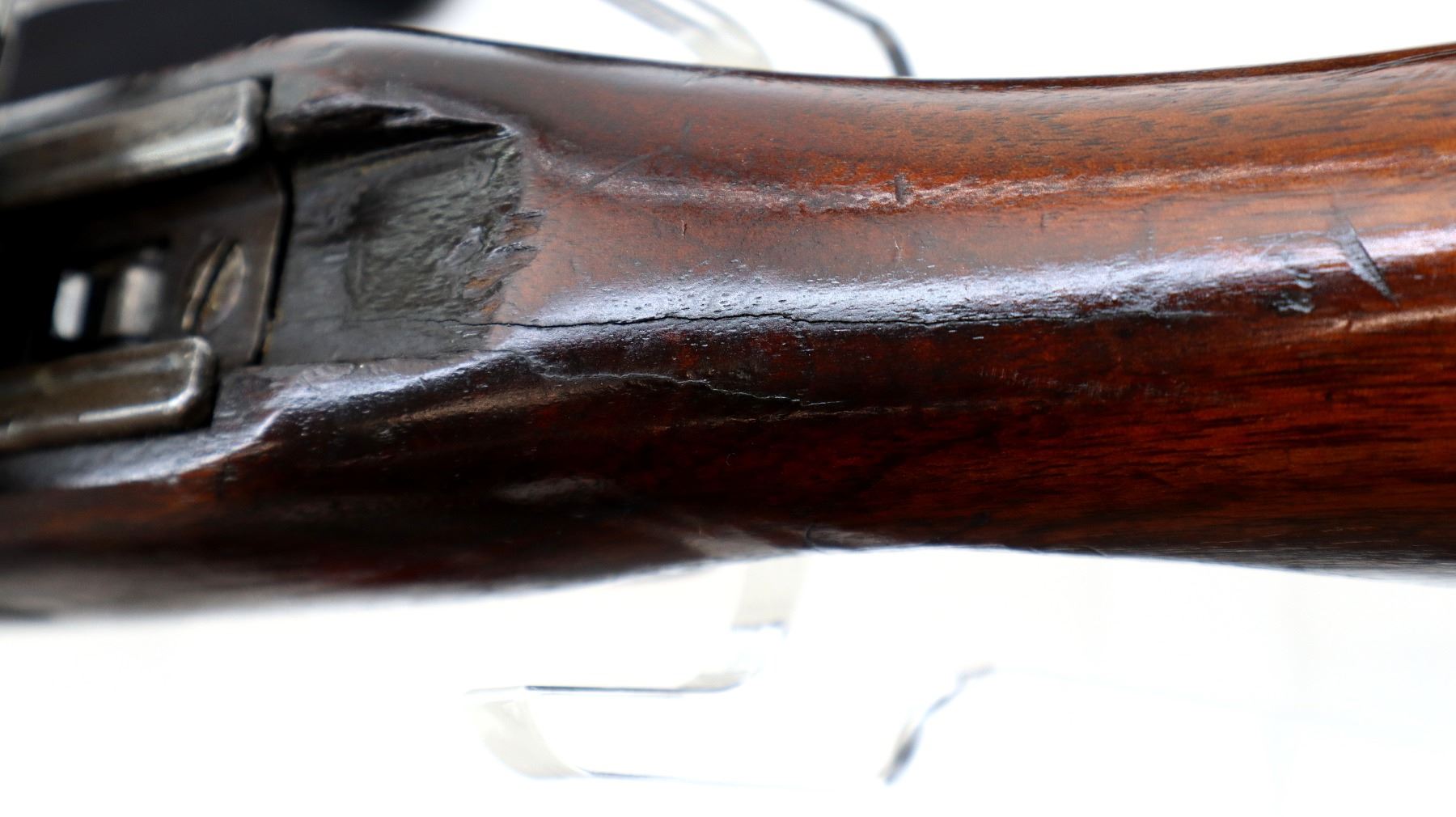 Wear: Metal finish shows some light rust speckles, scratches, handling marks and wear. Stocks show some marks, scratches and wear.