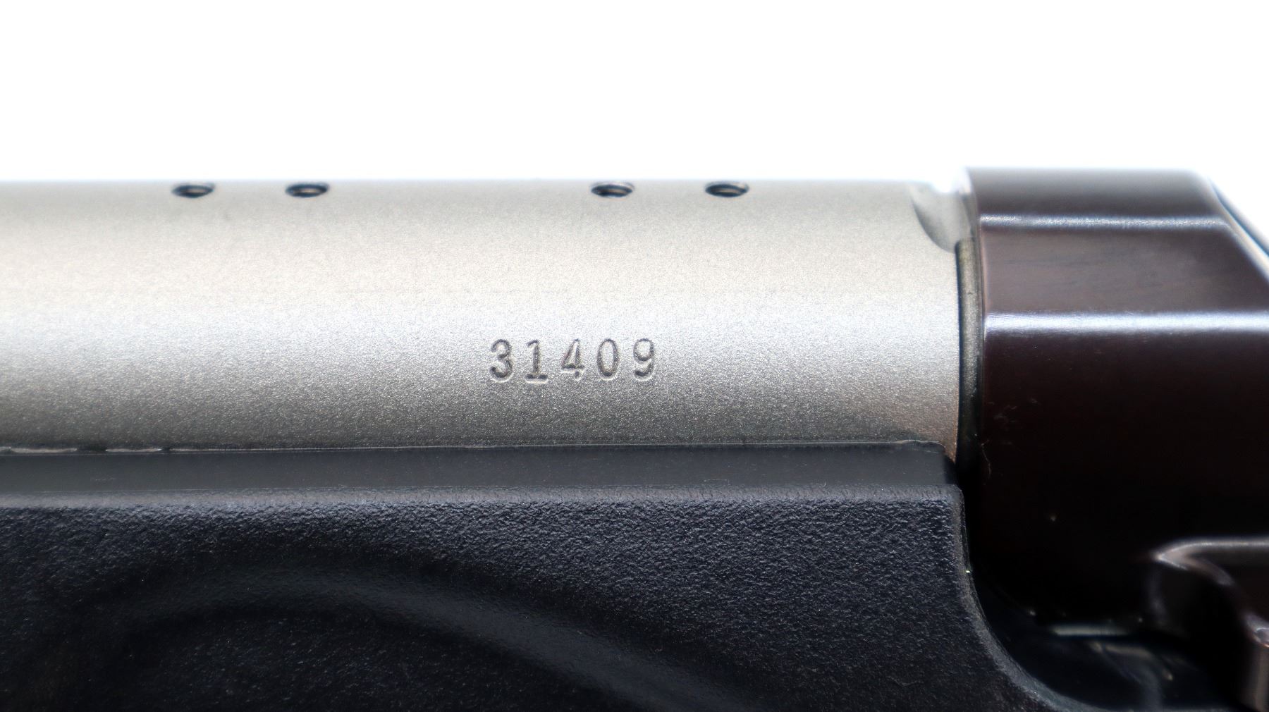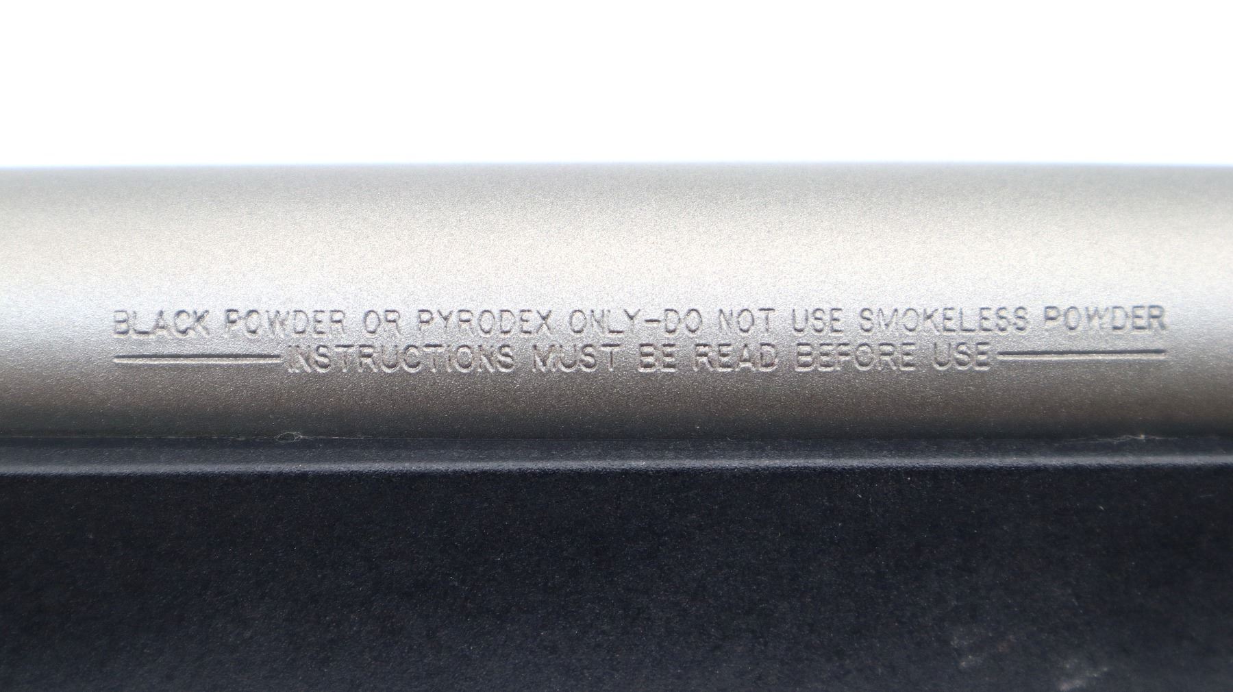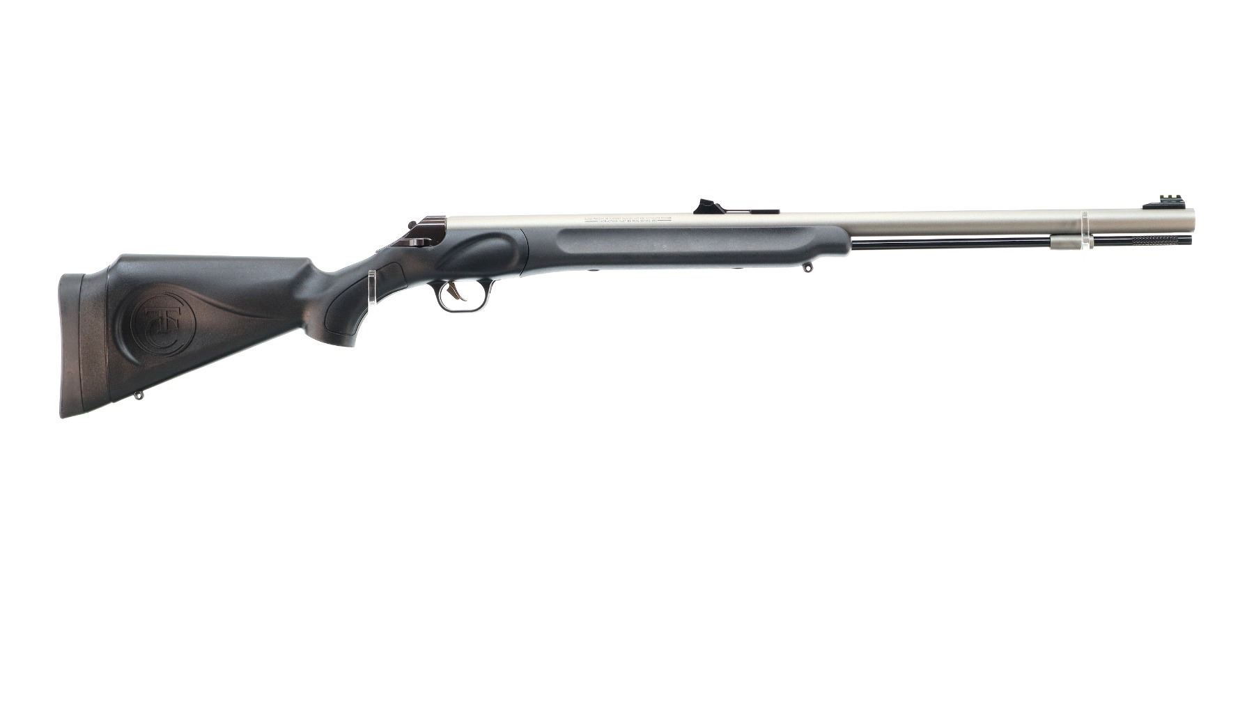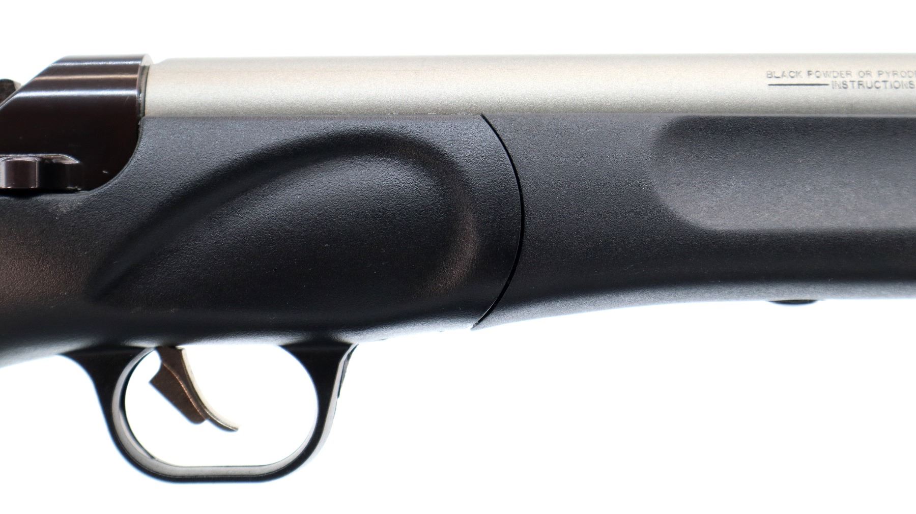 Main Description: Green fiber optic blade front sight with ramp, adjustable u notched red fiber optic rear sight, stainless barrel drilled and tapped with no plug screws installed, smooth opening levers and spur hammer, uses 209 primers. Two piece black synthetic stocks, finger grooved forearm, textured pistol grip with ambi palm swells, raised comb, black rubber recoil pad, swivel studs, black alloy ramrod.