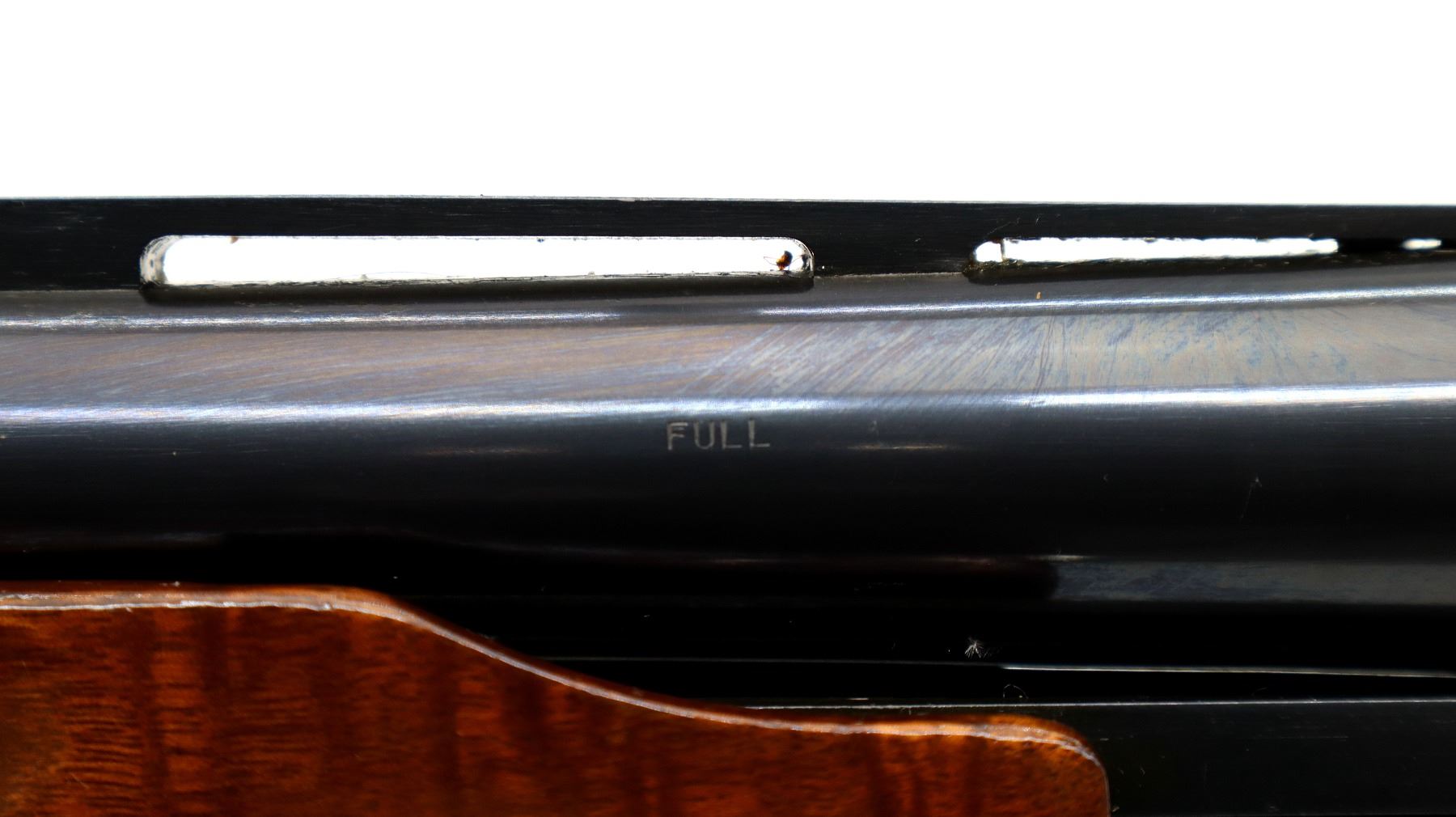 Main Description: Silver bead, blued finish, vent rib. Two piece wood stocks, finger grooved checkered forearm and pistol grip, black rubber recoil pad, grip cap, rear swivel stud only.