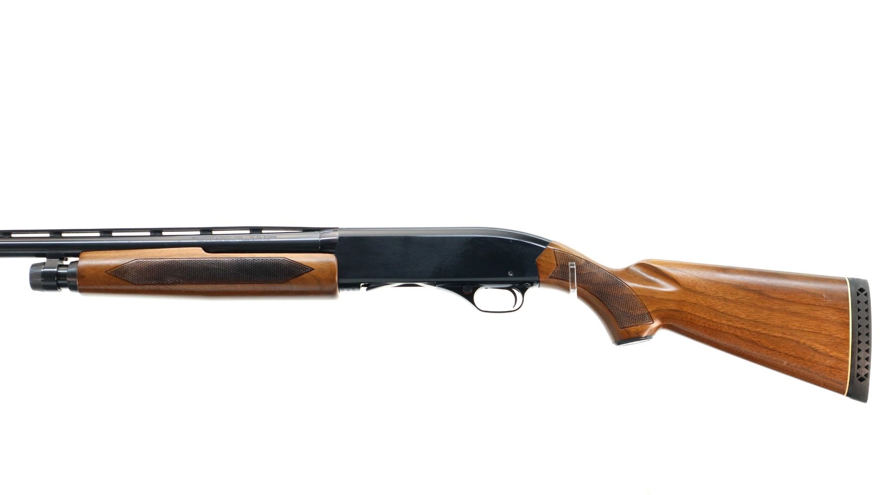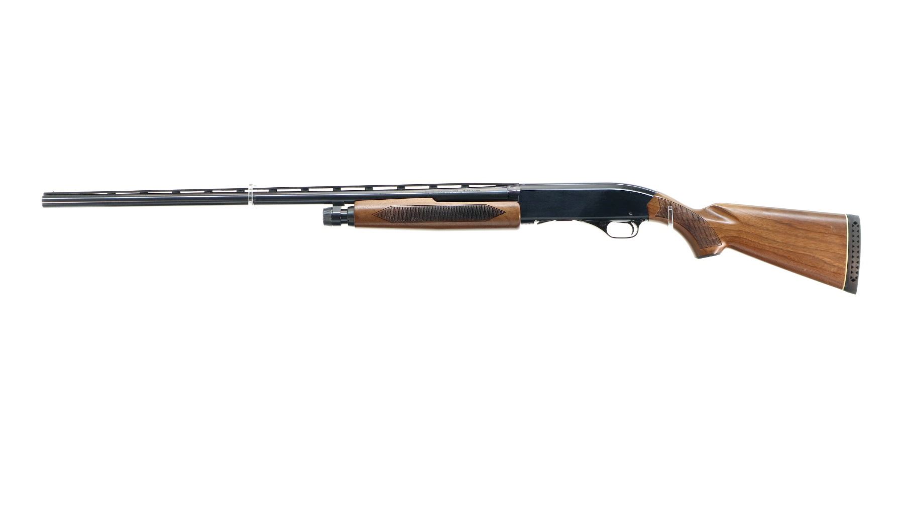 Main Description: Silver bead, blued vent rib barrel, black alloy receiver. Two piece wood stocks, checkered forearm and pistol grip, black vented rubber recoil pad, grip cap.