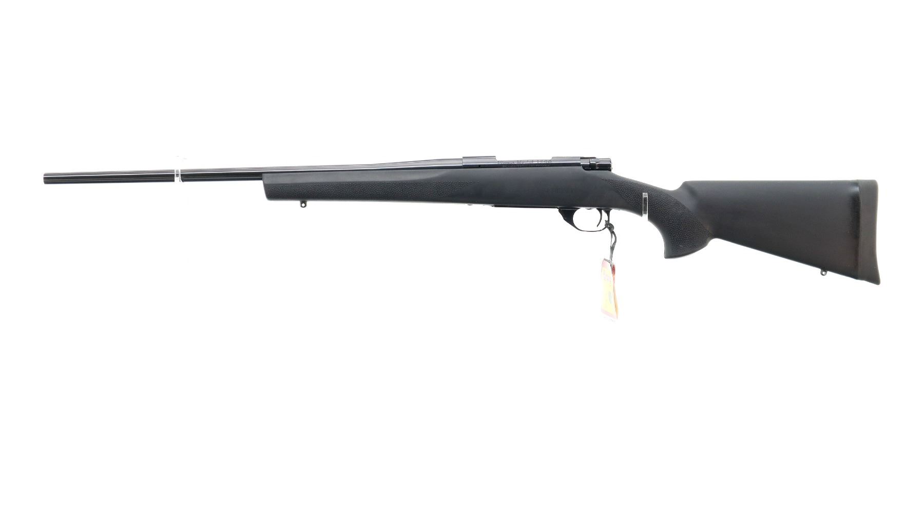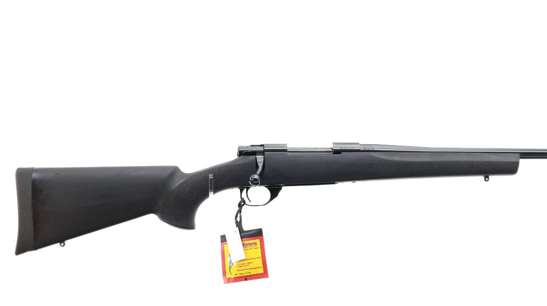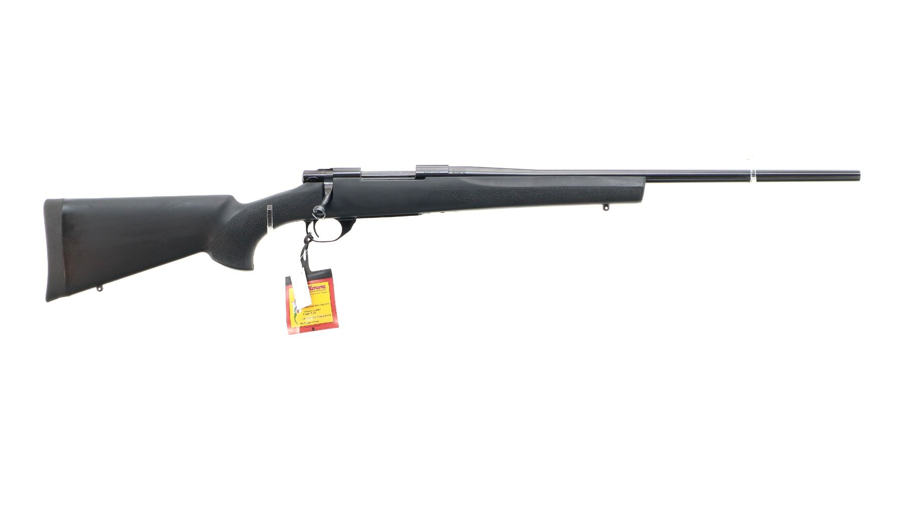 Main Description: No sights, blued finish, receiver drilled and tapped with plug screws installed, smooth bolt knob. One piece Hogue over mold black synthetic stock, textured forearm and pistol grip panels, black rubber recoil pad, hinged floor plate, swivel studs, retains factory hang tags. Accessories include: Niko Sterling Game King Side LRX 3.5-10 x 44 AO IR Scope, clear optics, range finding reticle, illuminated green and red that functions. One piece rail, one set of rings.