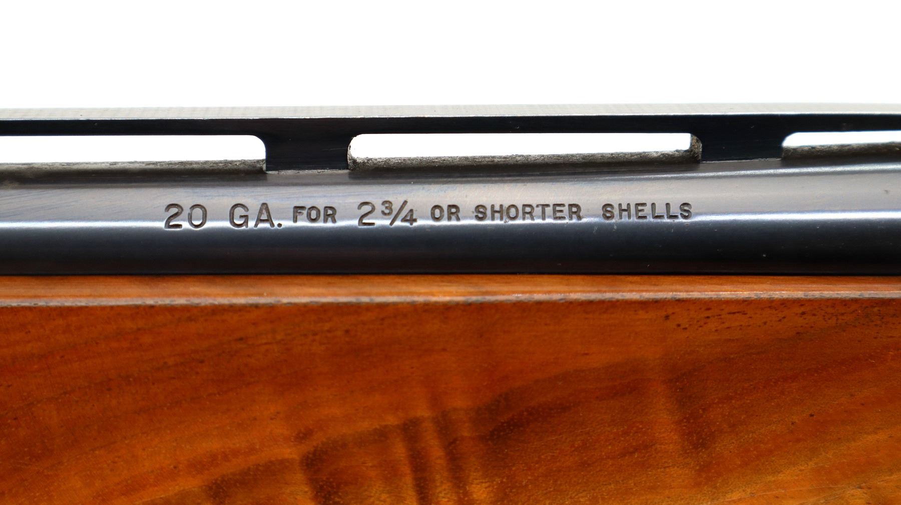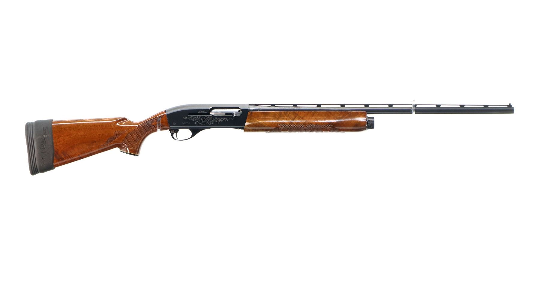 Main Description: White front and silver mid rib beads, blued finish, vent rib, engraved receiver and bolt. Two piece wood stocks, checkered forearm and pistol grip, slip on Limbsaver black rubber recoil pad, 14.5" LOP, missing butt plate and screws. Has a grip cap.