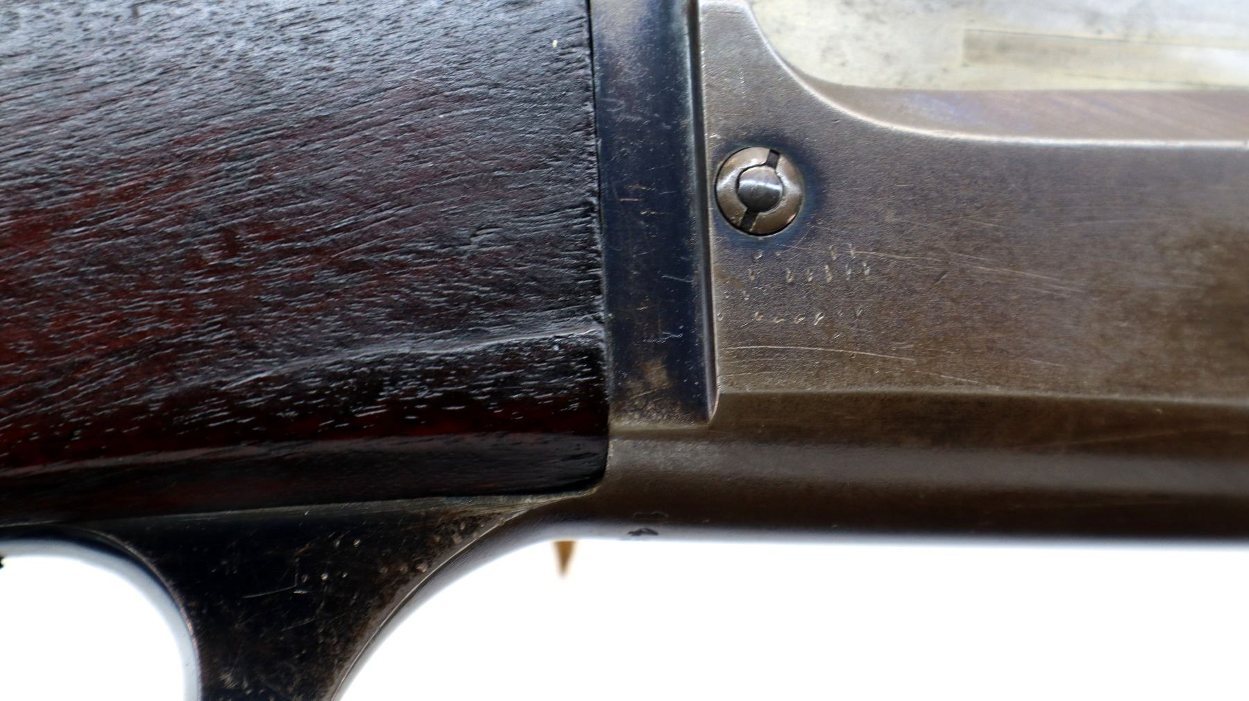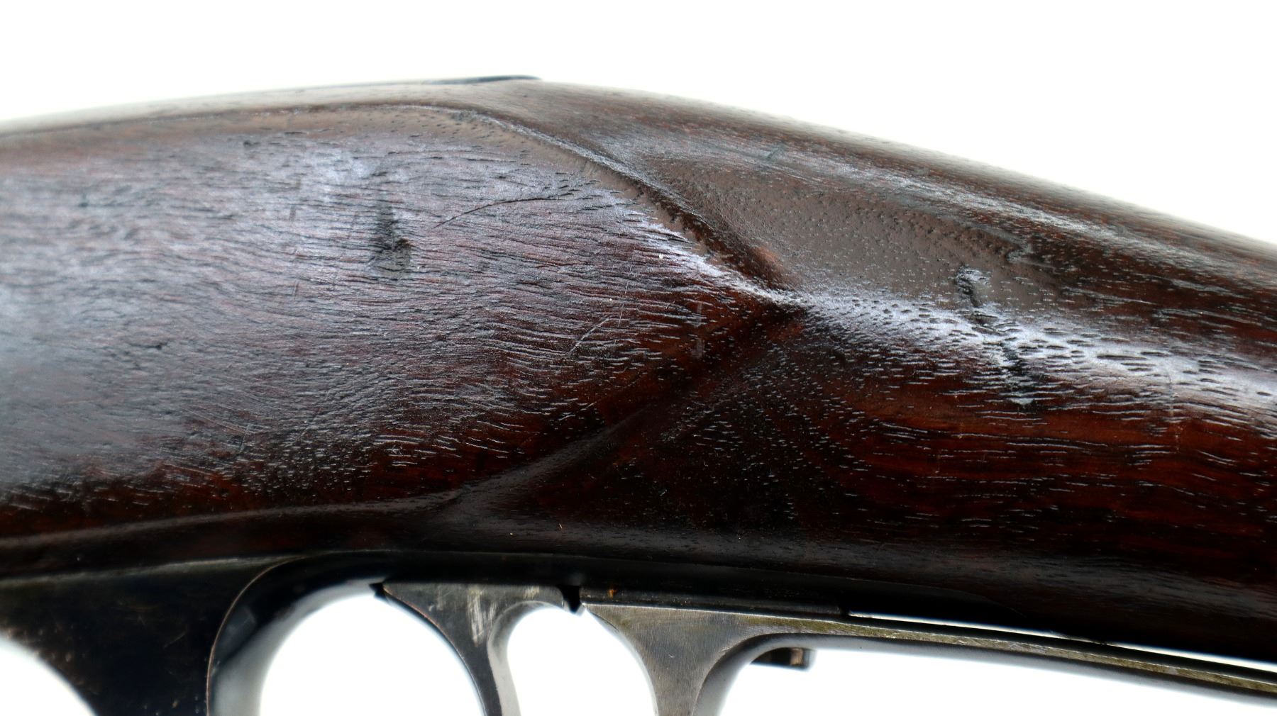 Wear: Metal finish shows a few light rust speckles, scratches, handling marks and wear. Stocks show marks, scratches and wear.