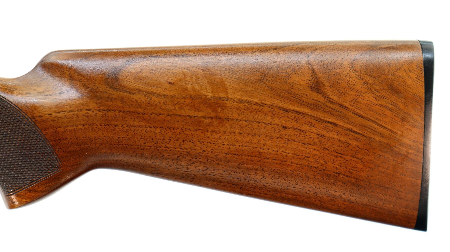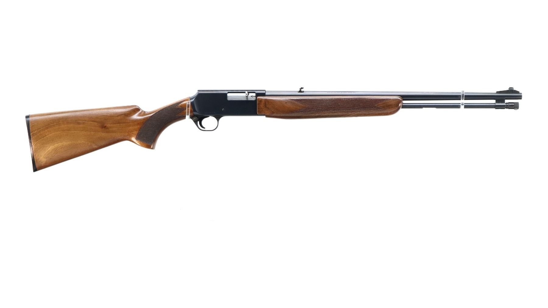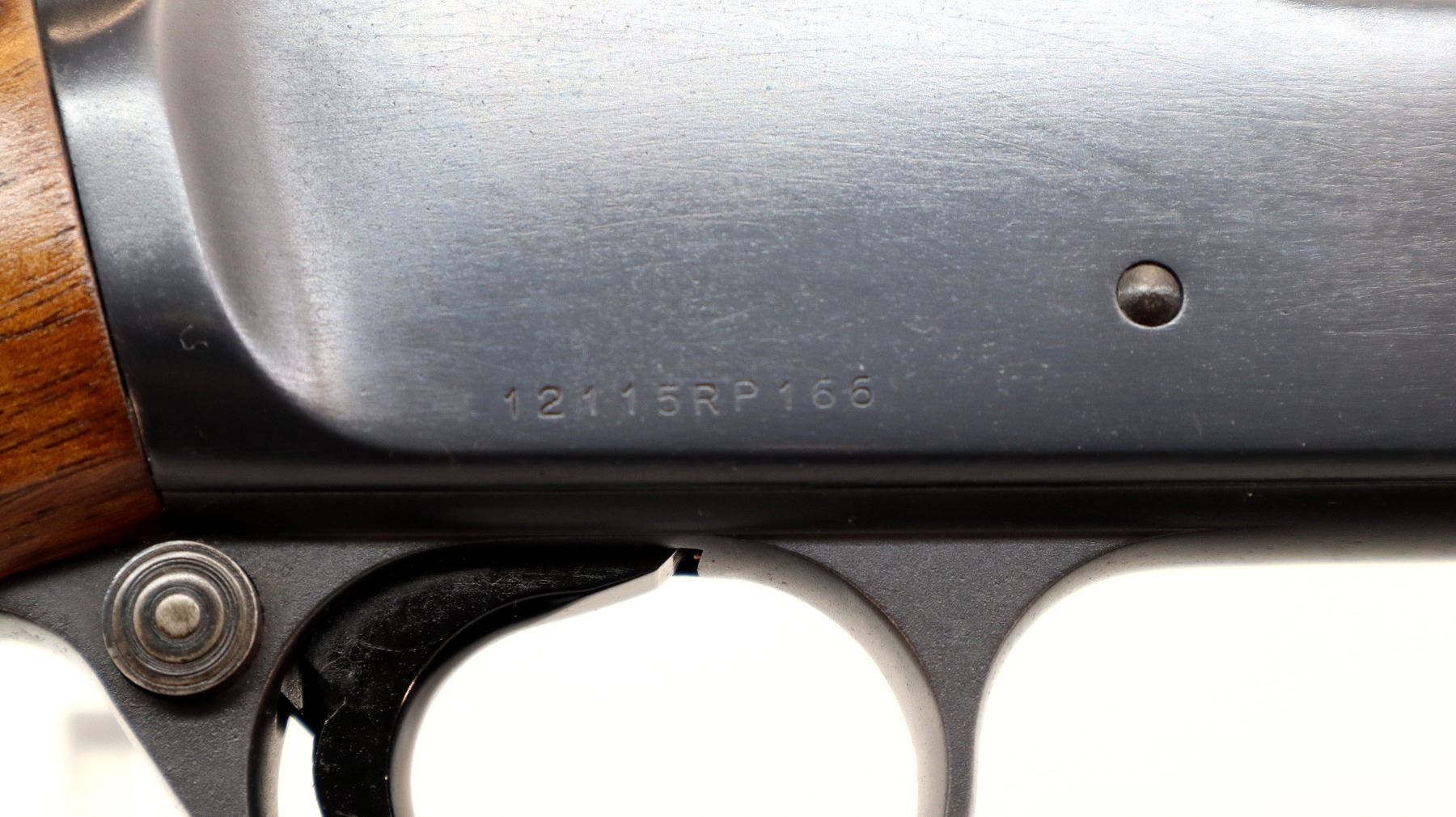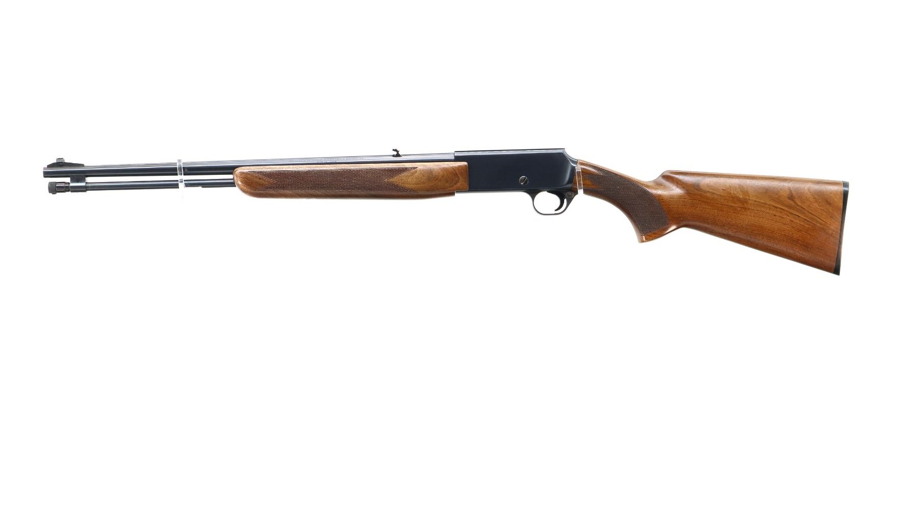 Main Description: Blade front sight, adjustable folding u notched rear sight, polish blued finish, grooved receiver and cocking handle. Two piece satin finish wood stocks, checkered forearm and pistol grip, Browning logo black polymer butt plate, full length magtube.