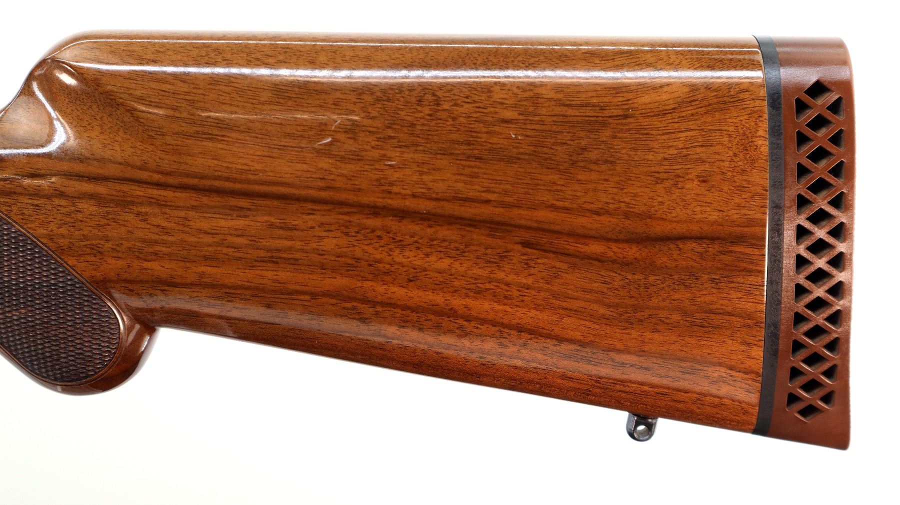 Main Description: Silver bead, polish blued finish, vent rib, engraved receiver. Two piece gloss finish wood stocks, finger grooved checkered forearm, pistol grip, brown vented rubber recoil pad, gold trigger, swivel studs.