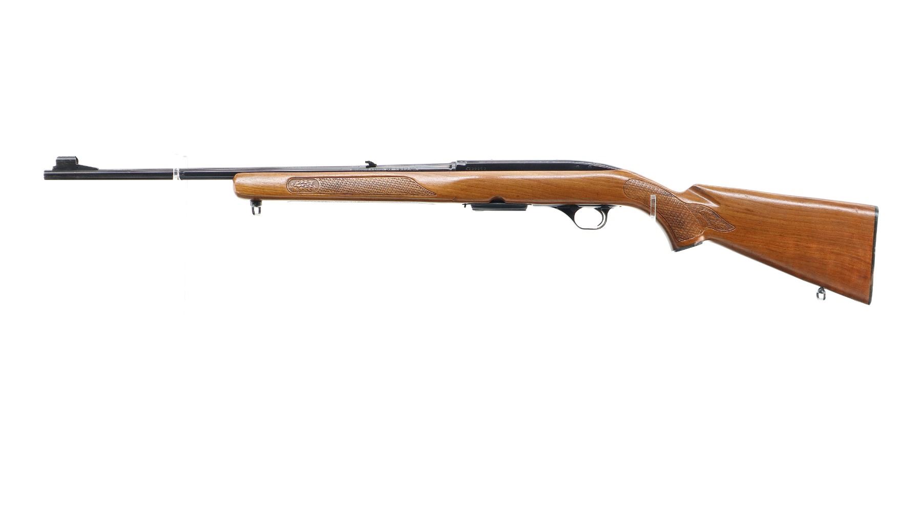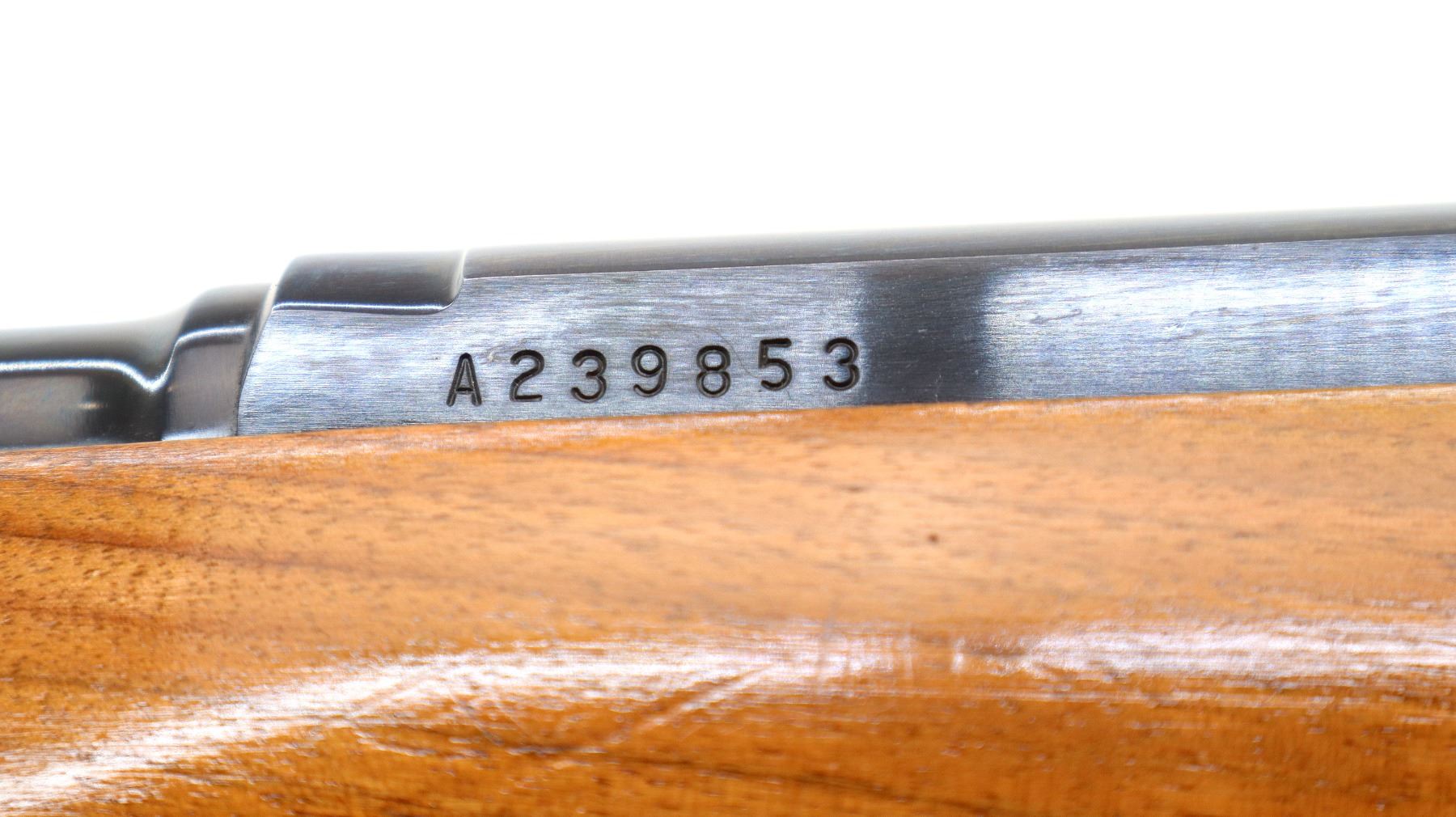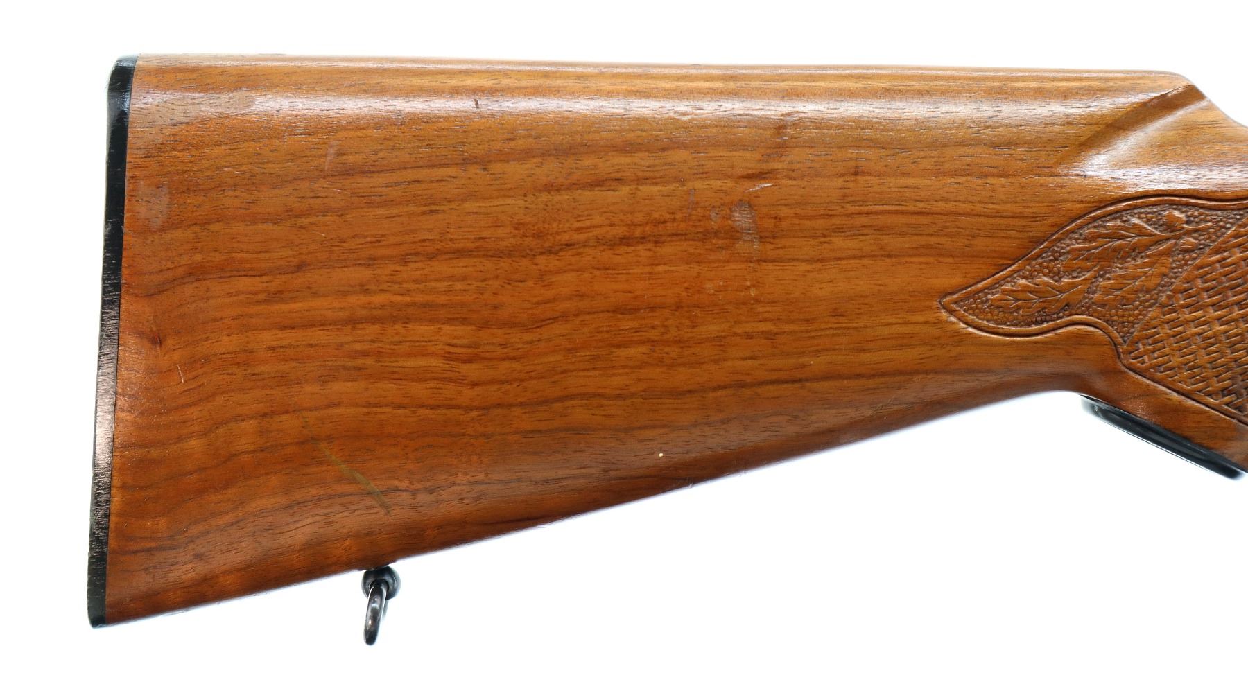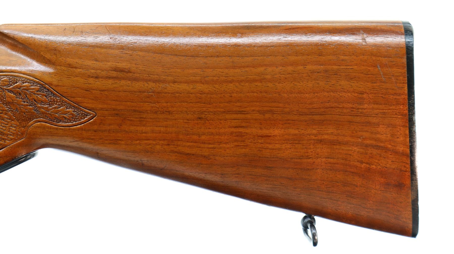 Main Description: Manufactured 1971. Blade front sight with hood and ramp, adjustable folding u notched rear sight, blued finish, receiver drilled and tapped with plug screws installed. One piece wood stock, Basketweave checkered forearm and pistol grip with oak leaves, checkered black polymer butt plate, steel grip cap, sling swivels.