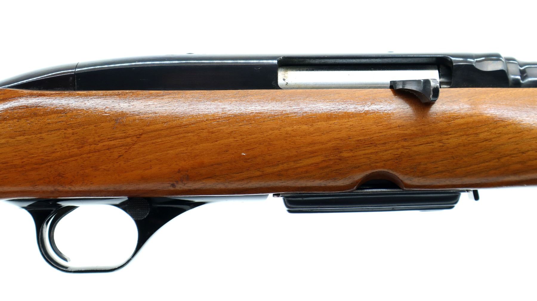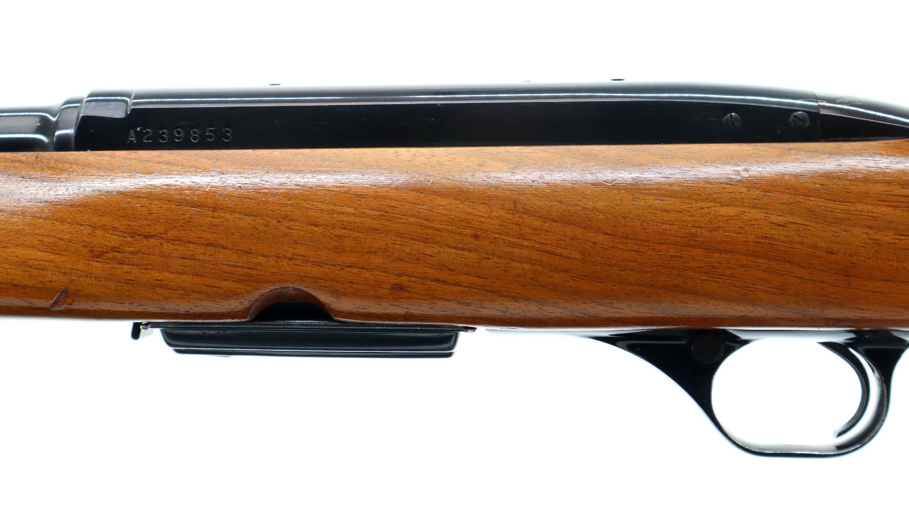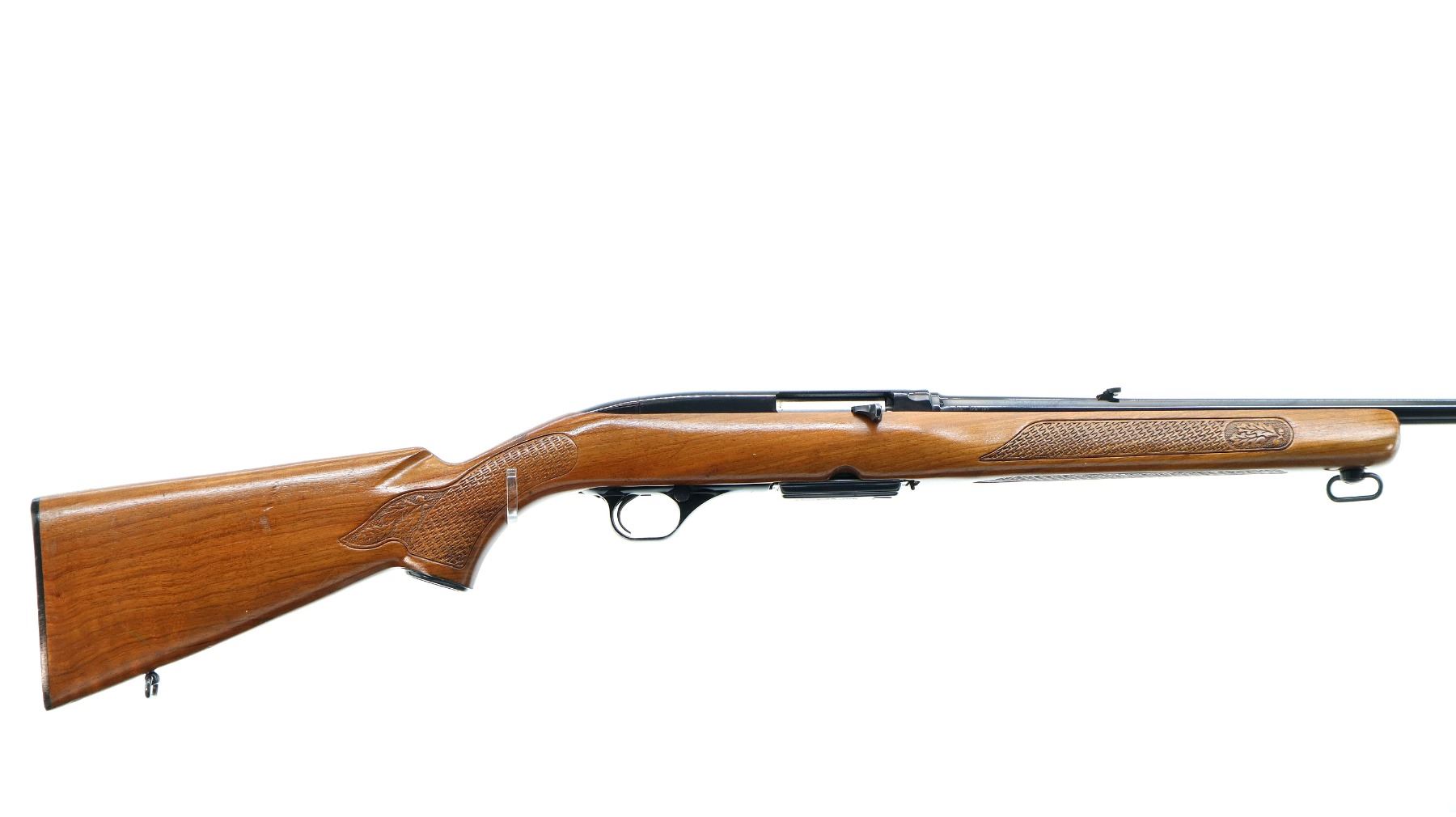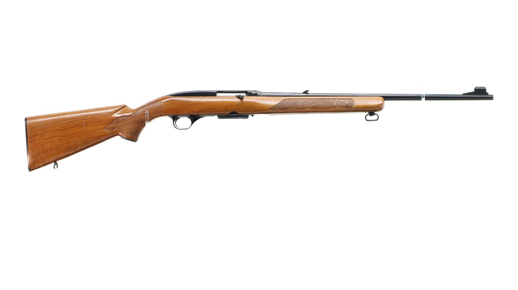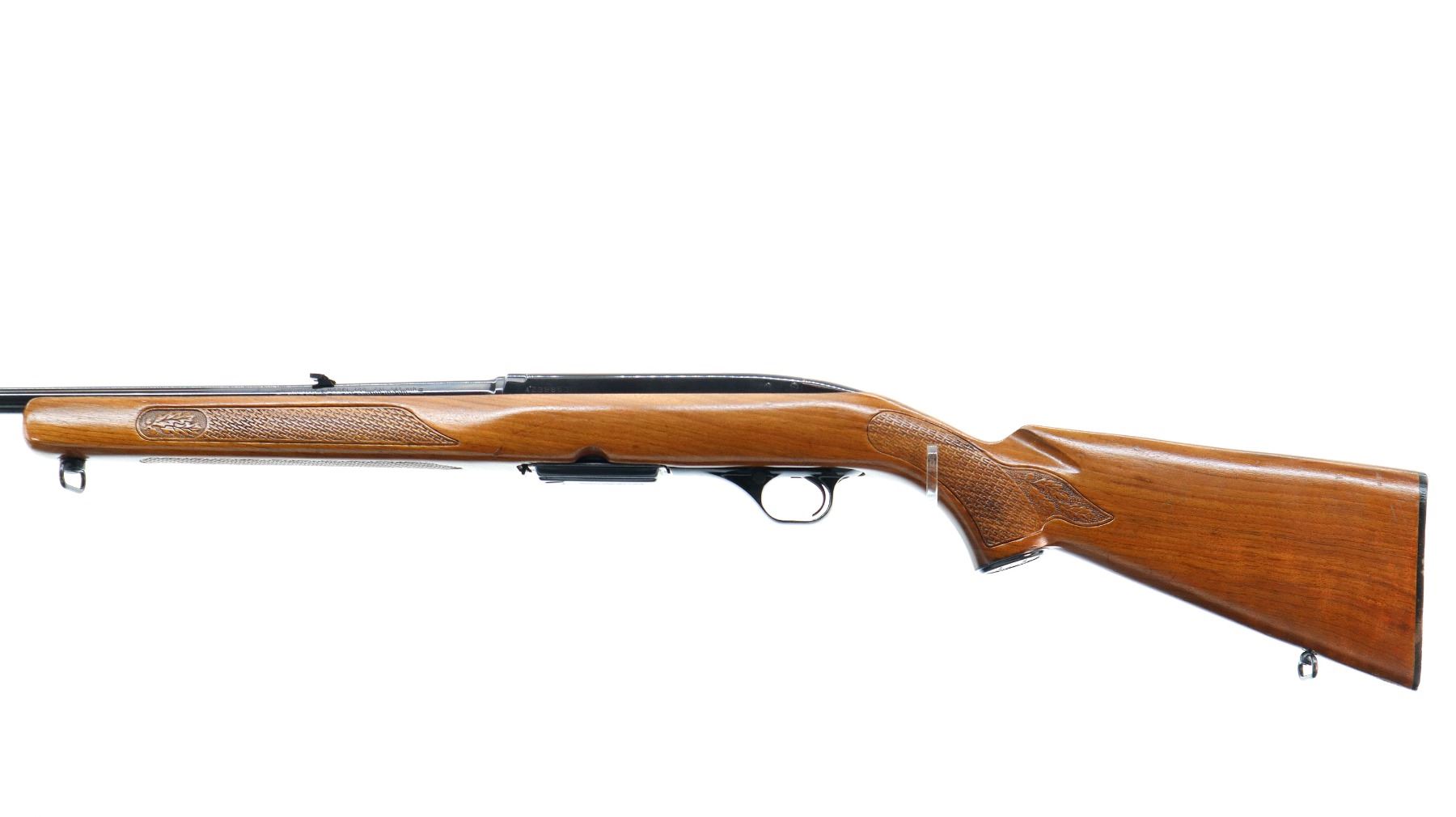Main Description: Manufactured 1971. Blade front sight with hood and ramp, adjustable folding u notched rear sight, blued finish, receiver drilled and tapped with plug screws installed. One piece wood stock, Basketweave checkered forearm and pistol grip with oak leaves, checkered black polymer butt plate, steel grip cap, sling swivels.