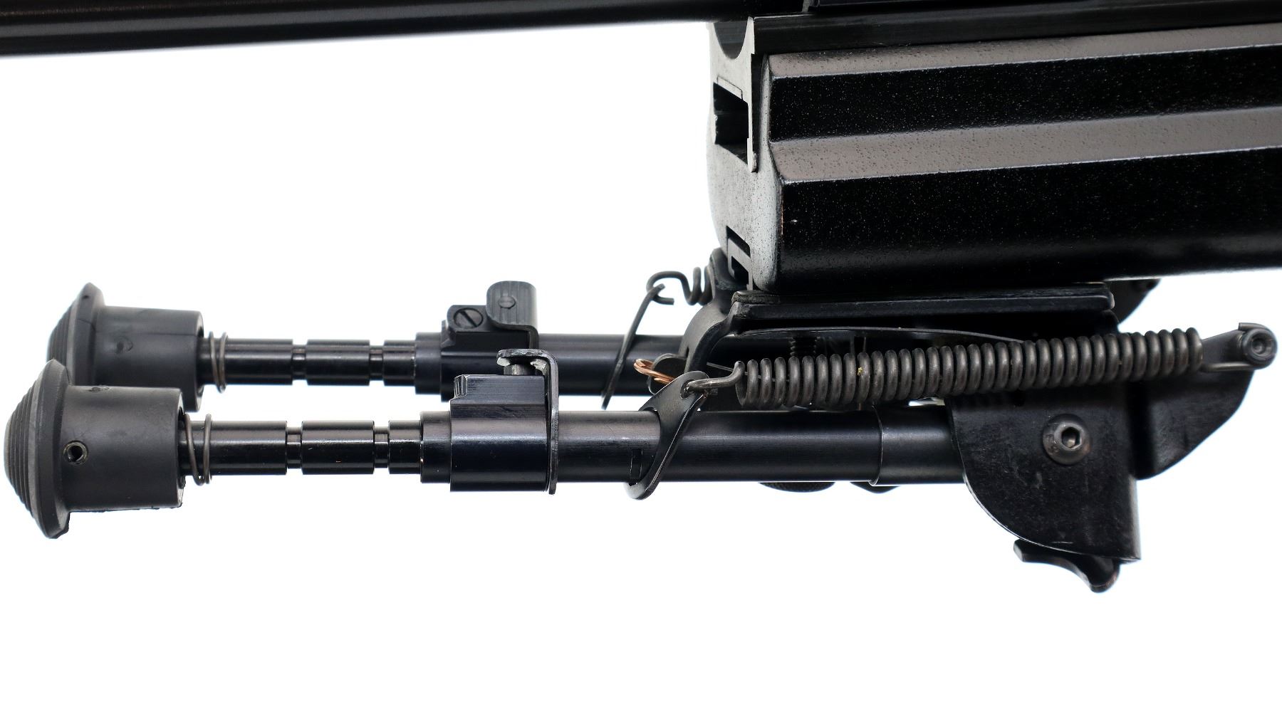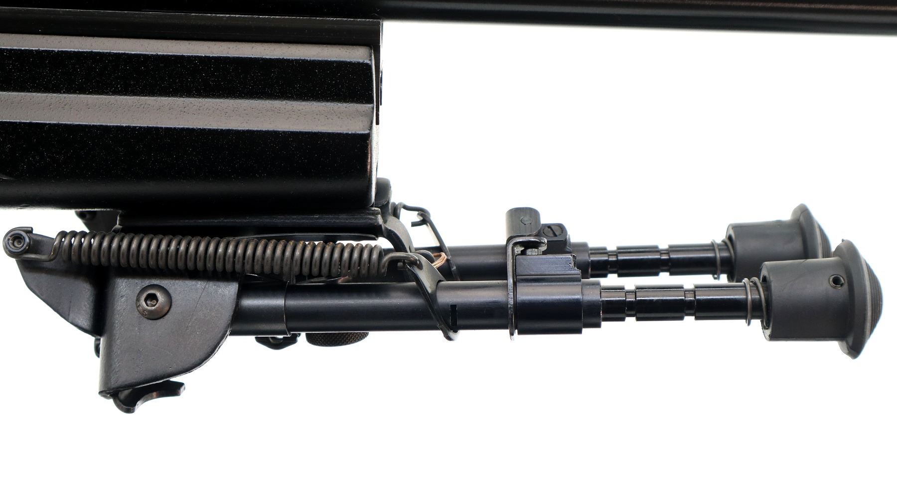 Main Description: No sights, blued finish, heavy barrel threaded at muzzle with CTS .30 Cal Muzzle brake installed, receiver has integral scope base with clamp on base and 34mm rings installed, black polymer bolt knob. Two piece black fiberglass target stock, wide forearm, thumb rest pistol grip, adjustable comb and black rubber recoil pad, hooked butt, extended mag catch, adjustable trigger, rail under forearm with Harris SBRM adjustable folding pivoting bipod installed.