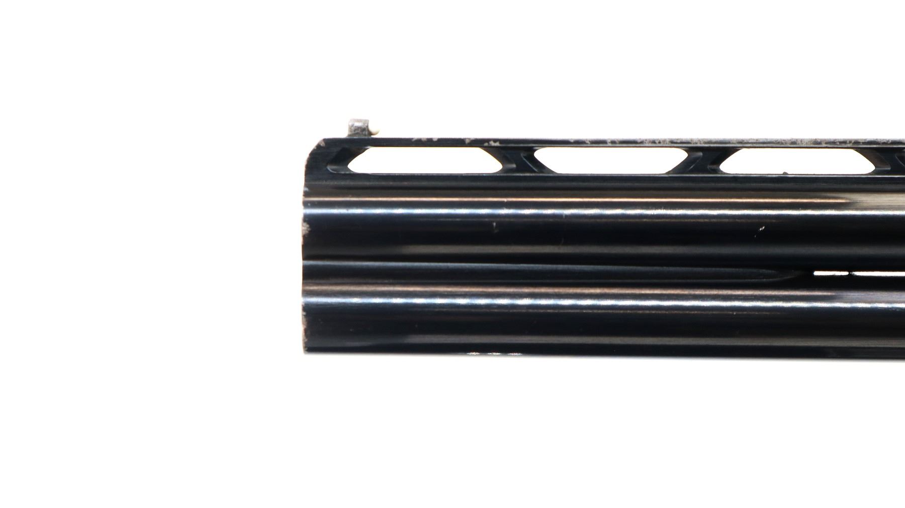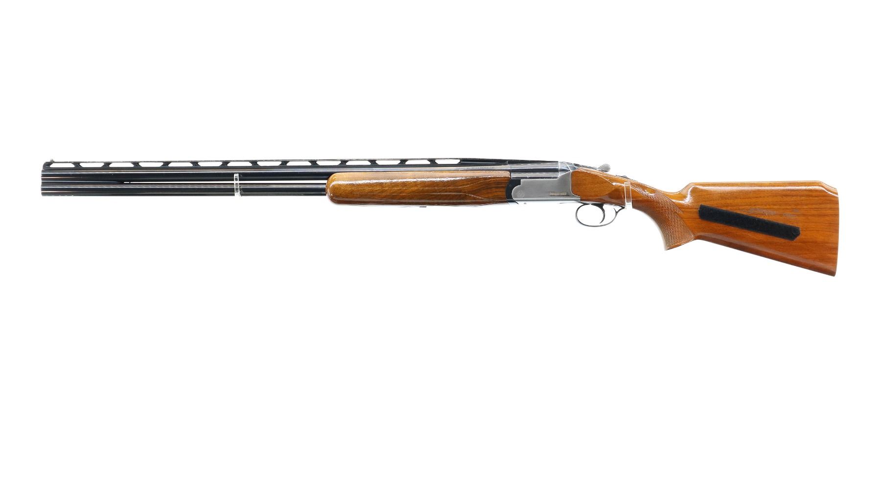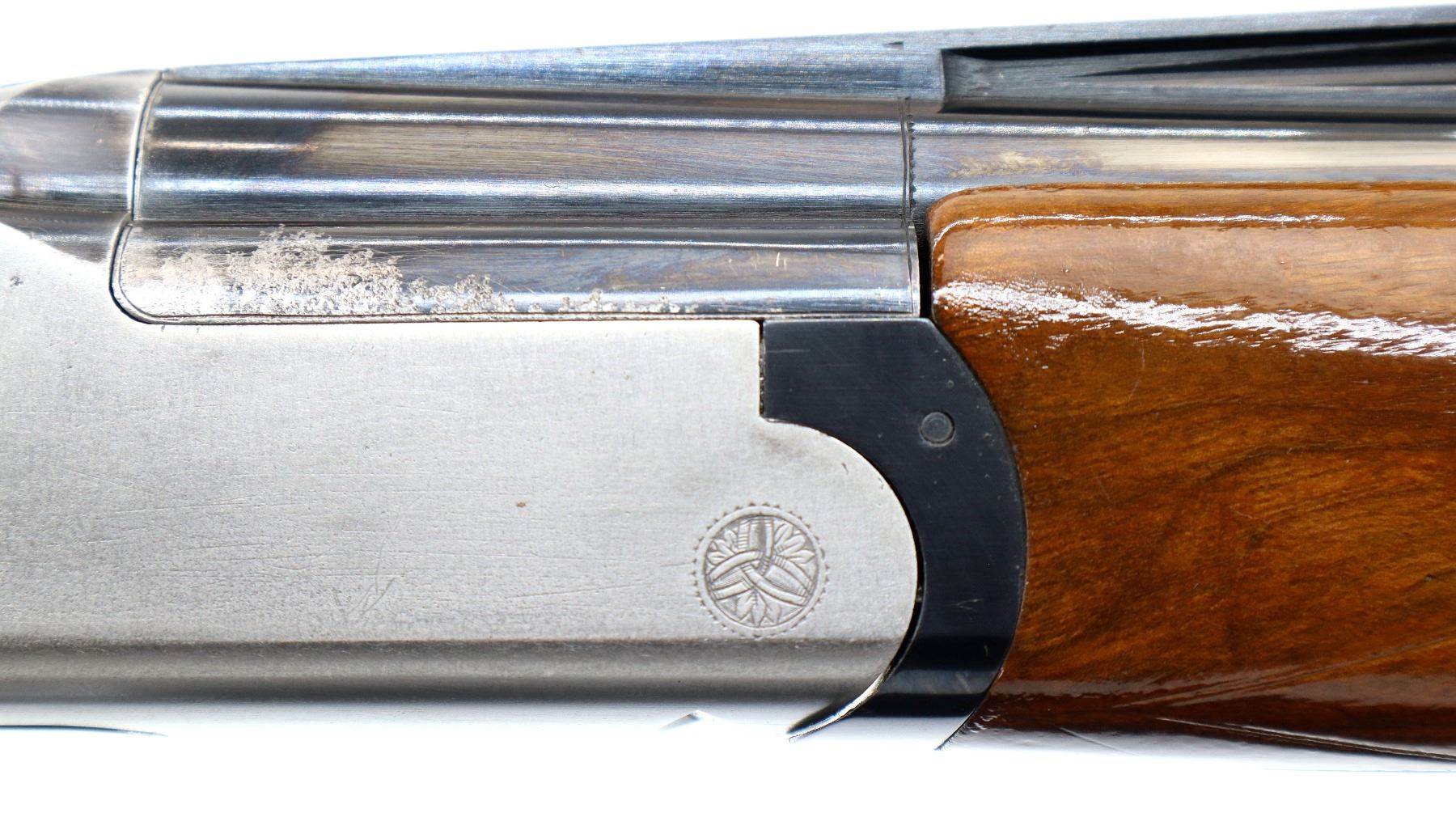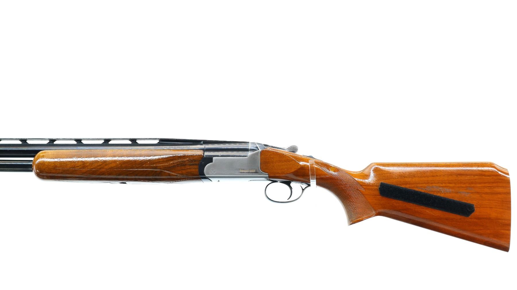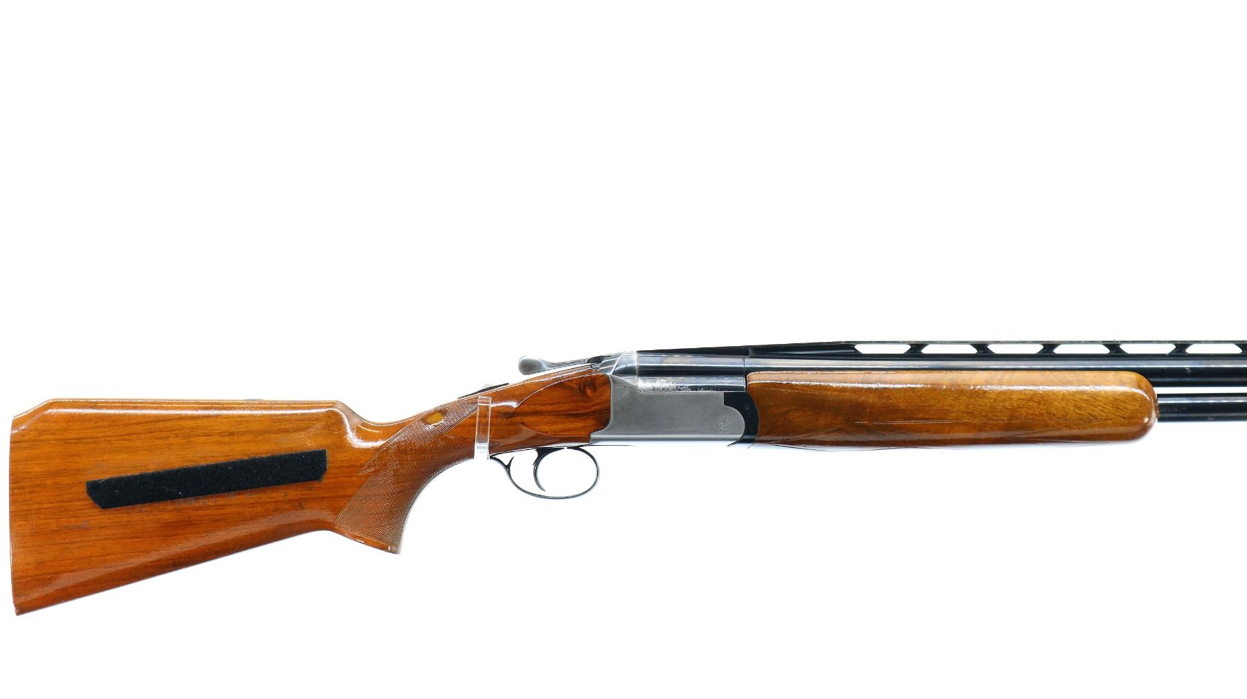 Main Description: White front and silver mid rib beads, polish blued finish, raised vent rib, receiver polished silver, only lower barrel fires requires repair, has ejectors and single trigger. Two piece wood stocks, checkered forearm and pistol grip appears to have been repaired, Velcro on both sides of stock, missing butt plate and screws, 13.5" LOP, includes trigger mech case.