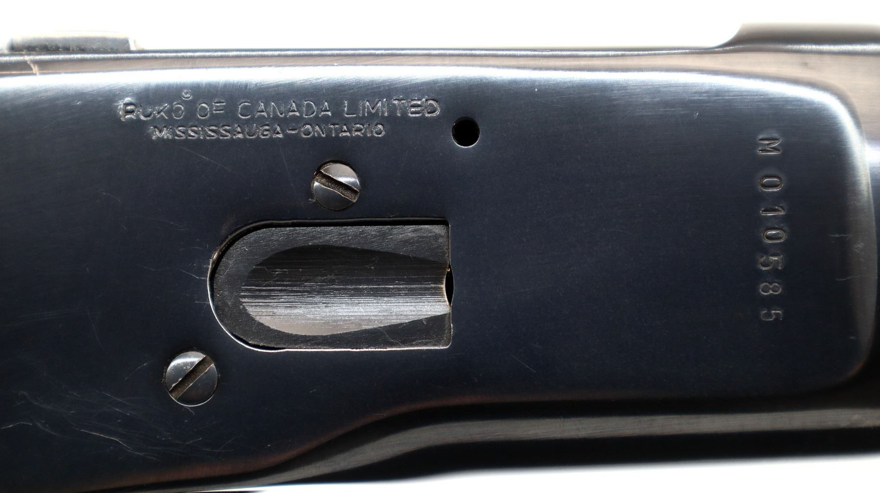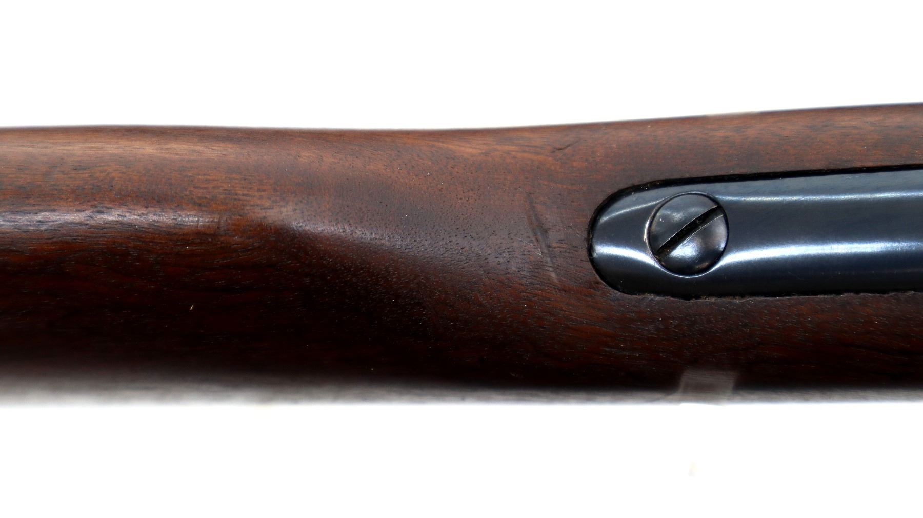 Main Description: Blade front sight with ramp, adjustable u notched rear sight, polish blued finish, grooved spur hammer, left side of receiver has a Puma Medallion and Saddle ring with stud. Two piece wood stocks, forearm has a small chip on left side, straight grip, smooth curved steel butt plate, full length magtube.