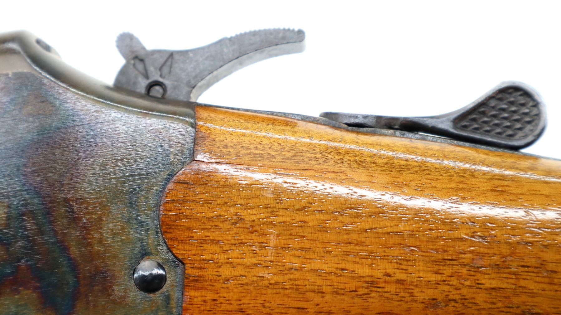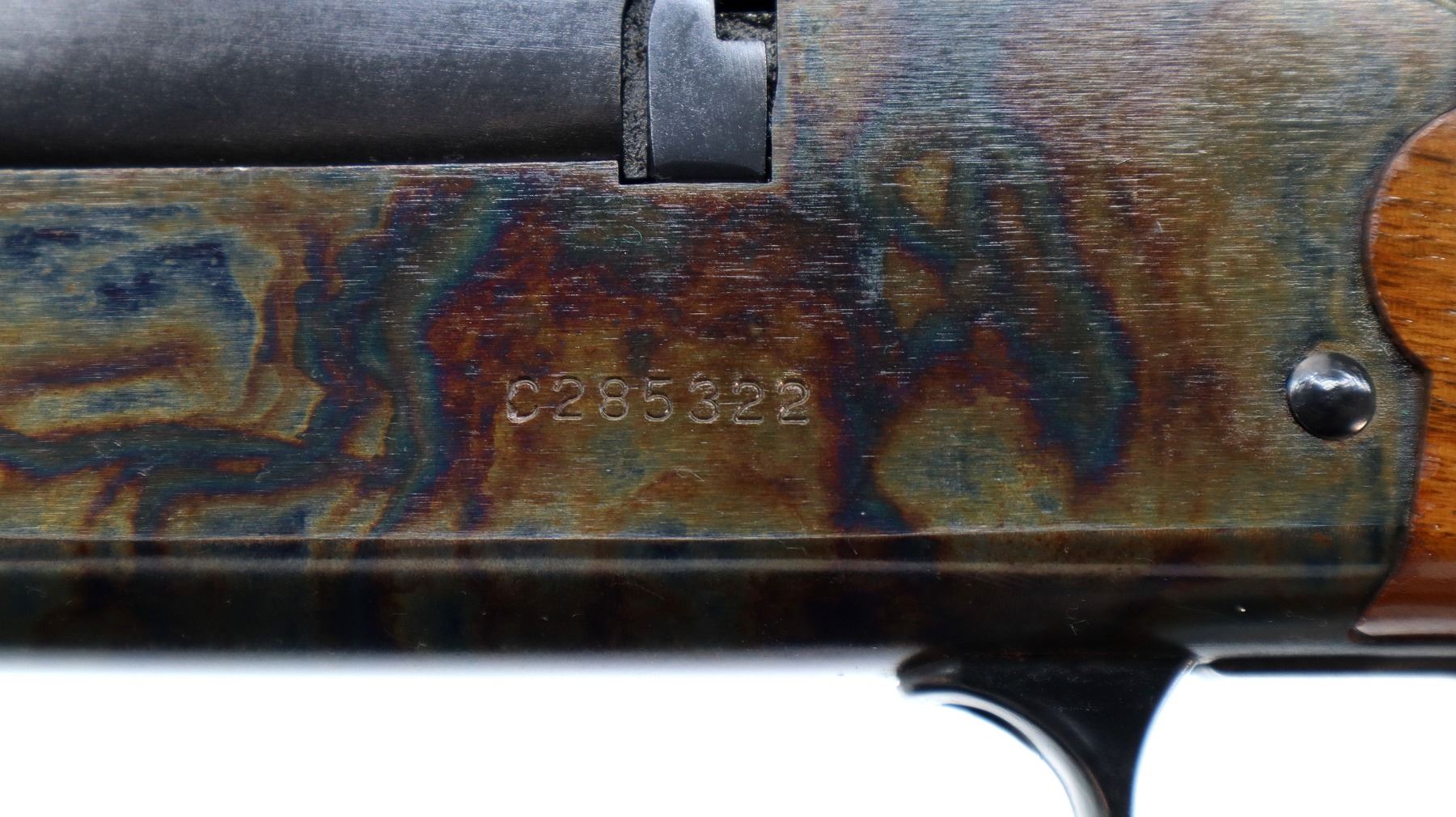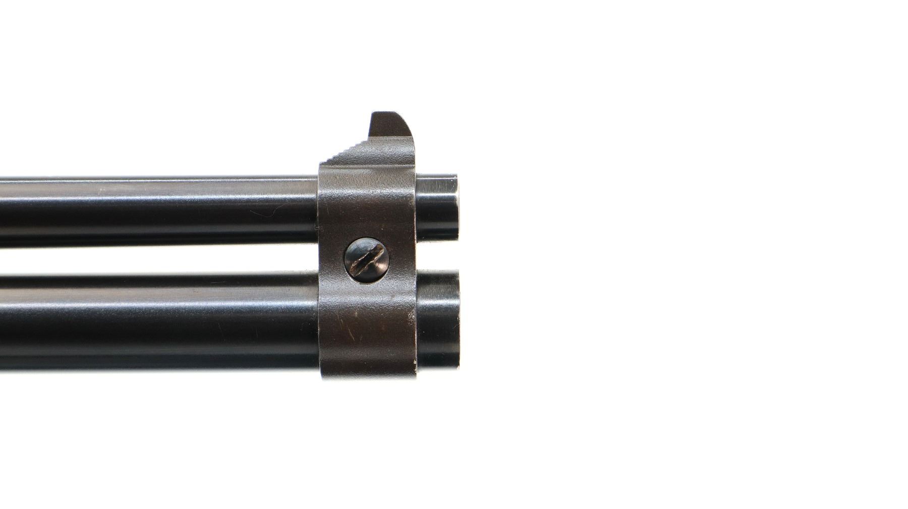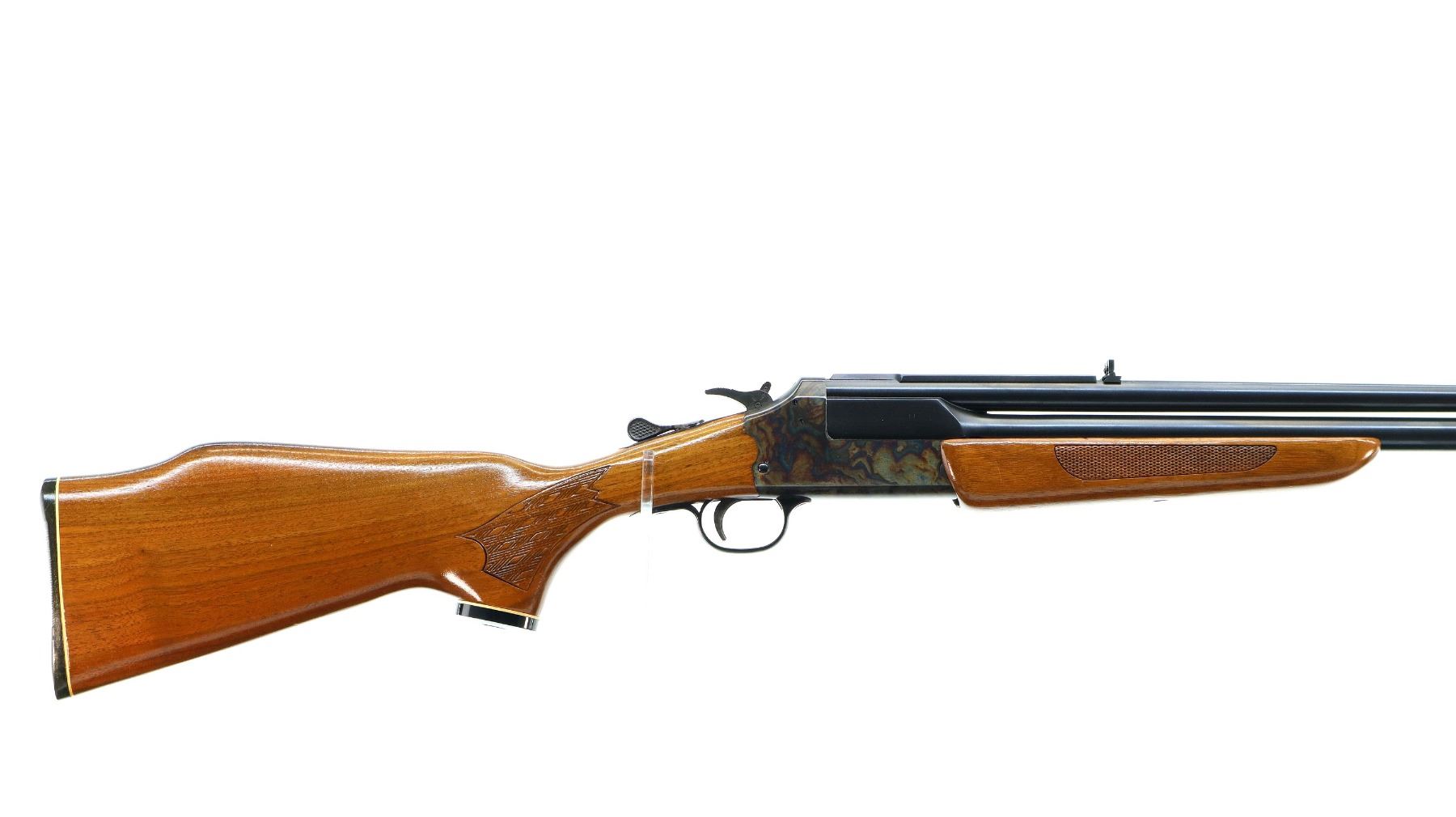 Main Description: Blade front sight with ramp, adjustable folding u notched rear sight, blued barrels with rib drilled and tapped with plug screws installed, colour case hardened receiver, grooved spur hammer with barrel selector. Two piece wood stocks, cracked behind receiver both sides, checkered forearm and pistol grip, raised comb, grooved black polymer butt plate, grip cap,