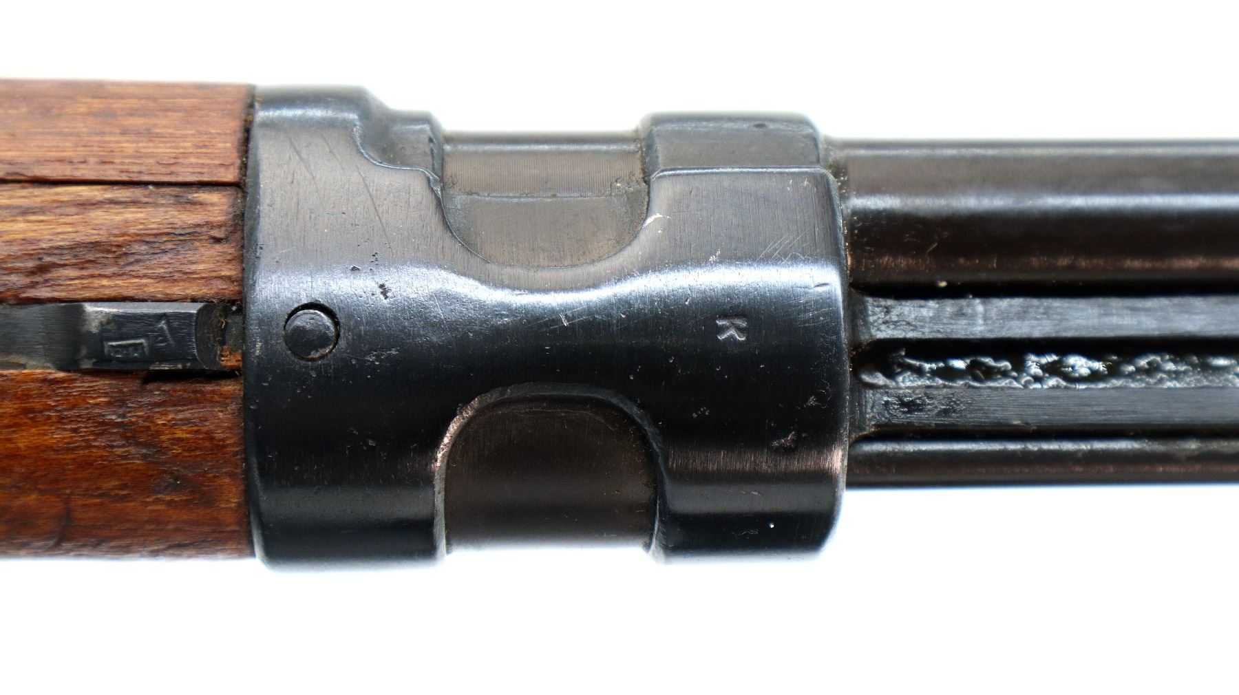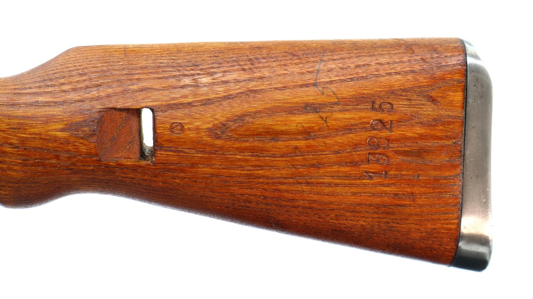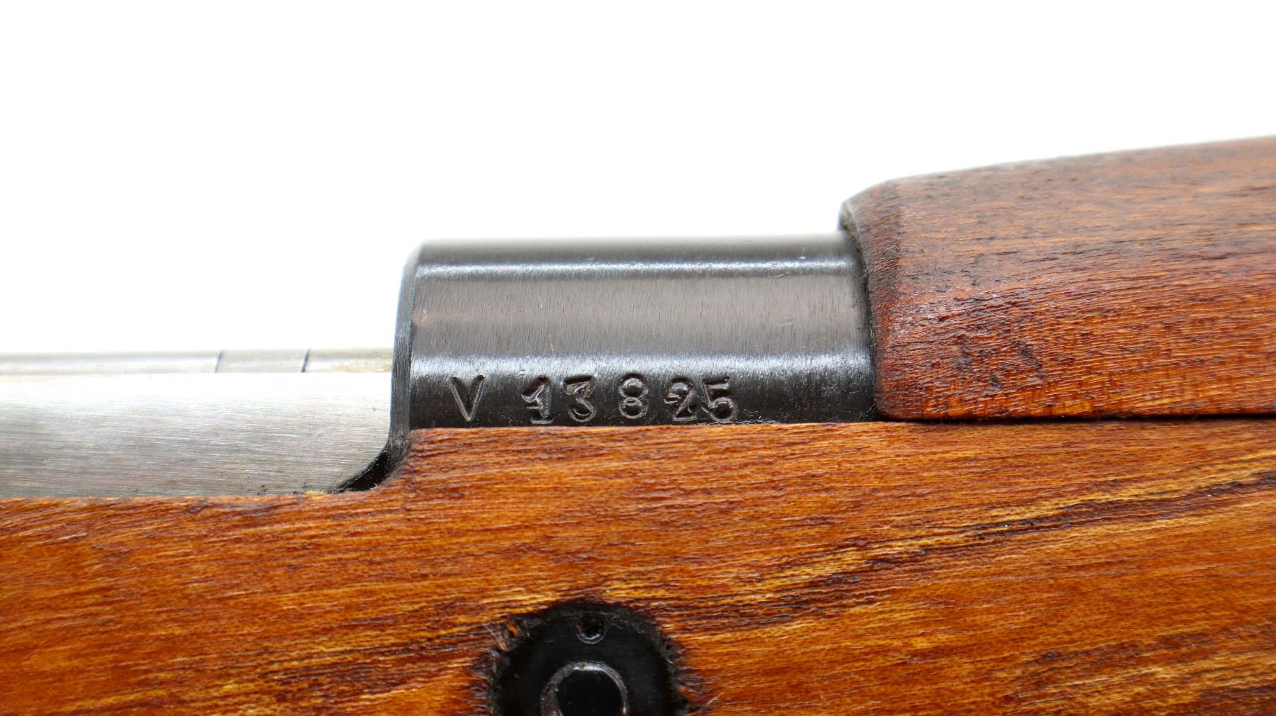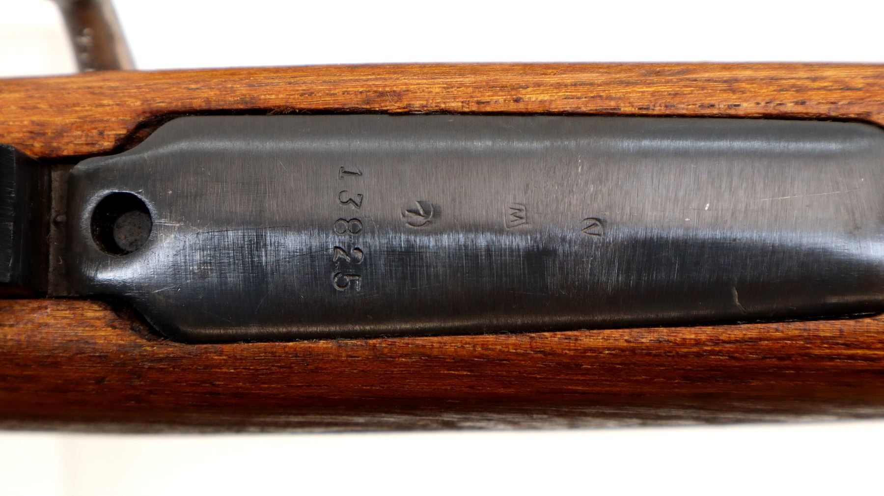 Main Description: Visible numbers match. Barley corn front sight with hood and ramp, adjustable u notched rear sight, blued finish, unmarked receiver ring, BO stands for Bez Oznake meaning unmarked or without markings. Silver bolt with turned down handle and flat bottomed knob. Two piece full military wood stocks, pistol grip, smooth cupped steel butt plate, rear slot front swivel, cleaning rod, bayonet lug.