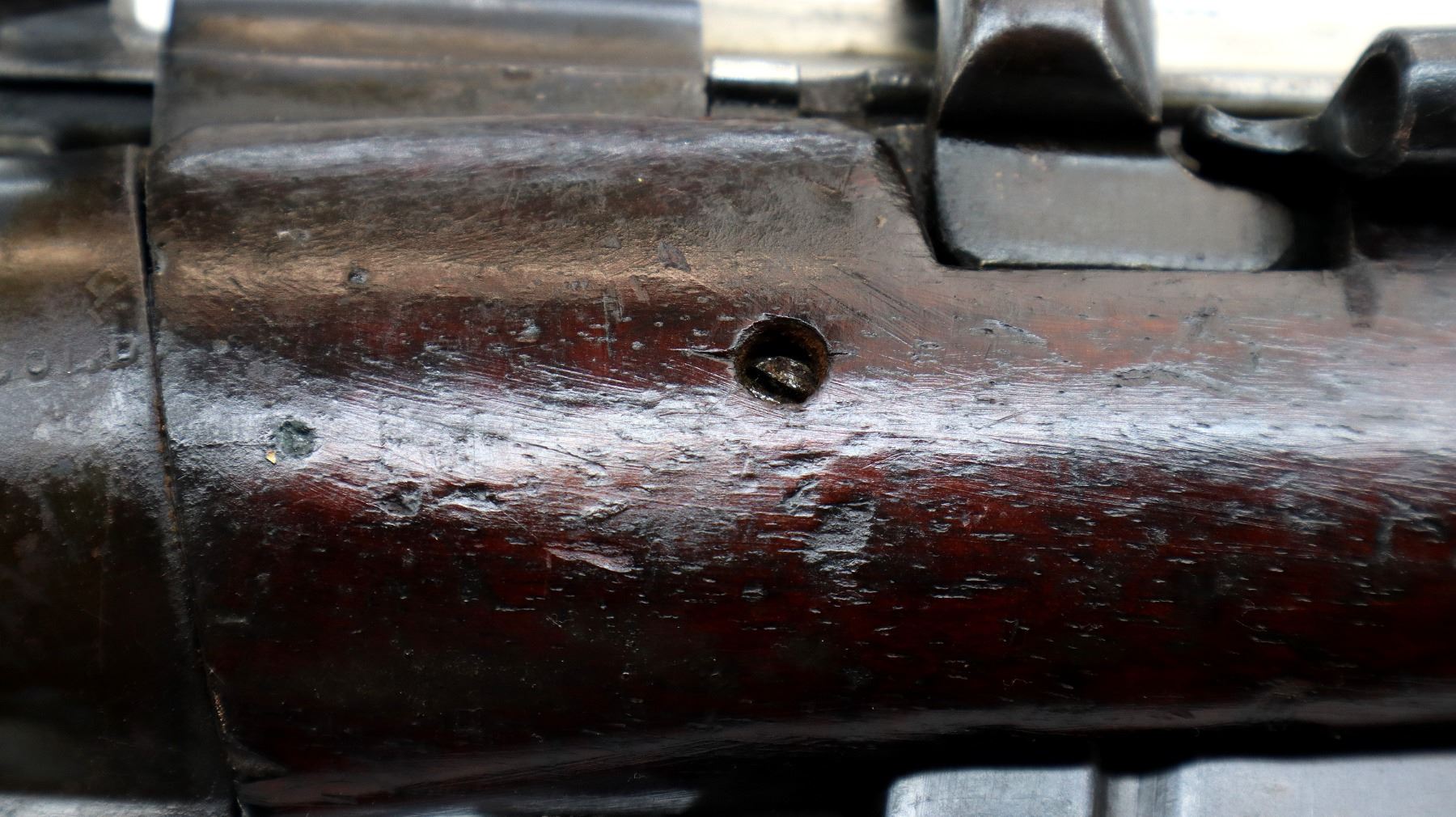 Wear: Metal finish shows a few light rust speckles, scratches, handling marks and wear. Stocks show some marks, scratches and wear.