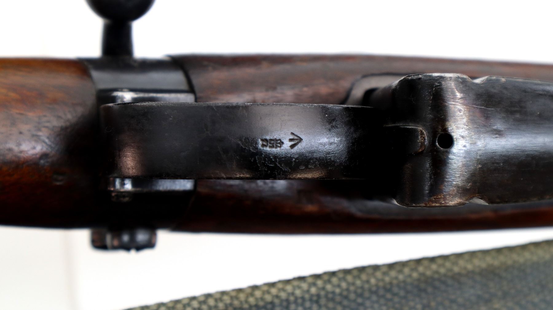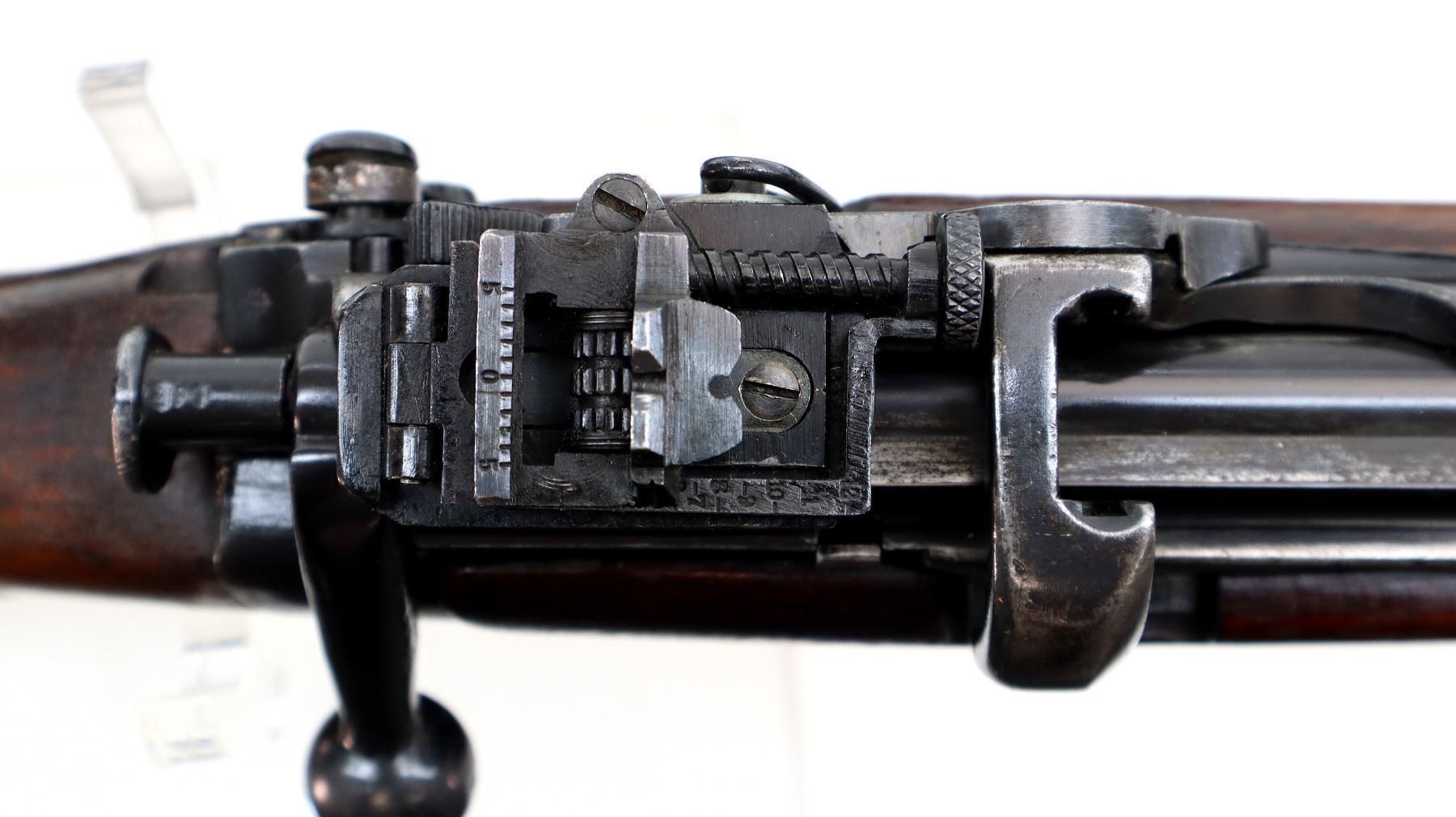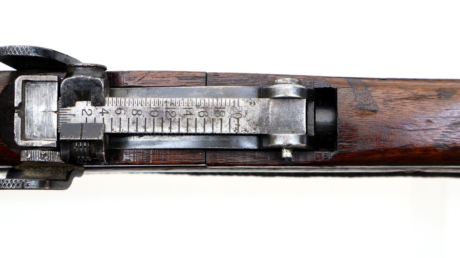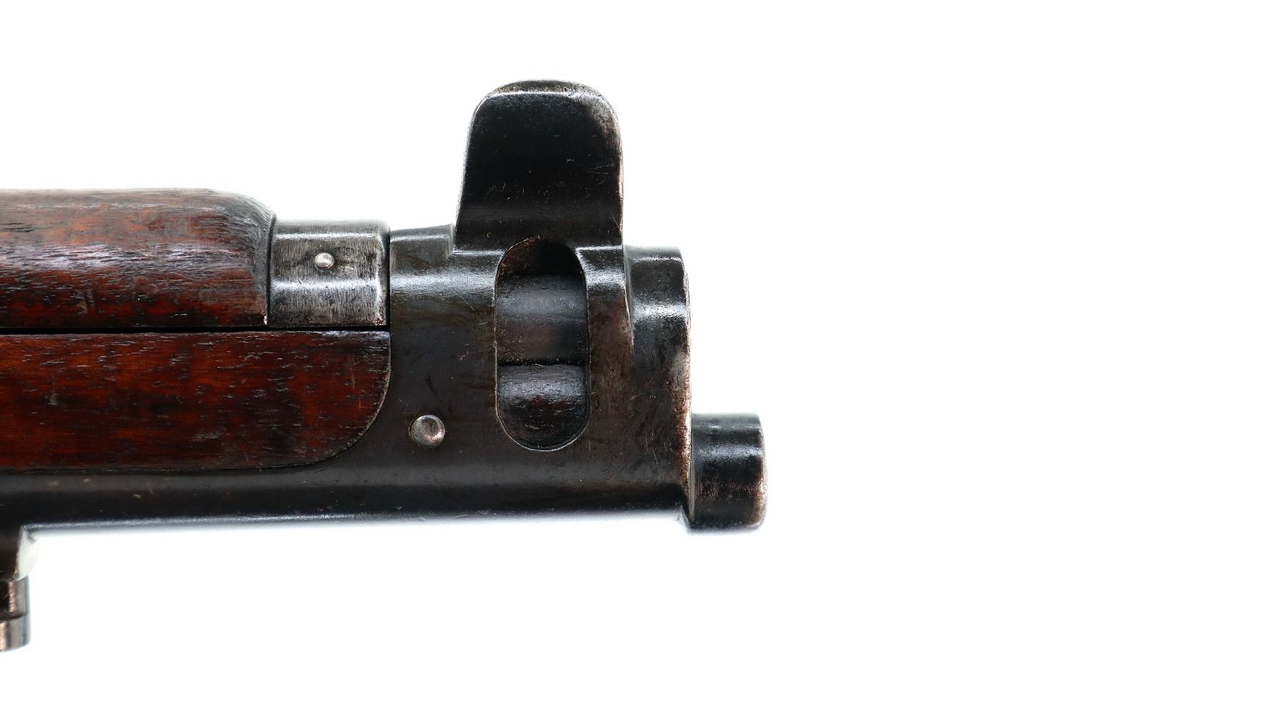 Main Description: Originally manufactured by Enfield 1909, rebuilt by BSA. Blade front sight with ears and ramp, adjustable u notched rear sight with ears, blued metal finish, receiver and butt stock have C-Broad arrows on them indicating Canadian Military issue, Receiver has a 10A target rear sight with C-Broad arrow 1910 Ross folding u notched rear sight with proper HWC in an oval, note mounting screw is incorrect. Magazine is a soldered in proper plate, left side marked .22. Four piece full military wood stocks, front handguard cracked and repaired, forearm retains volley sight plate, pistol grip, smooth brass butt plate with trap, unmarked brass stock disk, sling swivels with grey/blue P37 canvas web sling, stacking swivel, bayonet lug.