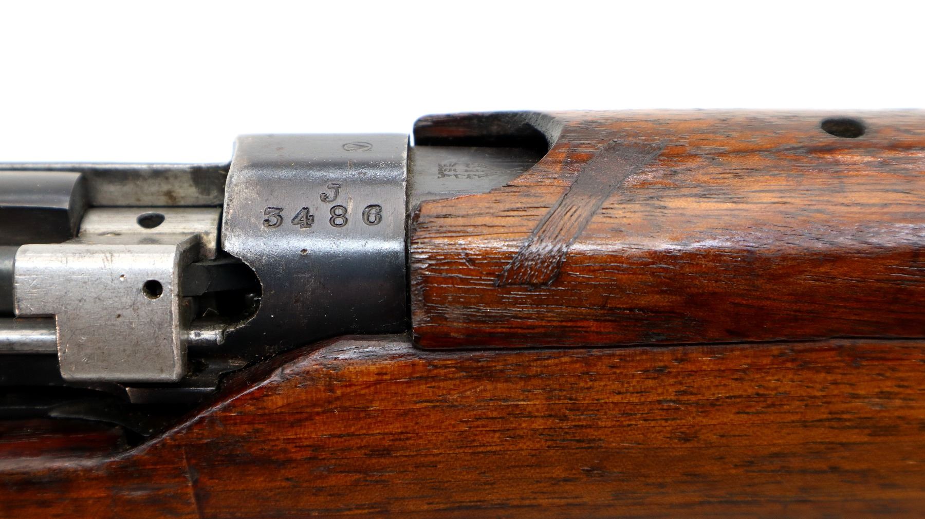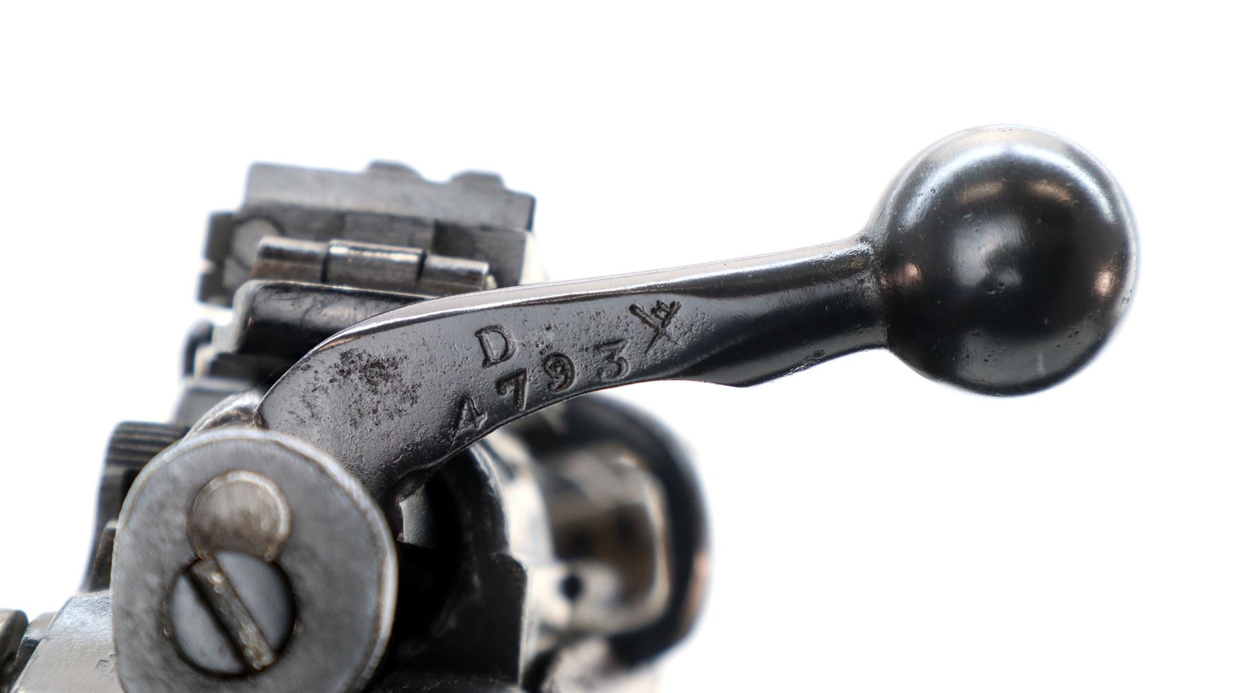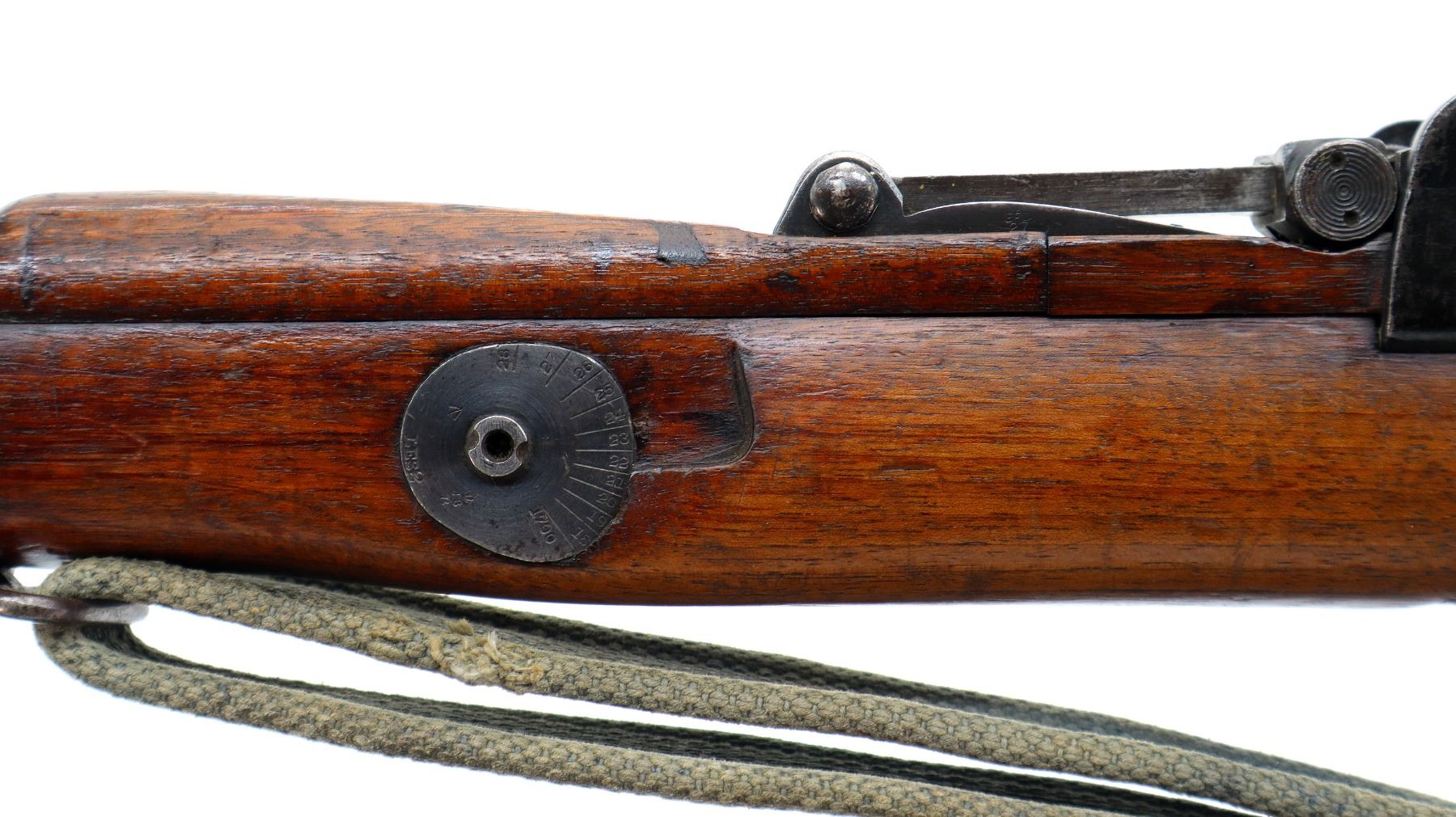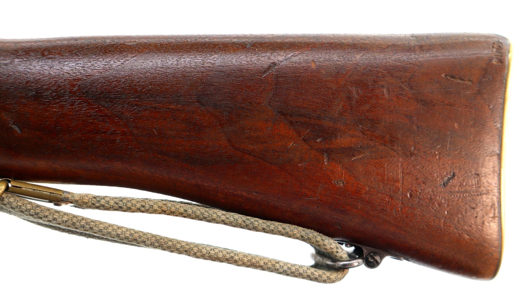 Main Description: Originally manufactured by Enfield 1909, rebuilt by BSA. Blade front sight with ears and ramp, adjustable u notched rear sight with ears, blued metal finish, receiver and butt stock have C-Broad arrows on them indicating Canadian Military issue, Receiver has a 10A target rear sight with C-Broad arrow 1910 Ross folding u notched rear sight with proper HWC in an oval, note mounting screw is incorrect. Magazine is a soldered in proper plate, left side marked .22. Four piece full military wood stocks, front handguard cracked and repaired, forearm retains volley sight plate, pistol grip, smooth brass butt plate with trap, unmarked brass stock disk, sling swivels with grey/blue P37 canvas web sling, stacking swivel, bayonet lug.