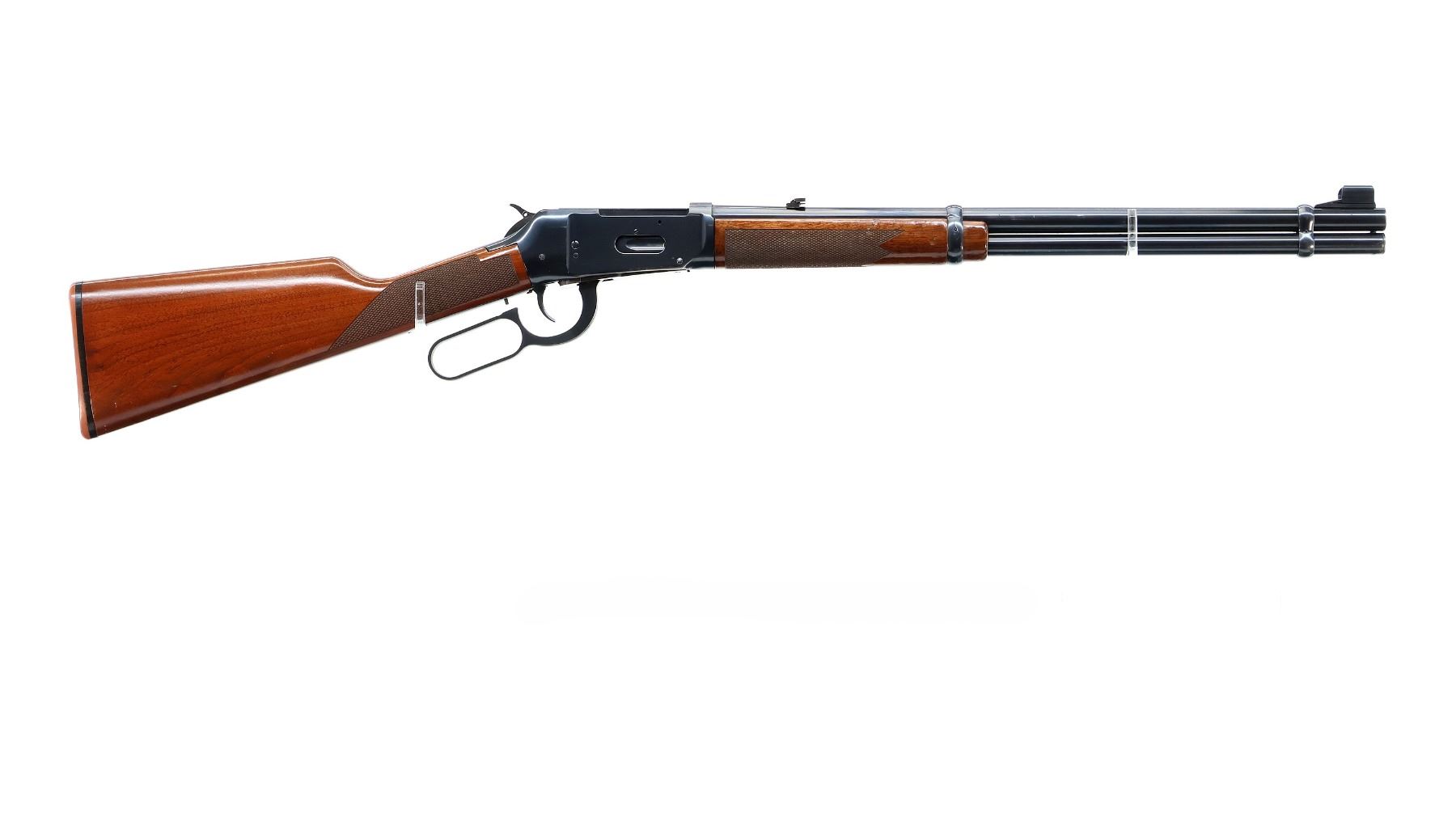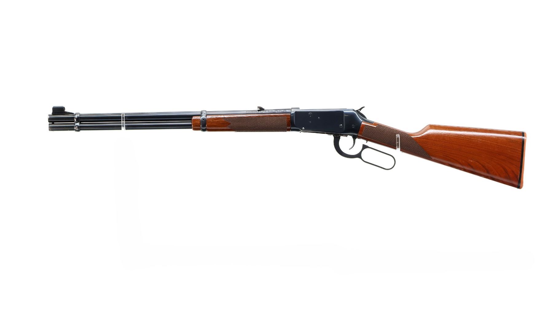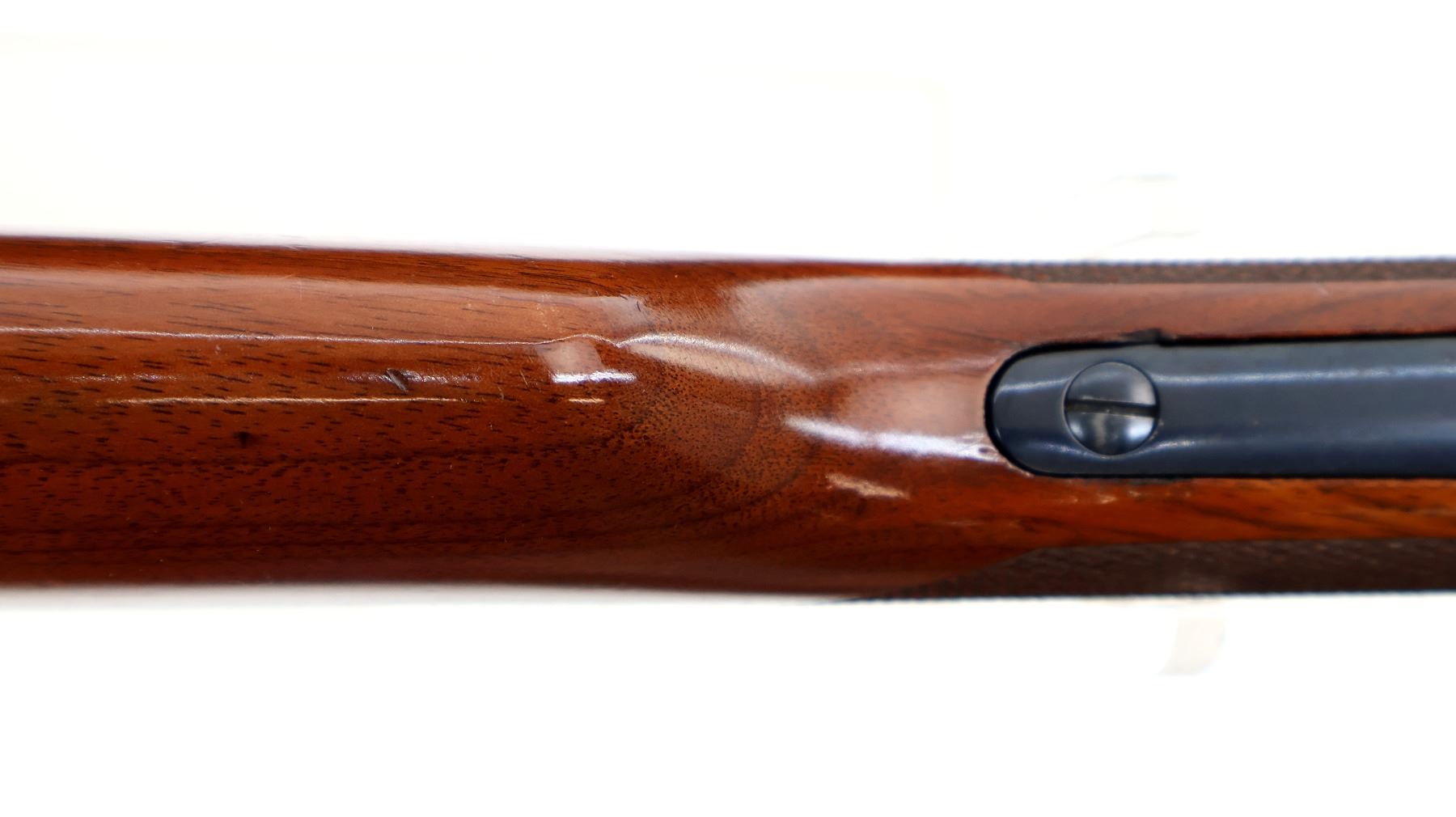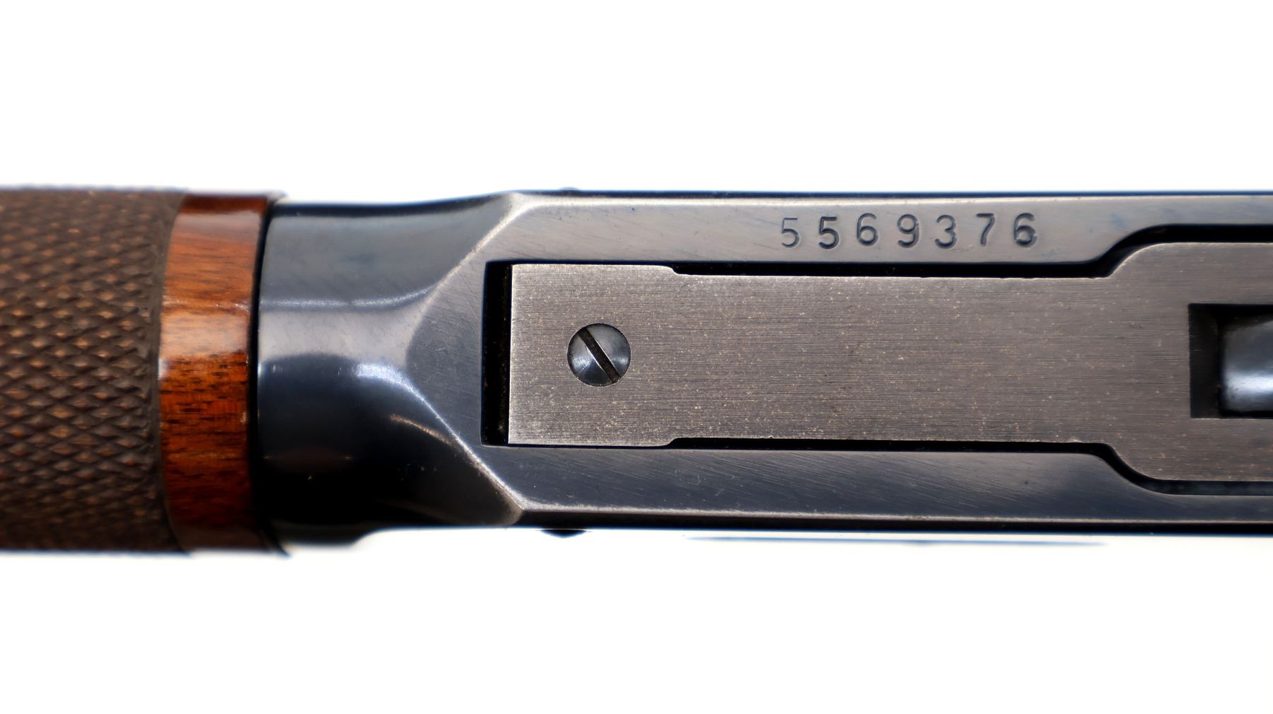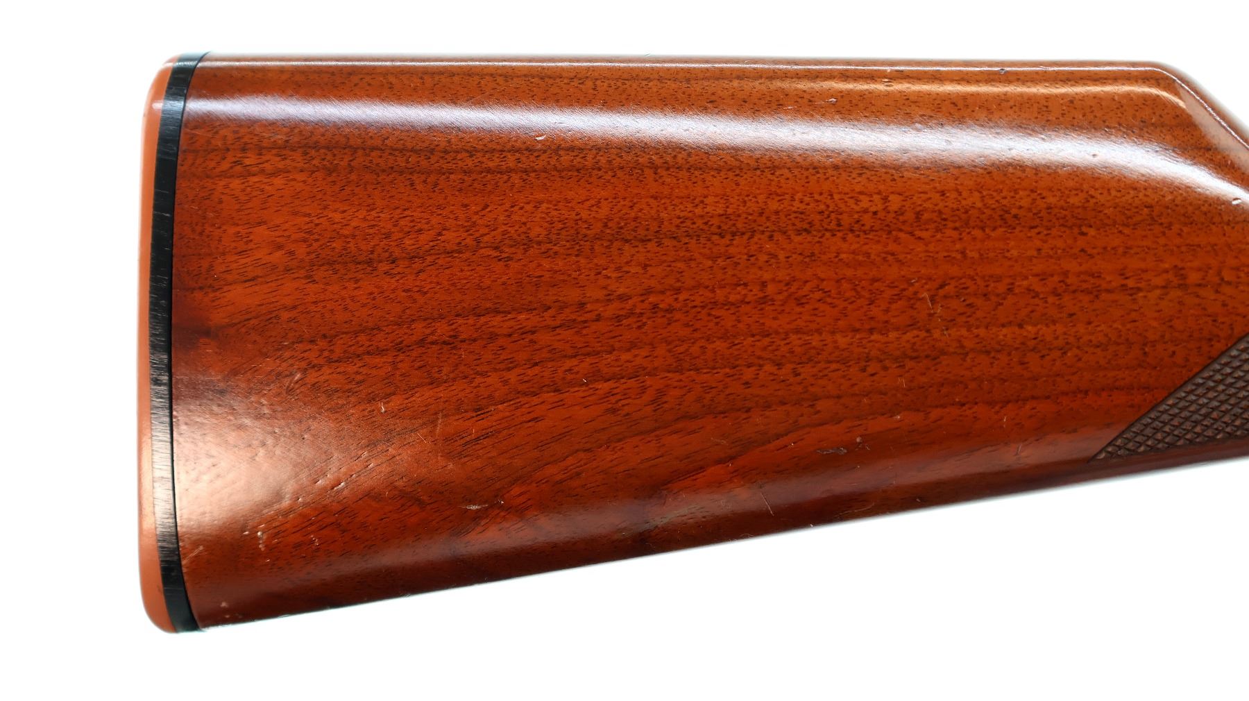 Main Description: Blade front sight with hood and ramp, adjustable folding u notched rear sight, polish blued finish, receiver drilled and tapped with no plug screws installed, grooved spur hammer. Two piece gloss finish wood stocks, checkered forearm and straight grip, red rubber recoil pad, full length magtube.