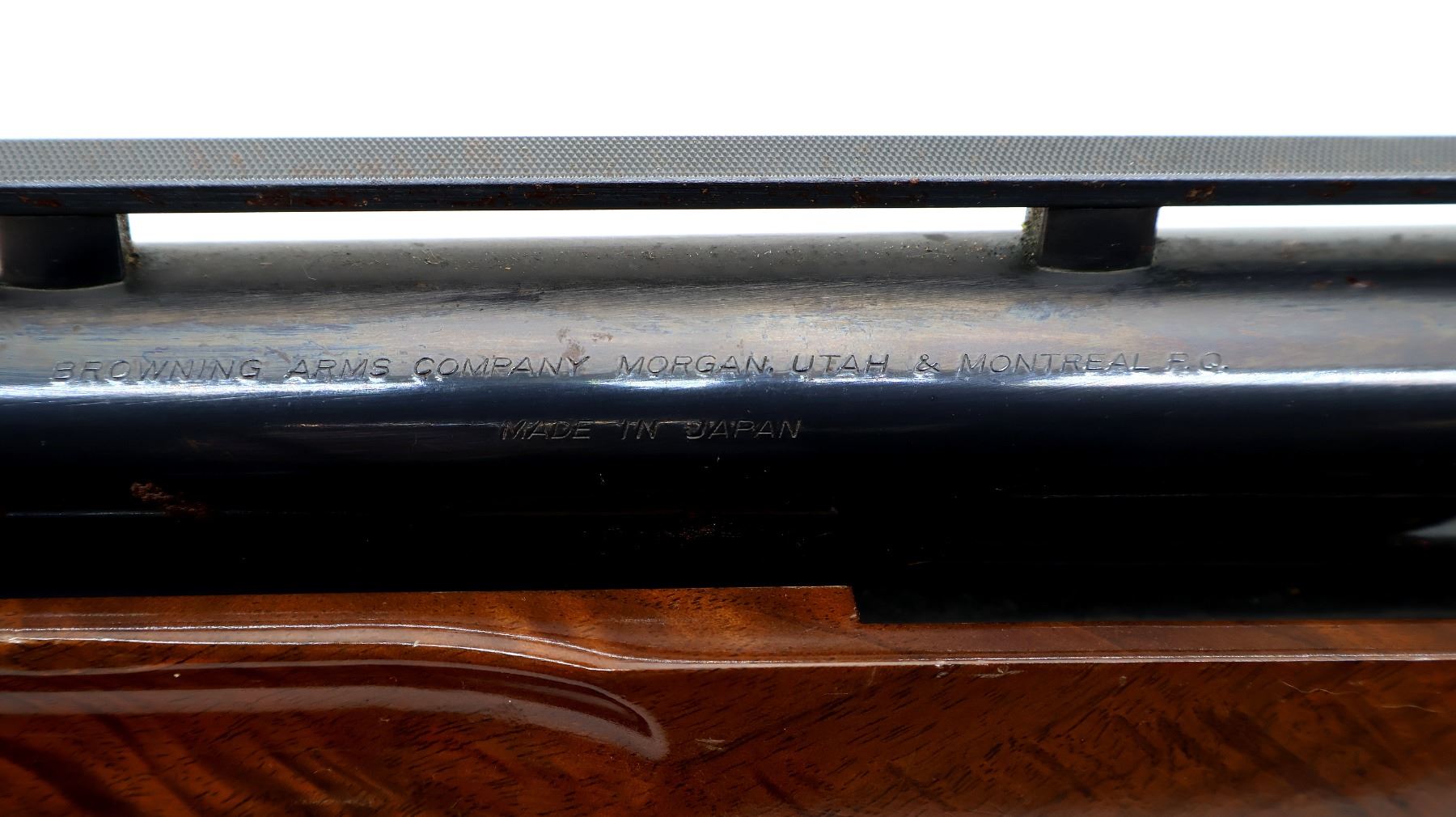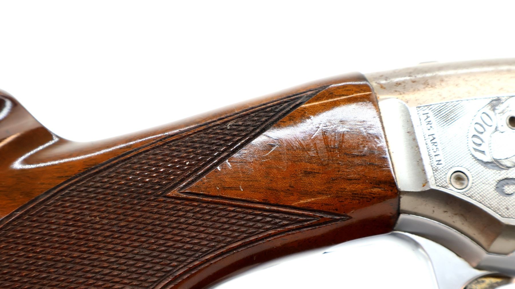 Wear: Metal finish shows some light rust speckles, scratches, handling marks and wear. Stocks show some marks, scratches and wear.
