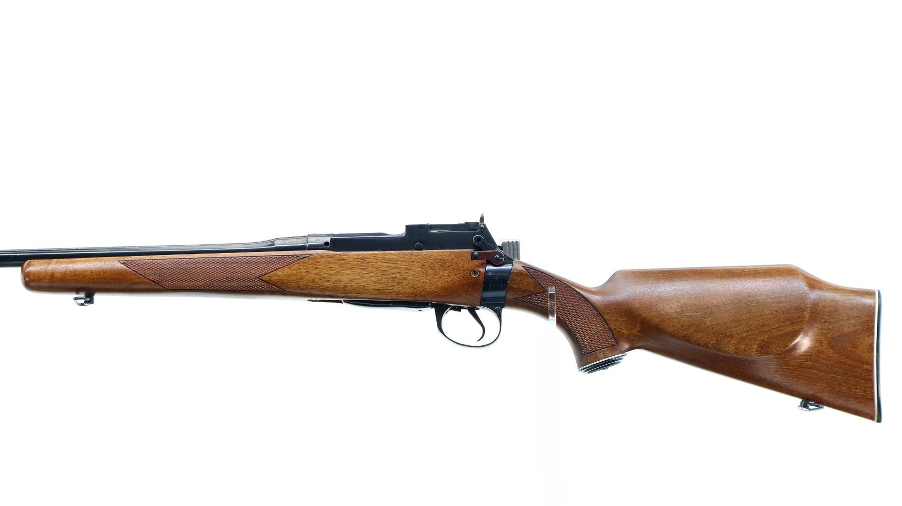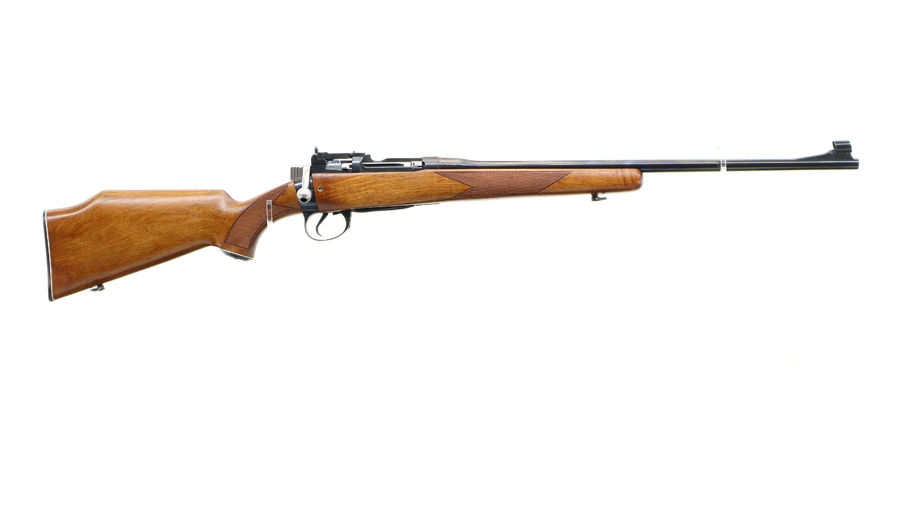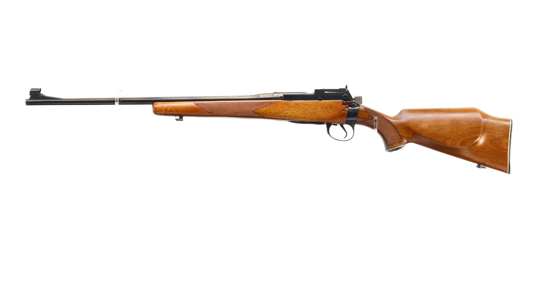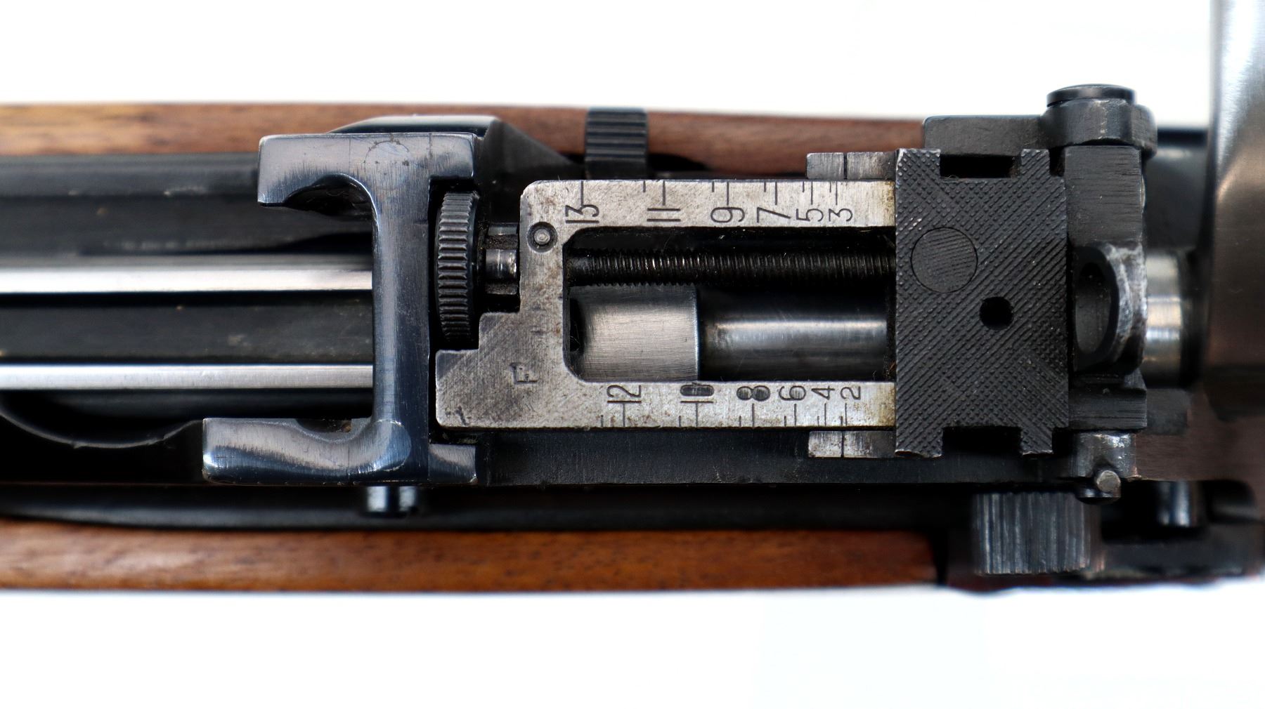 Main Description: Manufactured by M47C 1944, bolt unnumbered. Blade front sight with hood and ramp, adjustable milled rear peeps sight, metal has been polished and reblued, receiver ring drilled and tapped with plug screws installed. Two piece Monte Carlo wood stocks, checkered forearm, pistol grip, black polymer butt plate, cheek rest, grip cap, sling swivels.