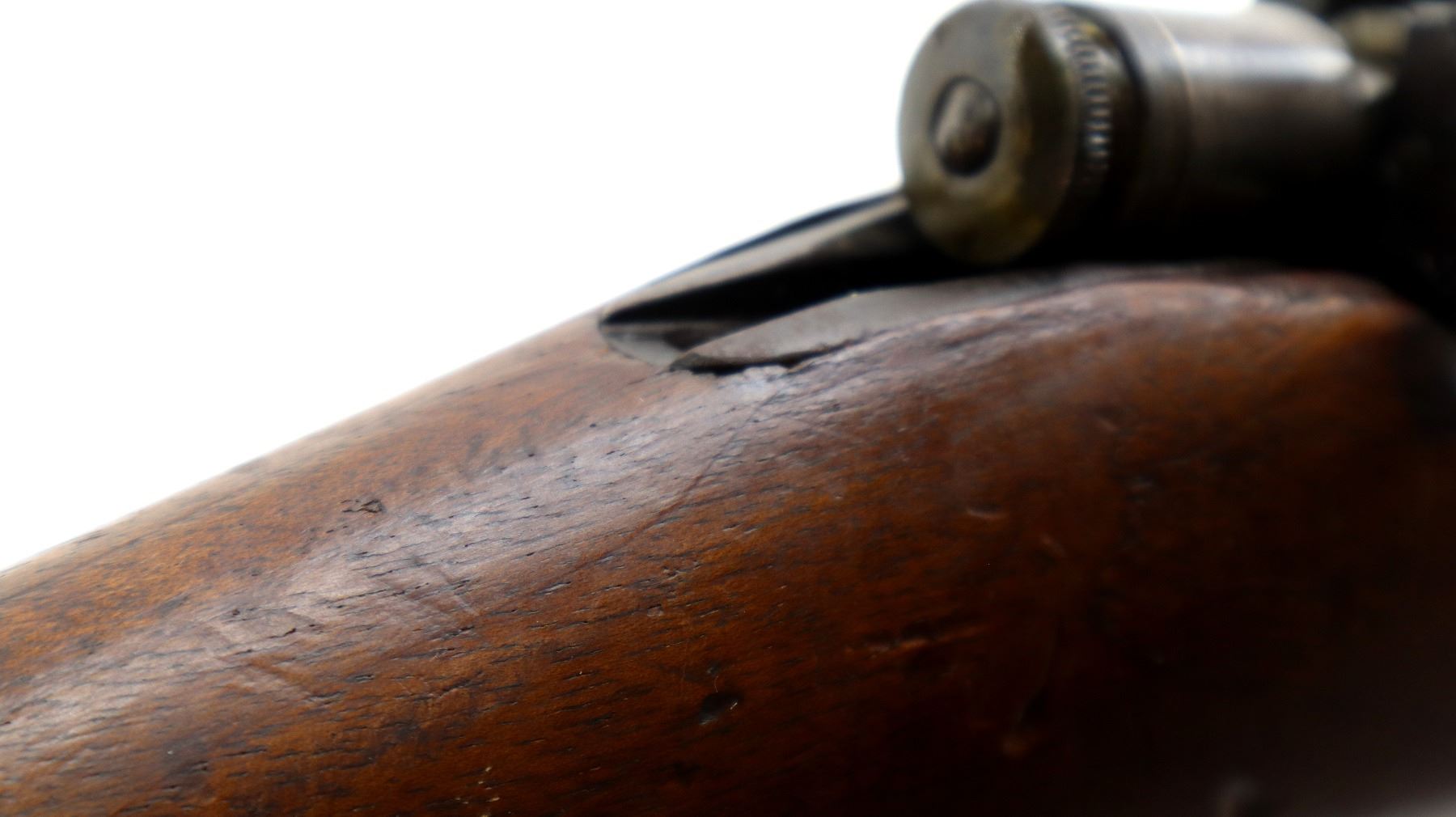 Wear: Metal finish shows some light rust speckles, scratches, handling marks and wear. Stocks show marks, scratches and wear.