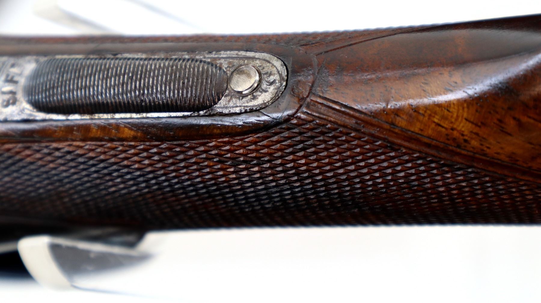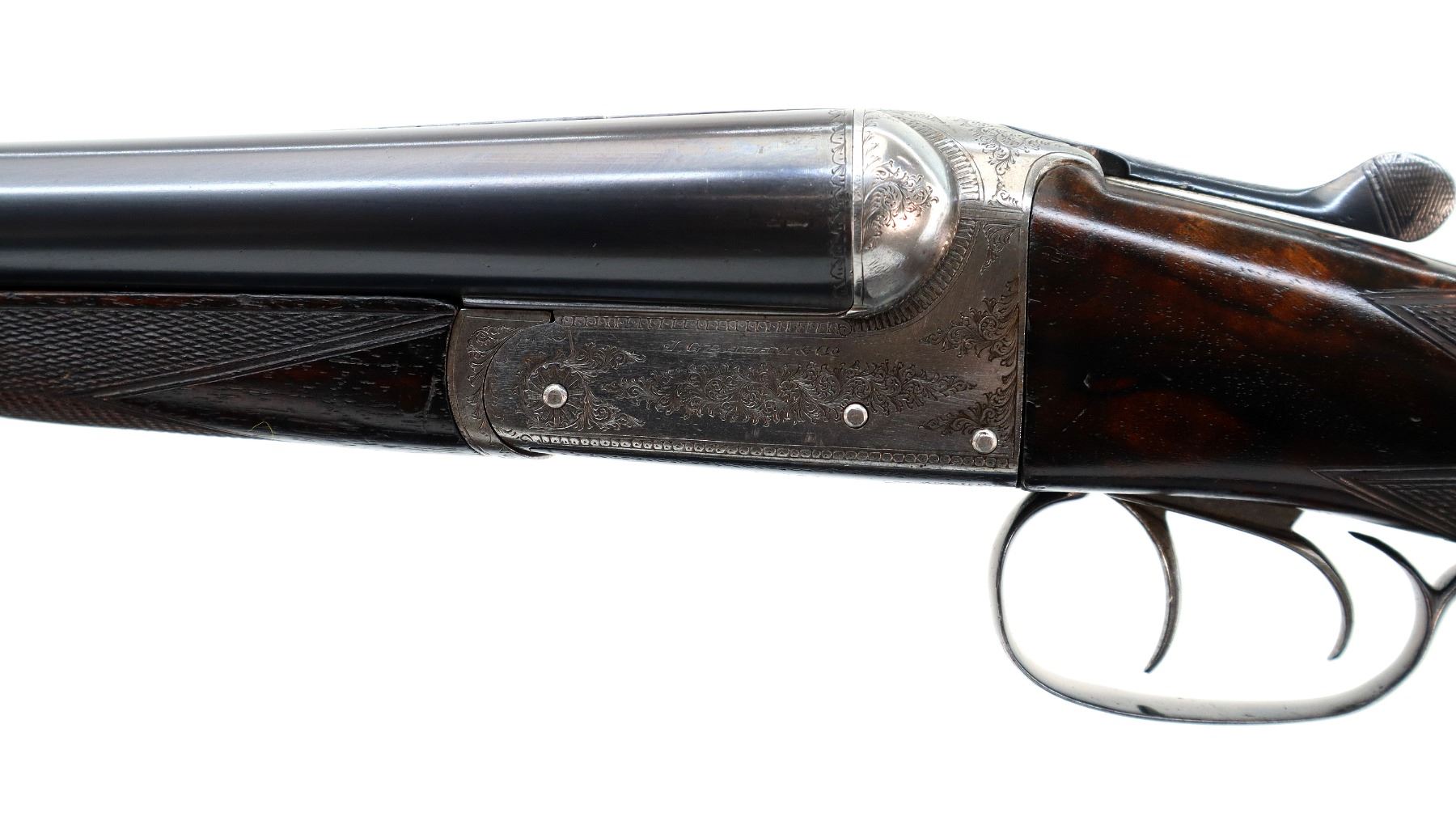 Main Description: Brass bead, polish blued barrels with smooth rib marked J. Graham & Co 27 Union Street Inverness, slightly loose on face. Engraved silver receiver, automatic safety, ejectors, double triggers. Two piece wood stocks, checkered forearm and straight grip, black rubber recoil pad, 15" LOP, vanity plate.