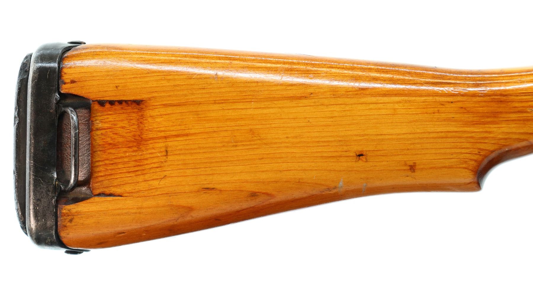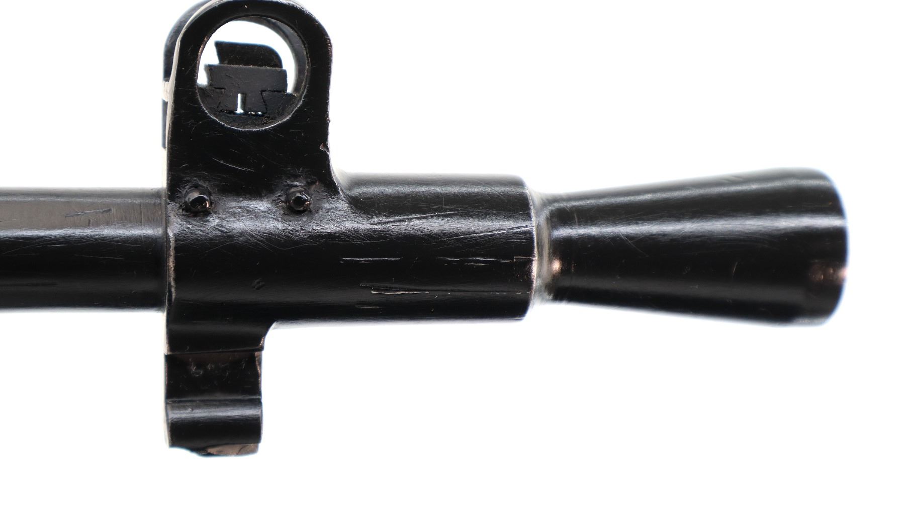 Main Description: Manufactured by Fazakerley 4/45, bolt unnumbered. Blade front sight with ears and ramp, adjustable stamped MK2 rear peep sight, black painted metal finish. Three piece full military wood stocks, pistol grip, black rubber recoil pad, sling swivels, flashider with integral bayonet lug.