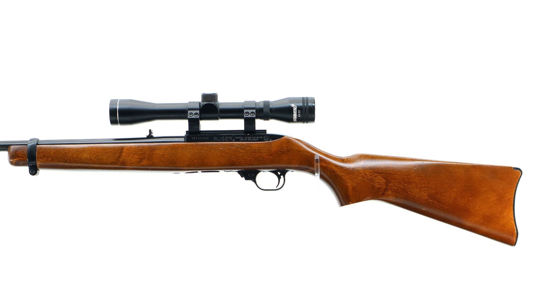 Main Description: Blade front sight with ramp, adjustable folding u notched rear sight, blued barrel, black alloy receiver drilled and tapped with Hamerli 4x32 scope installed, clear optics with duplex crosshair. One piece wood stock, pistol grip, smooth curved black polymer butt plate