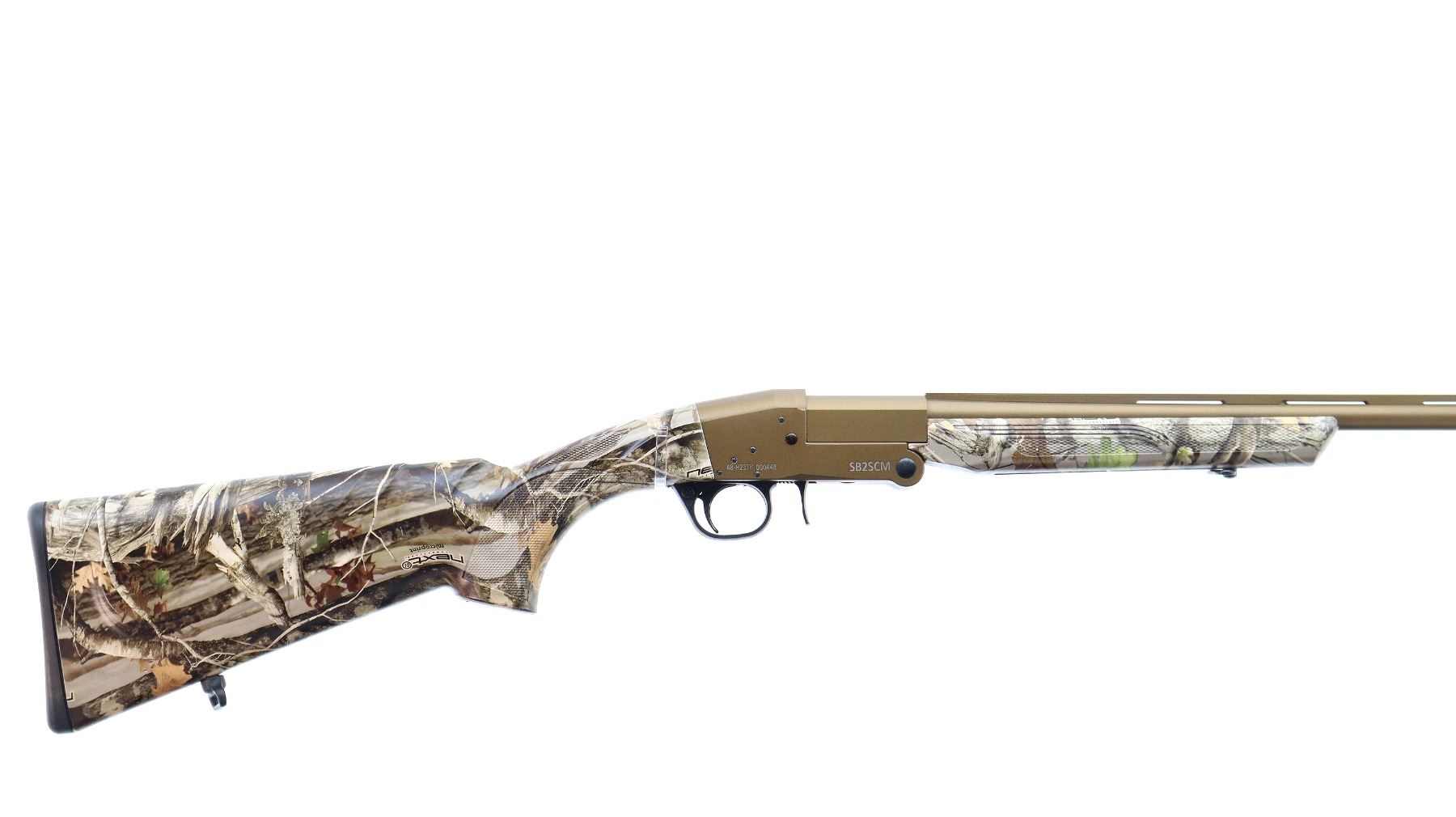 Main Description: Brass bead, Burnt bronze Cerakote finish, vent rib, missing extractor assembly requires repair, smooth opening lever in front of trigger guard. Two piece Next G1 Micro Print synthetic stocks, checkered forearm and pistol grip, ambi cheek rest, checkered black polymer butt plate, sling swivels