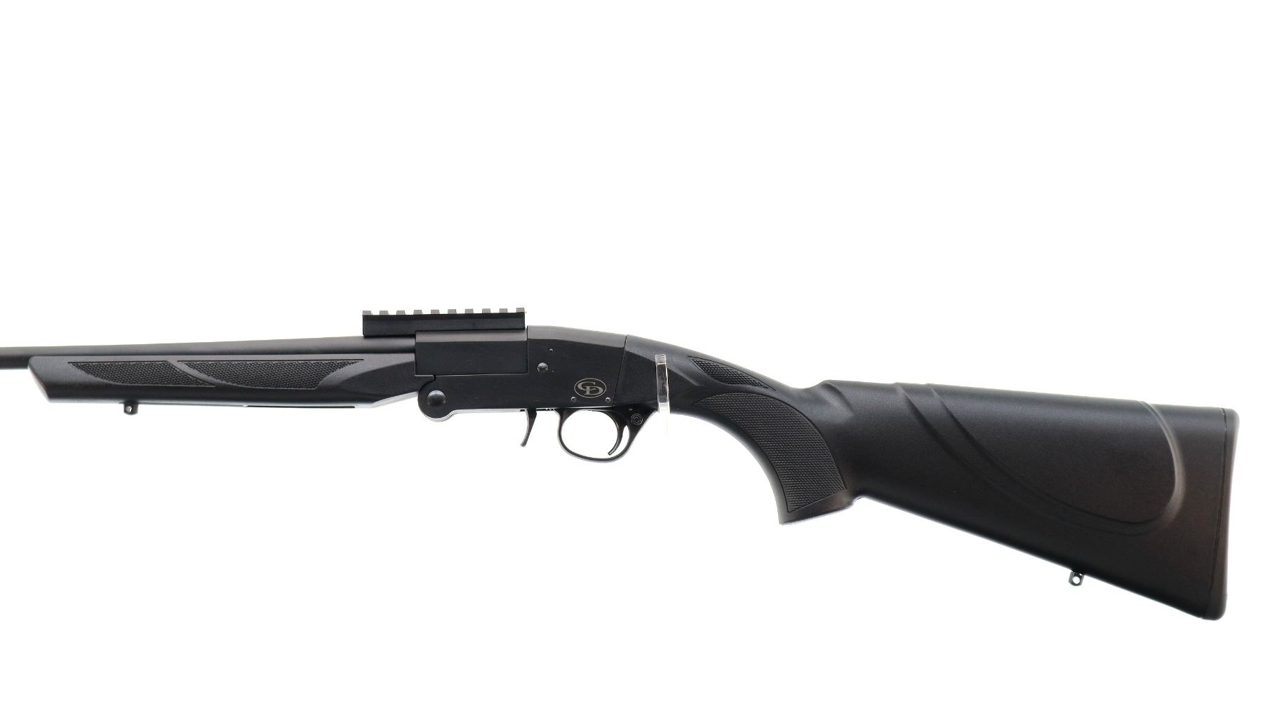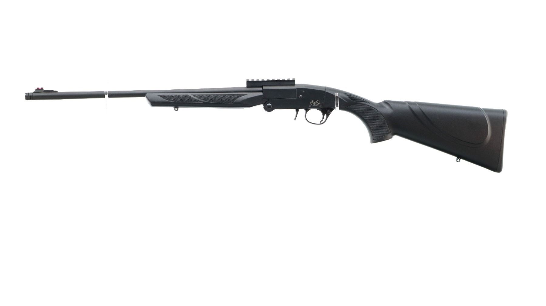 Main Description: Red fiber optic blade front sight with ramp, Parkerized metal finish, round barrel drilled and tapped with one piece scope rail installed, extractor, smooth opening lever in front of trigger guard. Two piece black synthetic stocks, checkered forearm, pistol grip and black polymer butt plate, ambi cheek rest, swivel studs.