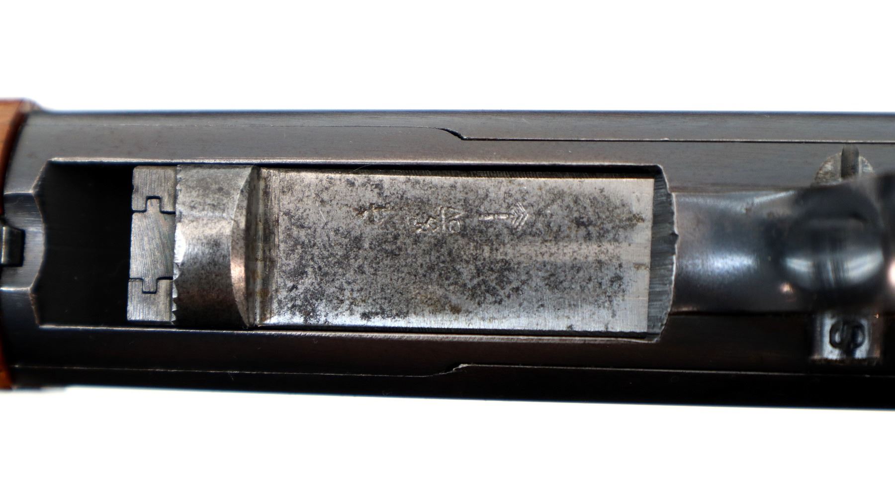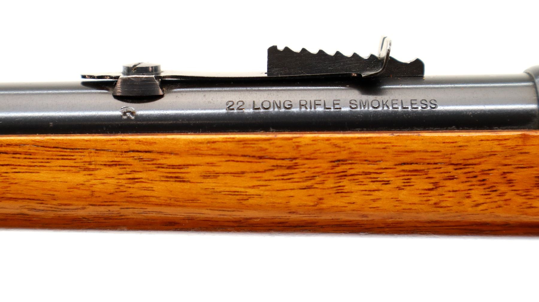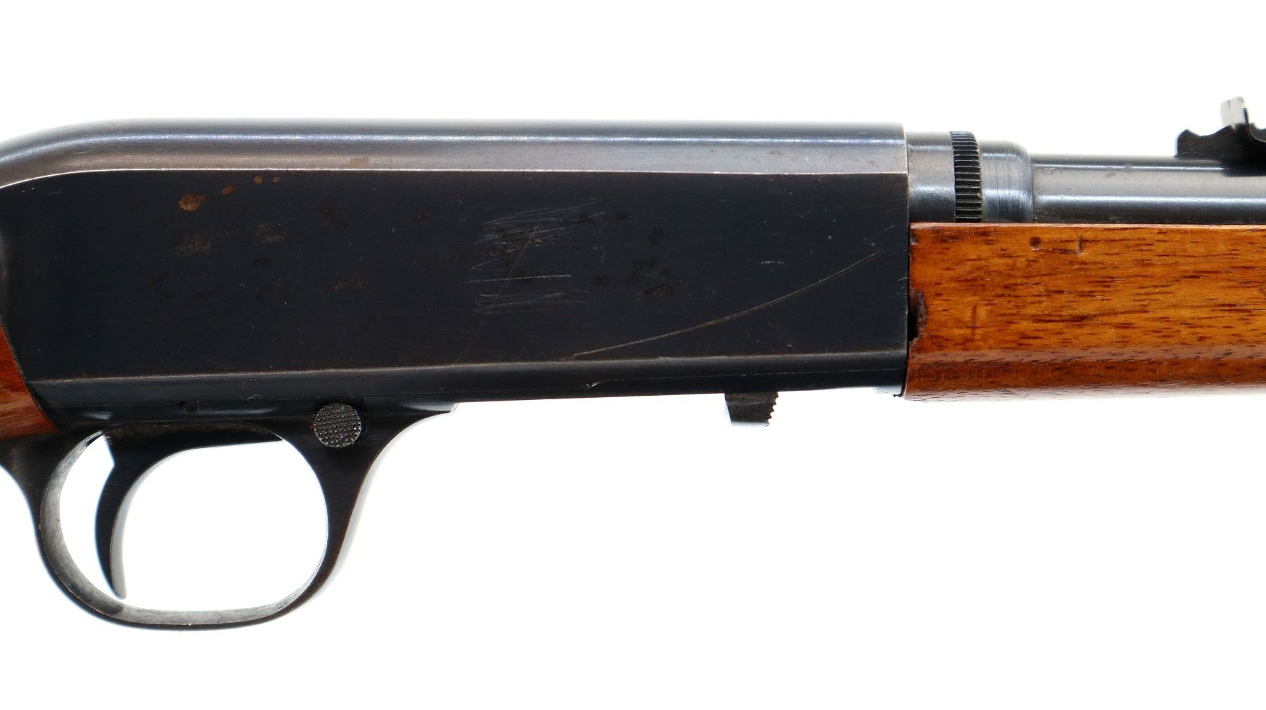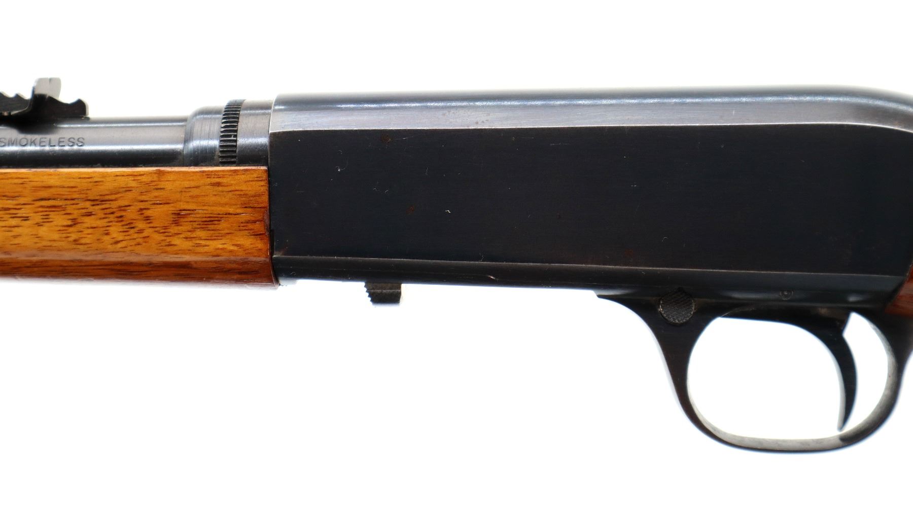 Main Description: Blade front sight, adjustable u notched rear sight, blued finish. Two piece wood stocks, pistol grip, chipped at loading port, smooth steel butt plate.