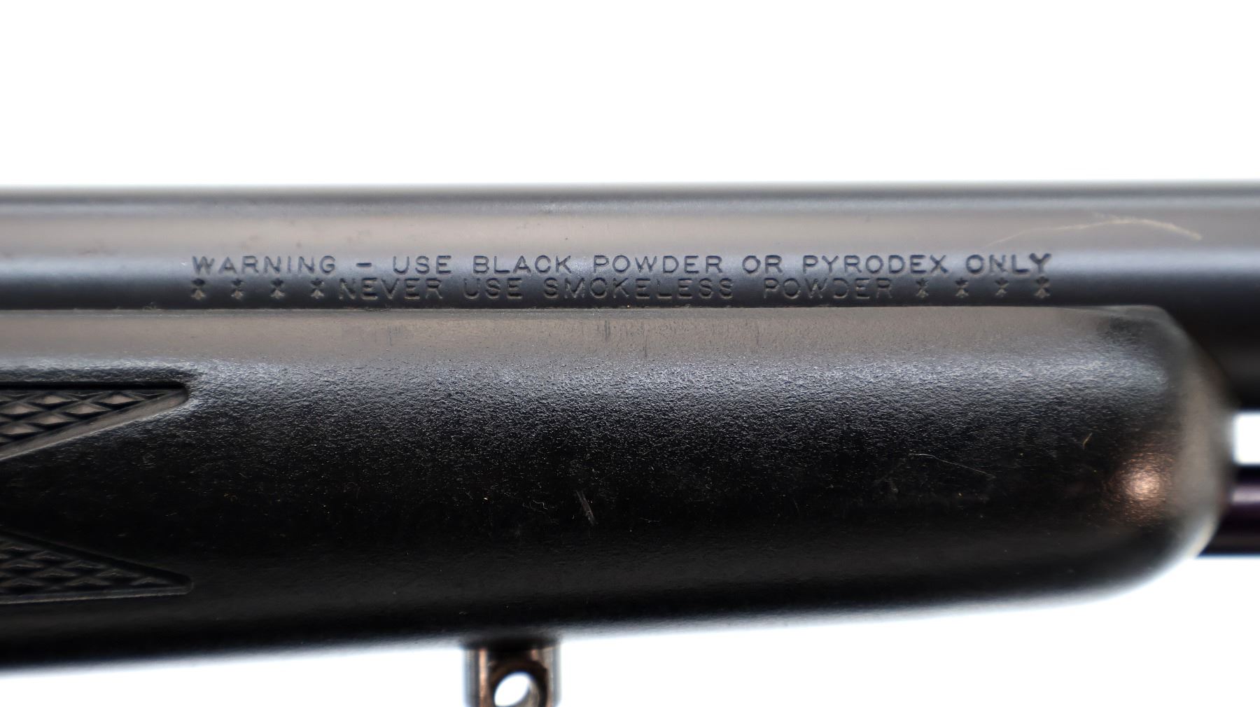 Main Description: Blade front sight with ramp, adjustable u notched rear sight, Satin blued finish, receiver drilled and tapped with Bushnell Sportview 3-9x40 scope installed, clear optics with duplex crosshair. Checkered bolt knob, uses percussion caps. One piece black synthetic stock, checkered forearm and pistol grip, cheek rest, black rubber recoil pad, grip cap, swivel studs, black alloy ramrod. Accessories include: Manual, Breech plug tool, cleaning guide, ramrod extensions, 2 cappers, spare breech plug, nipple, jags and allen keys with plastic case.