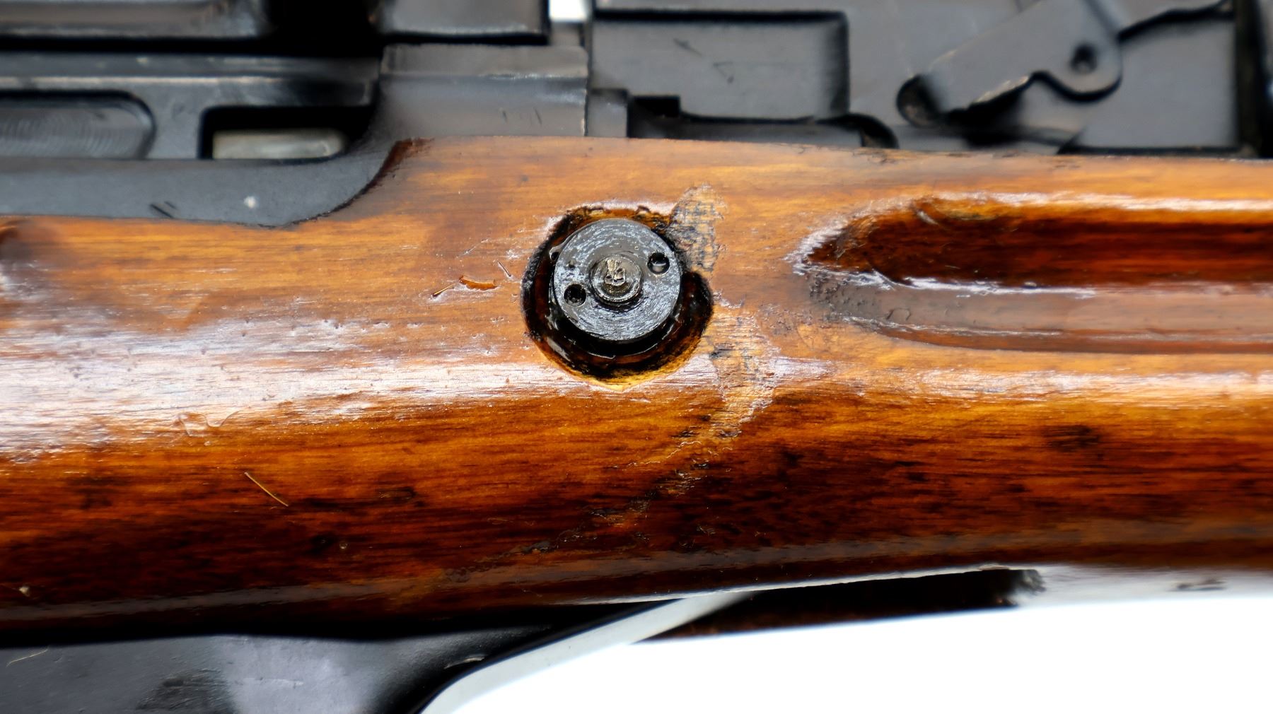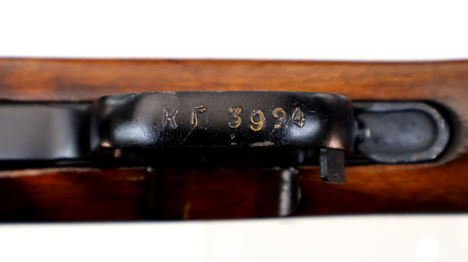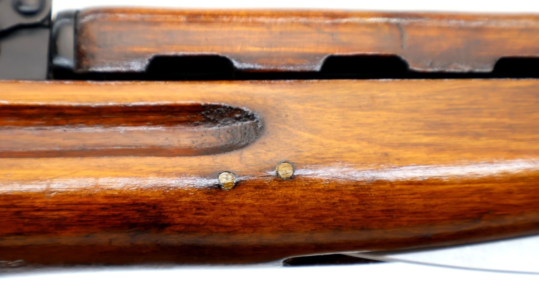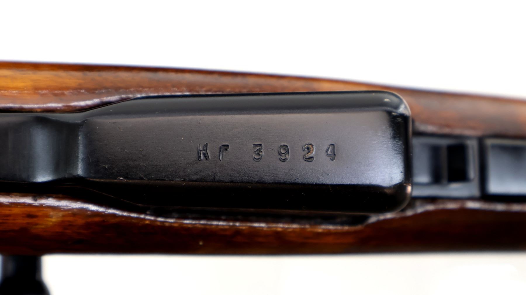 Main Description: manufactured by Tula 1951, Arsenal rebuilt numbered to match. Post front sight with hood and ramp, adjustable u notched rear sight, black painted metal finish. Two piece full military wood stocks, ventilated handguard, finger grooved forearm, pistol grip, arsenal repair on left side, smooth steel butt plate with trap and cleaning kit, sling swivels with canvas military sling, cleaning rod, attached folding blade bayonet.