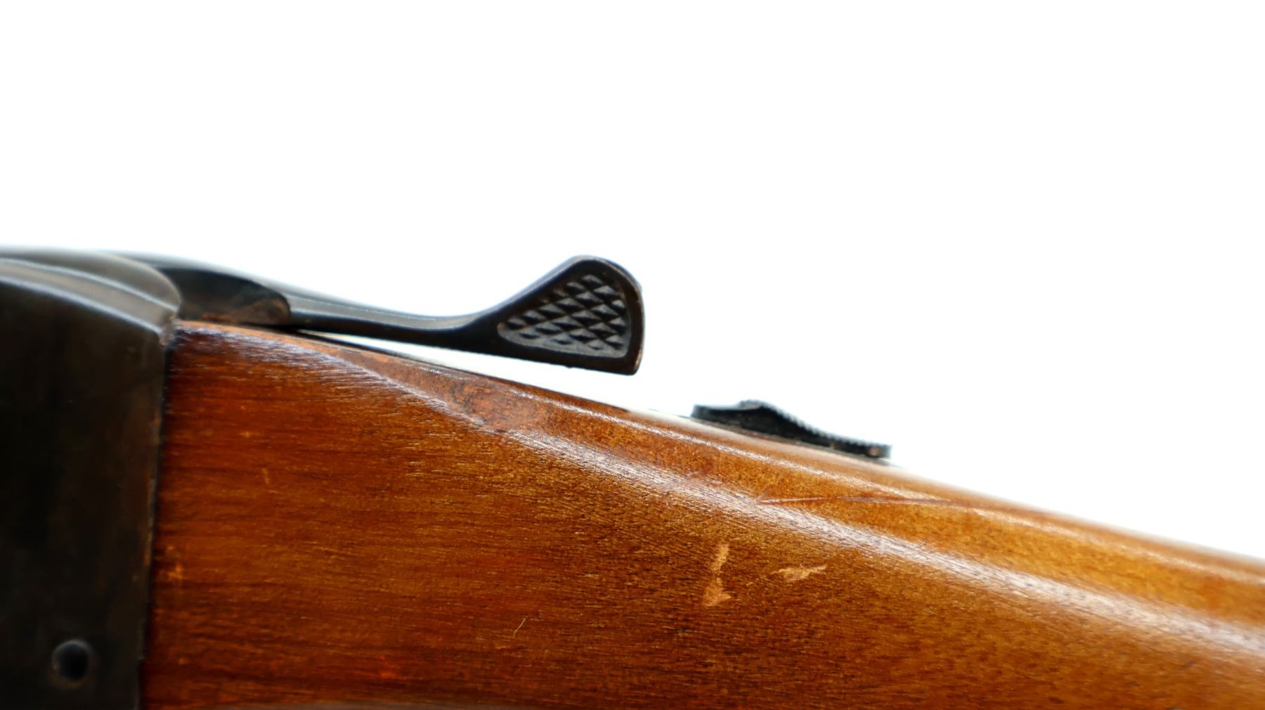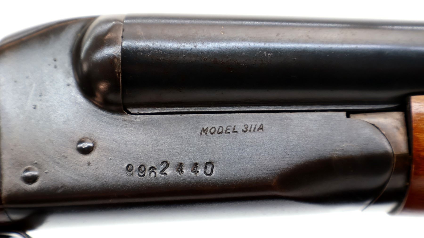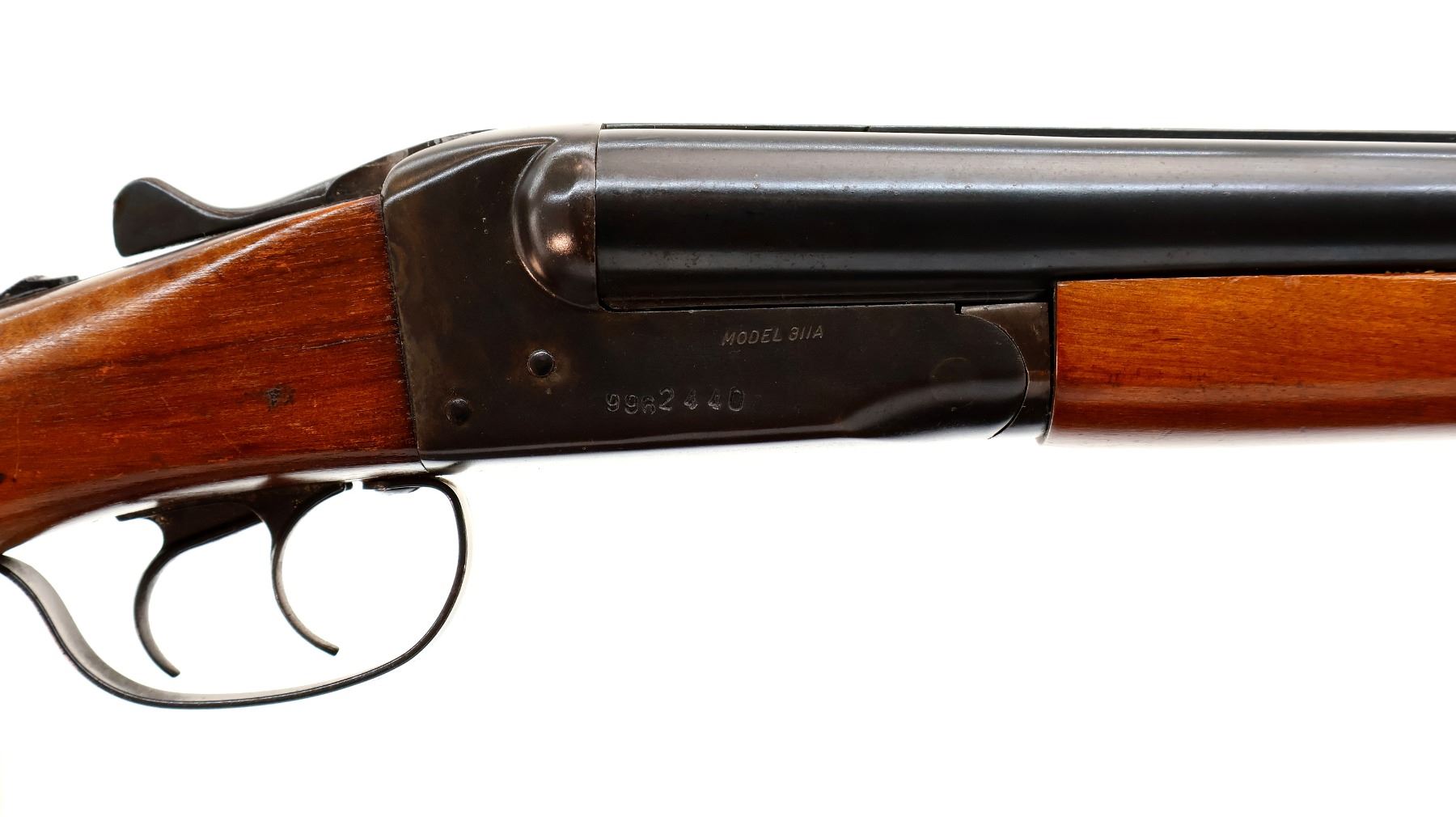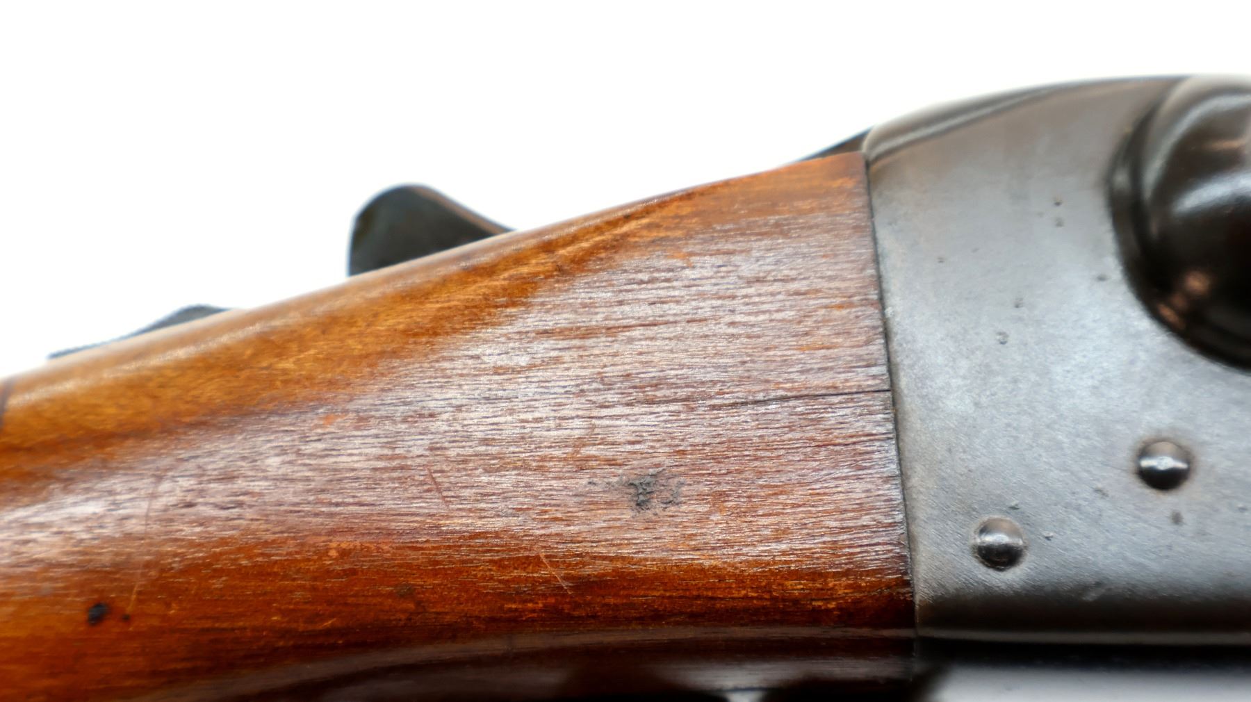 Wear: Metal finish shows some light rust speckles, scratches, handling marks and wear. Stocks show some marks, scratches and wear.