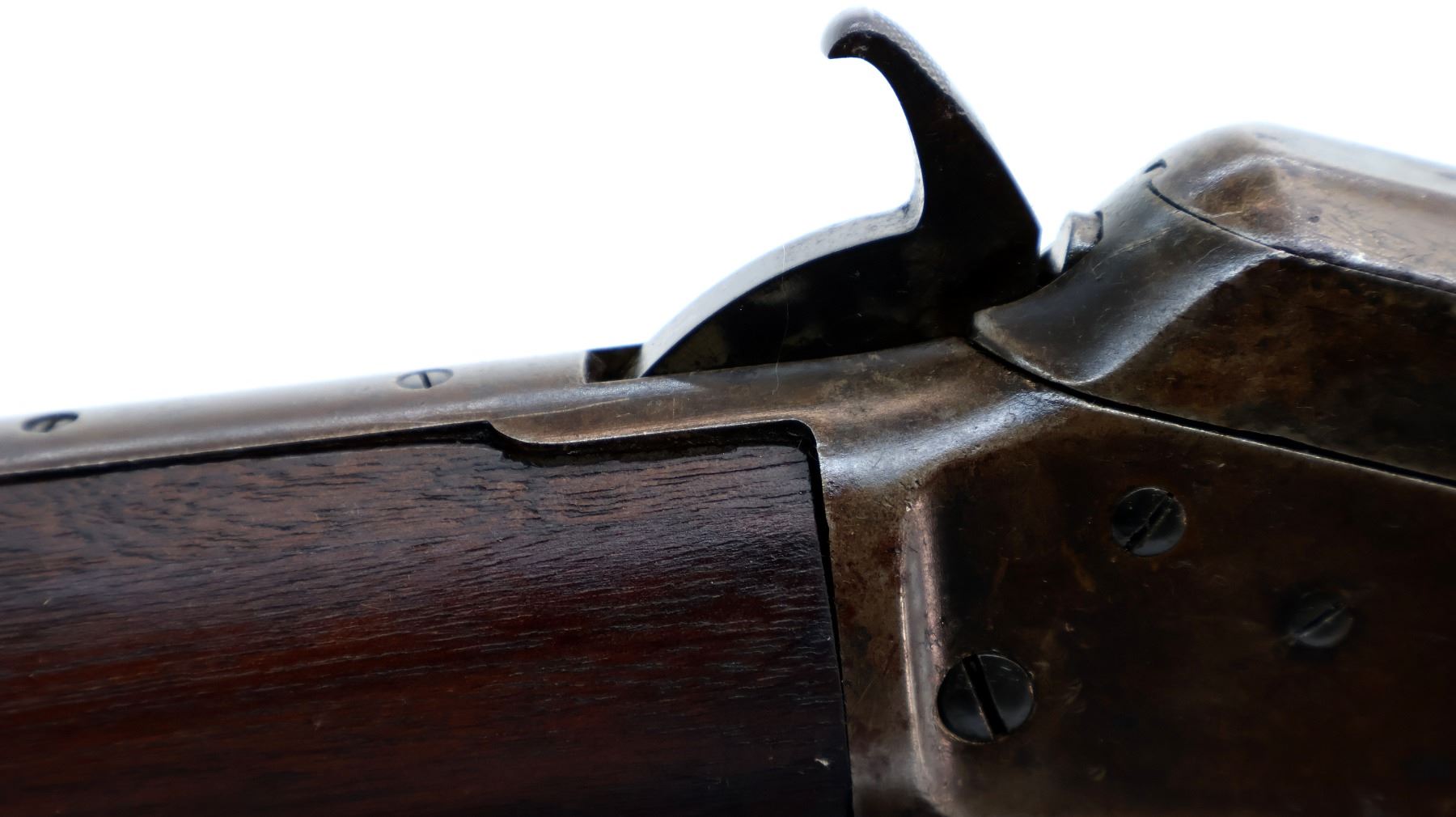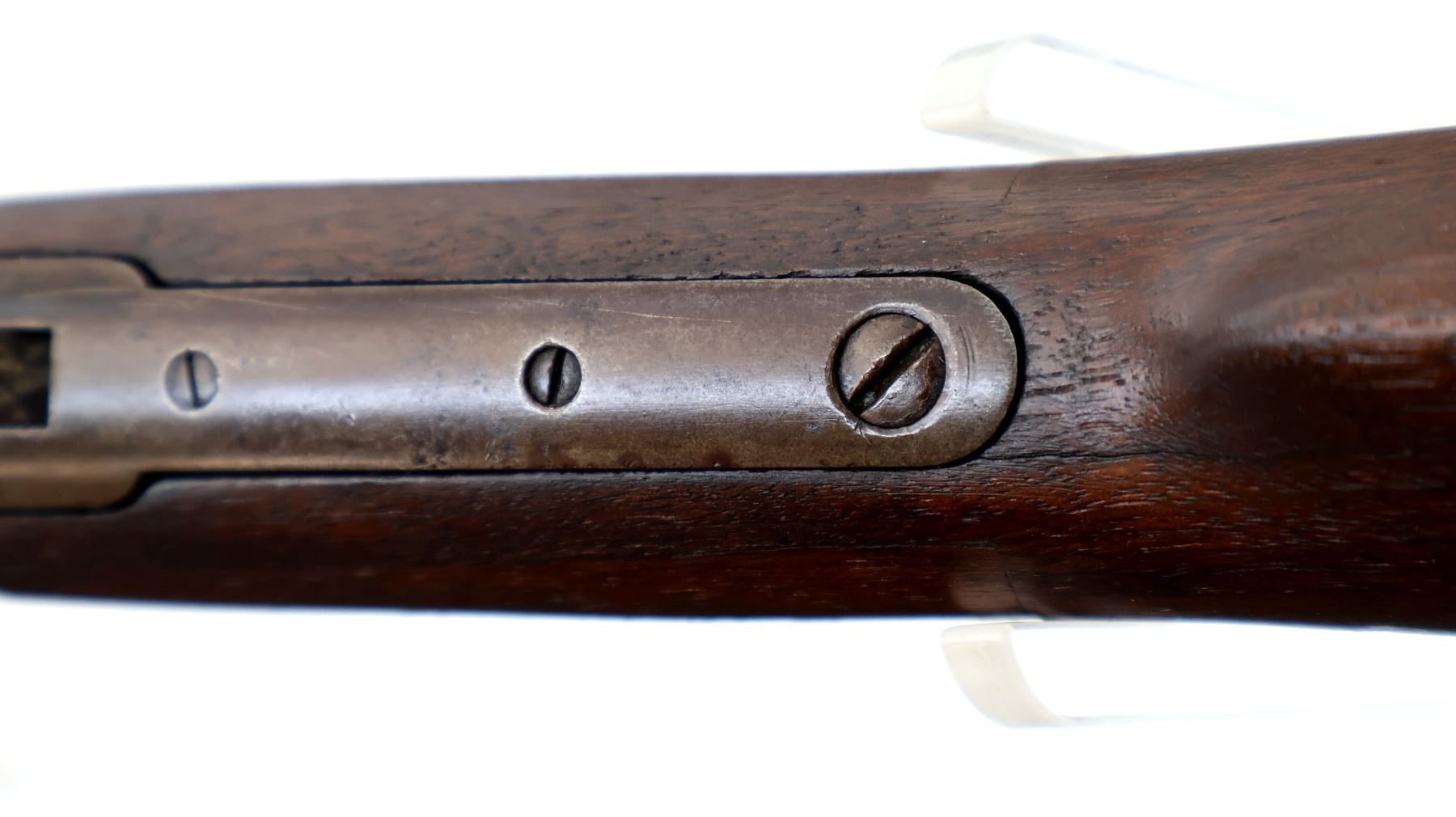 Wear: Metal finish turning brown with light pitting, rust speckles, scratches, handling marks and wear. Stocks show marks, scratches and wear.