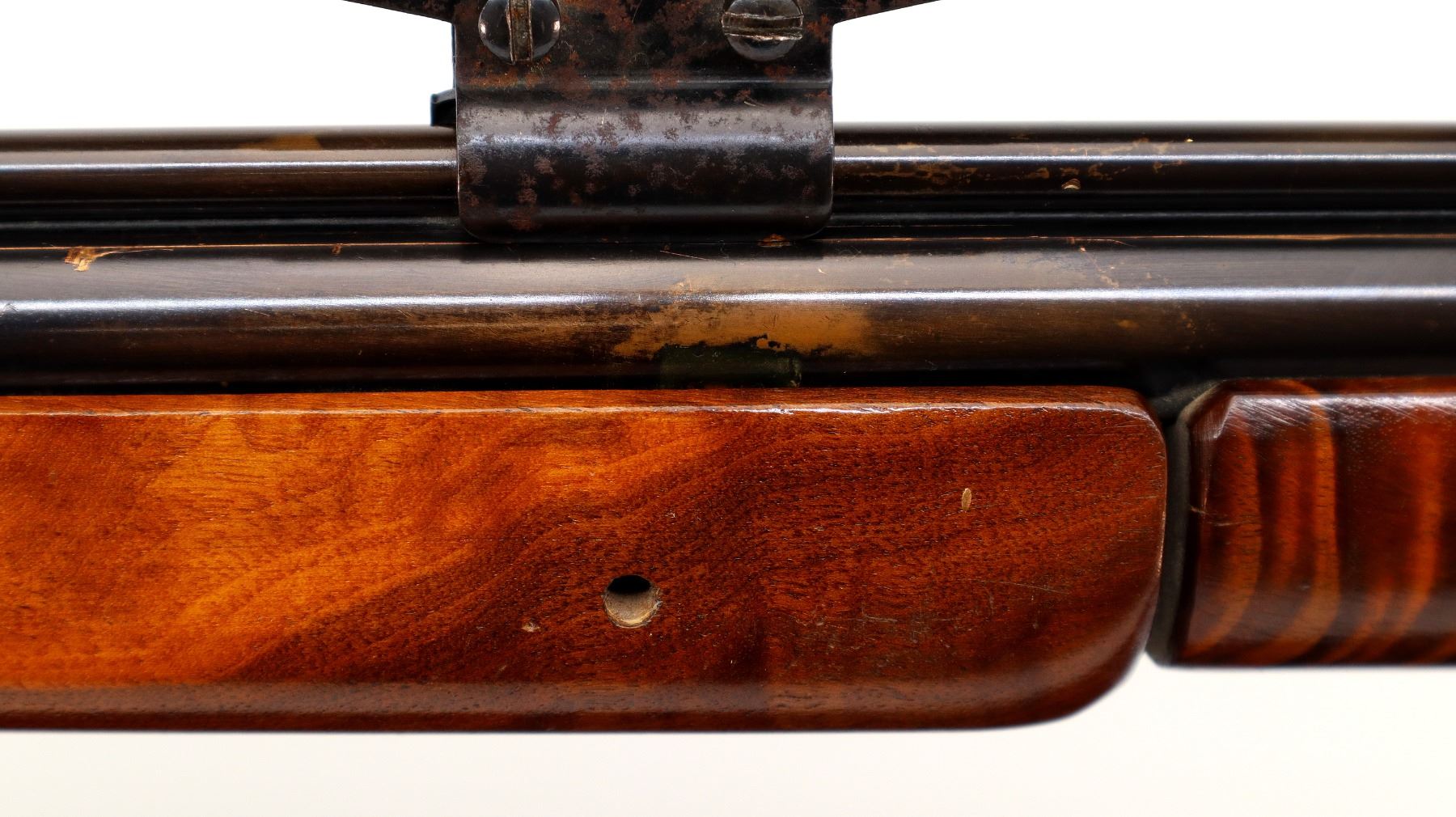 Wear: Metal finish shows a few light rust speckles, scratches, handling marks and wear. Stocks show some marks, scratches and wear.