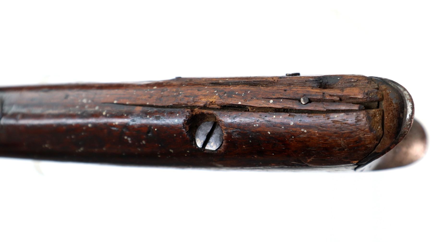 Wear: Metal finish turning brown with pitting, rust, scratches, handling marks and wear. Stocks show marks, scratches and wear.